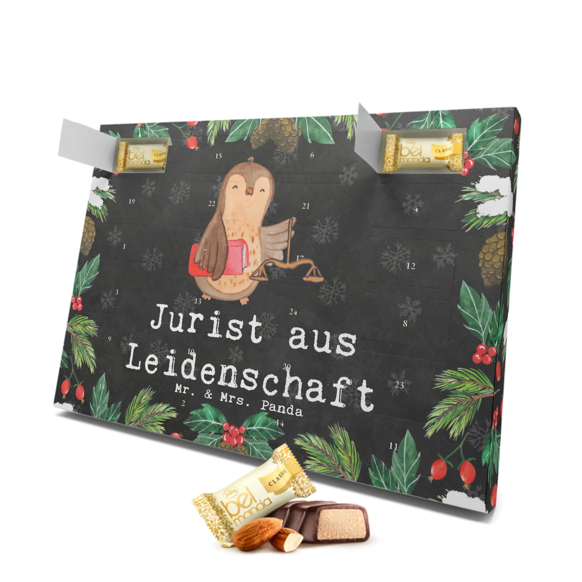 Der wunderschöne Marzipan Adventskalender "Jurist aus Leidenschaft" von Mr. & Mrs. Panda ist das perfekte Geschenk für alle Juristen und Jura Studenten. Mit seiner süßen Eule, die ein Gesetzbuch in der Hand hält, bringt dieser Adventskalender nicht nur Weihnachtsstimmung, sondern auch ein Lächeln auf die Gesichter deiner Kollegen und Freunde.