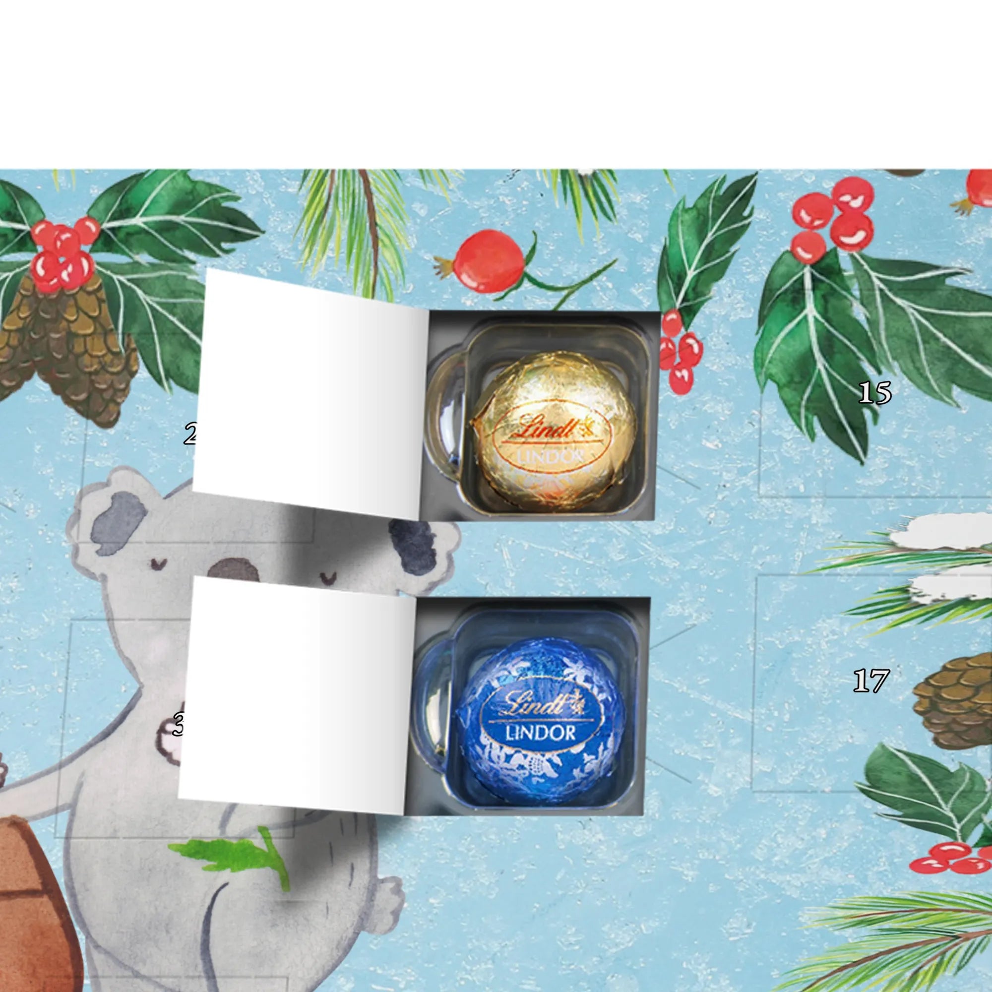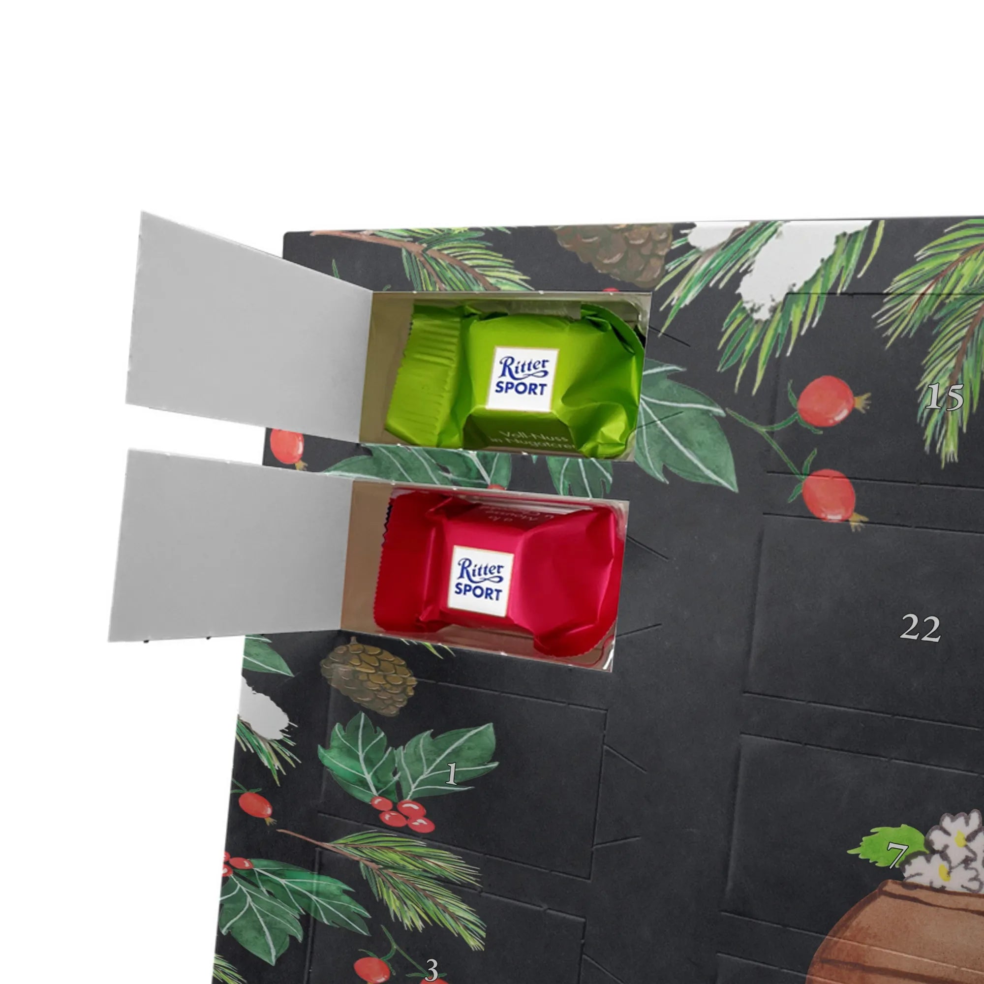 Make the Advent season even more special with the personalized chocolate Advent calendar from Mr. & Mrs. Panda. This unique Advent calendar is printed with your desired name or a custom text and features exclusive designs and sayings from the renowned designer duo. It's not only a visual highlight but also delights taste buds with 24 high-quality chocolate balls in various colors. The brilliant print quality and the silk-matte finish make this calendar a true eye-catcher during the Christmas season.