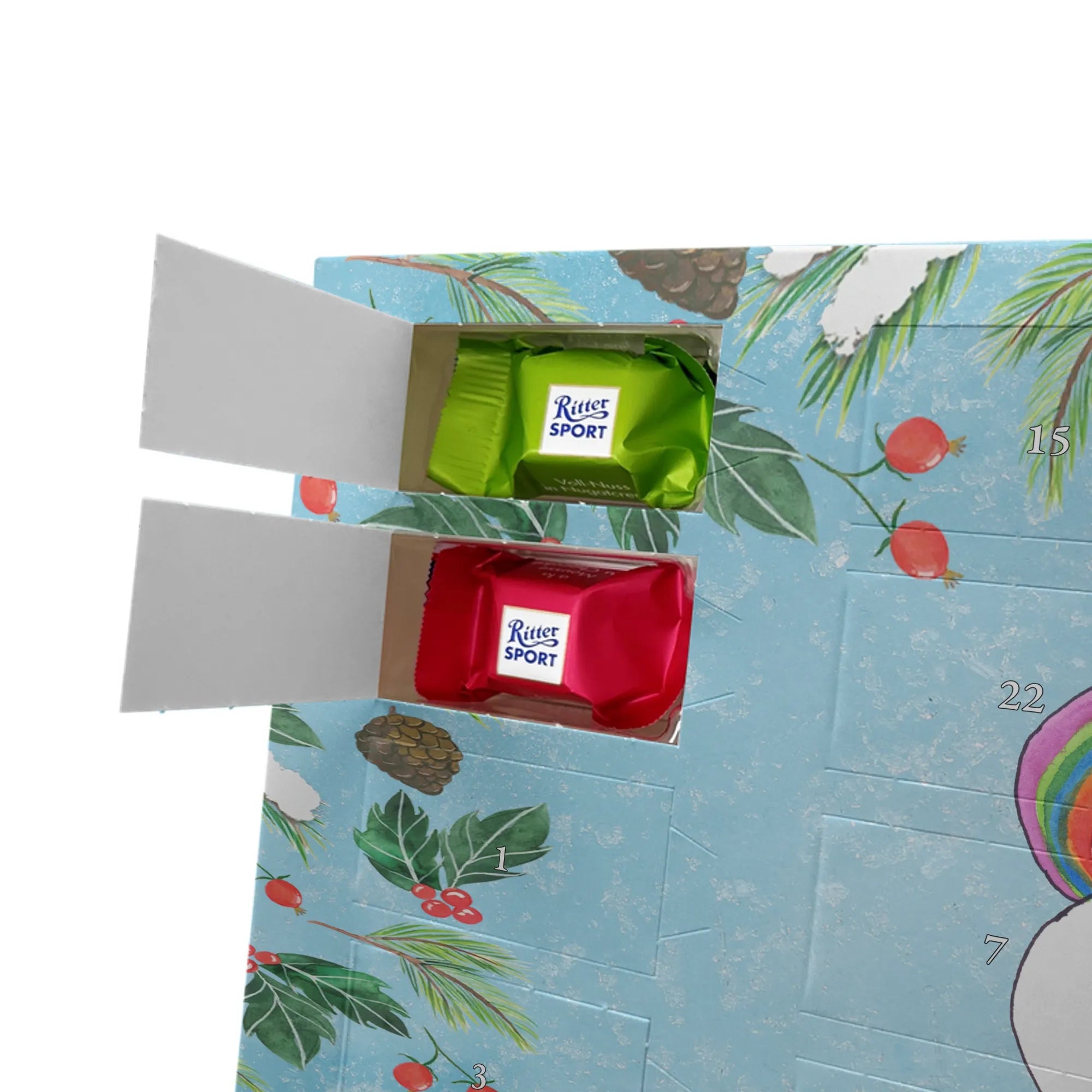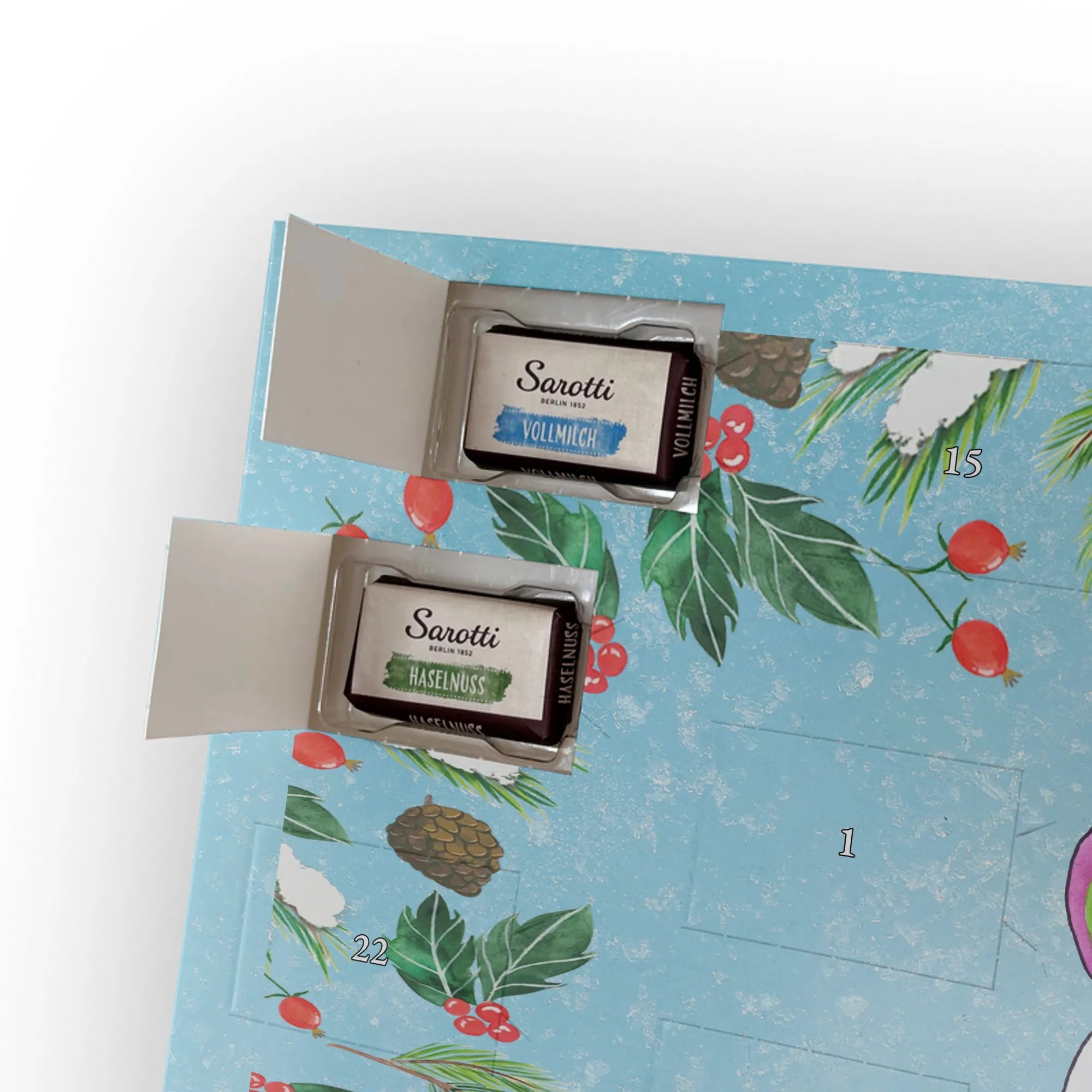 Make the Advent season even more special with the personalized chocolate Advent calendar from Mr. & Mrs. Panda. This unique Advent calendar is printed with your desired name or a custom text and features exclusive designs and sayings from the renowned designer duo. It's not only a visual highlight but also delights taste buds with 24 high-quality chocolate balls in various colors. The brilliant print quality and the silk-matte finish make this calendar a true eye-catcher during the Christmas season.