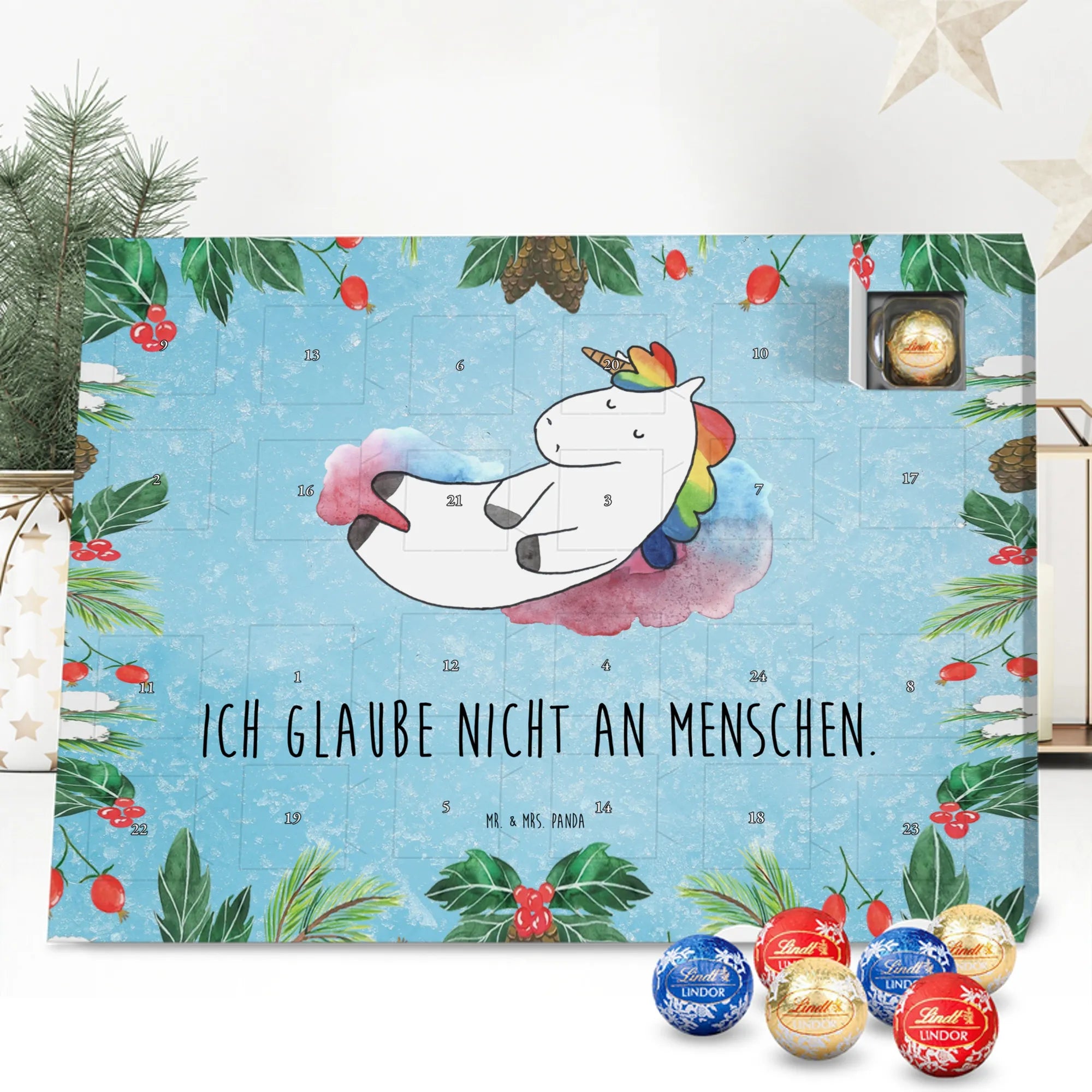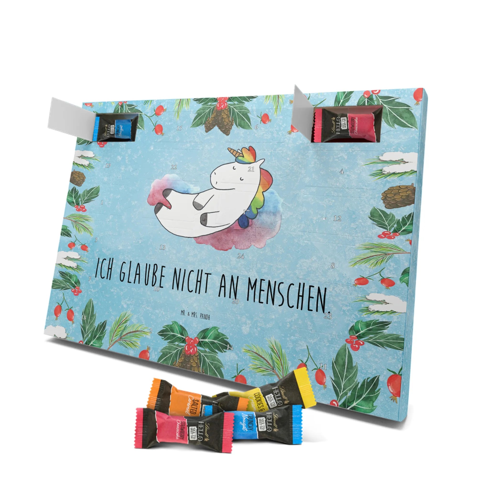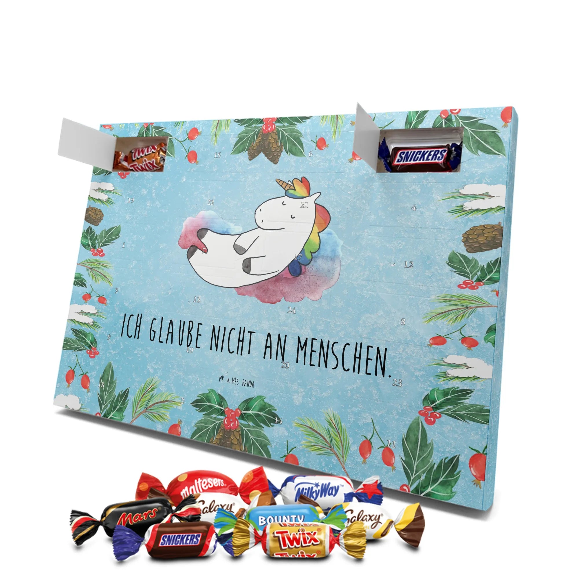 Chocolate advent calendar unicorn cloud 7 - Classic - with saying - Ice Blue