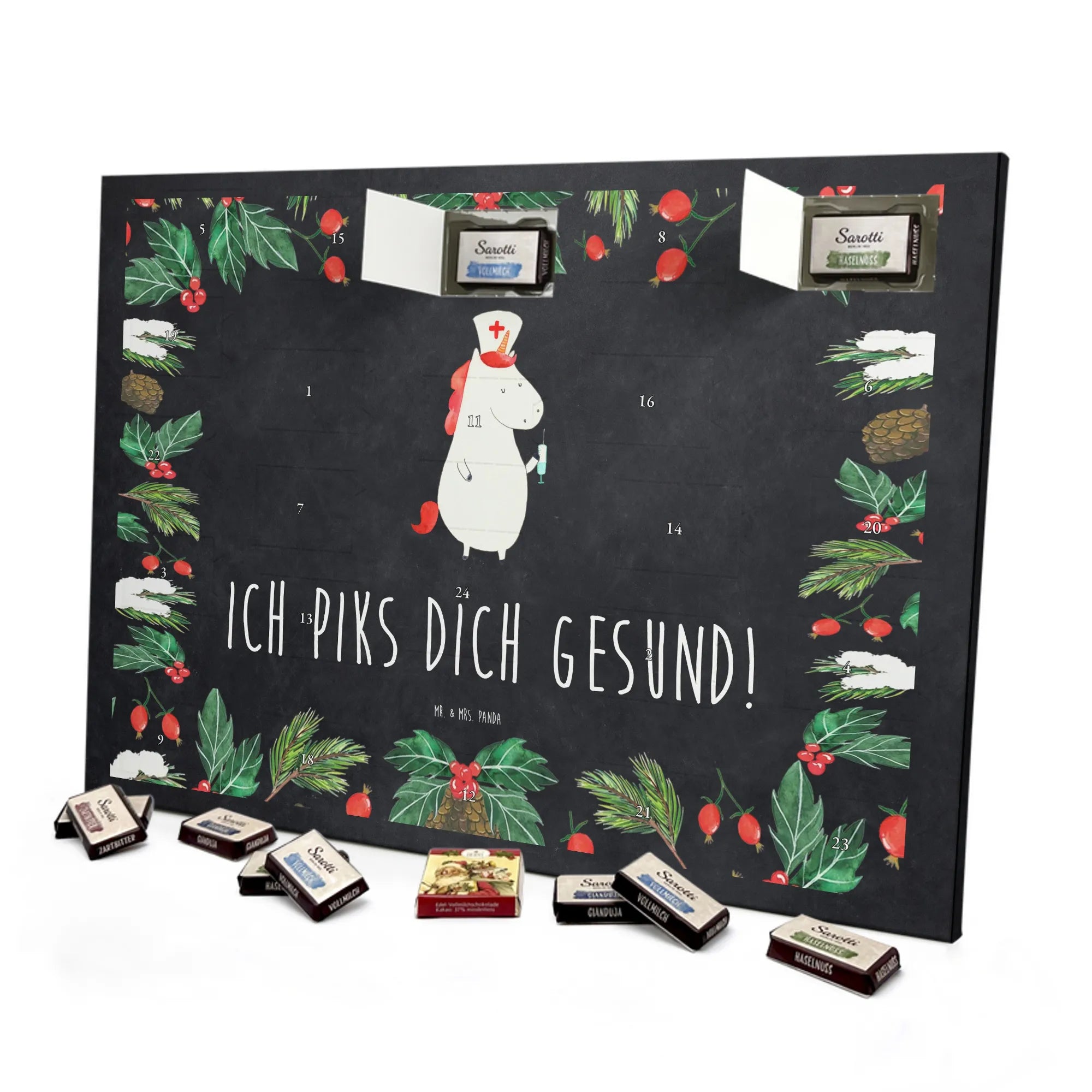 Chocolate advent calendar unicorn Nurse - Classic - with saying - Ice Blue