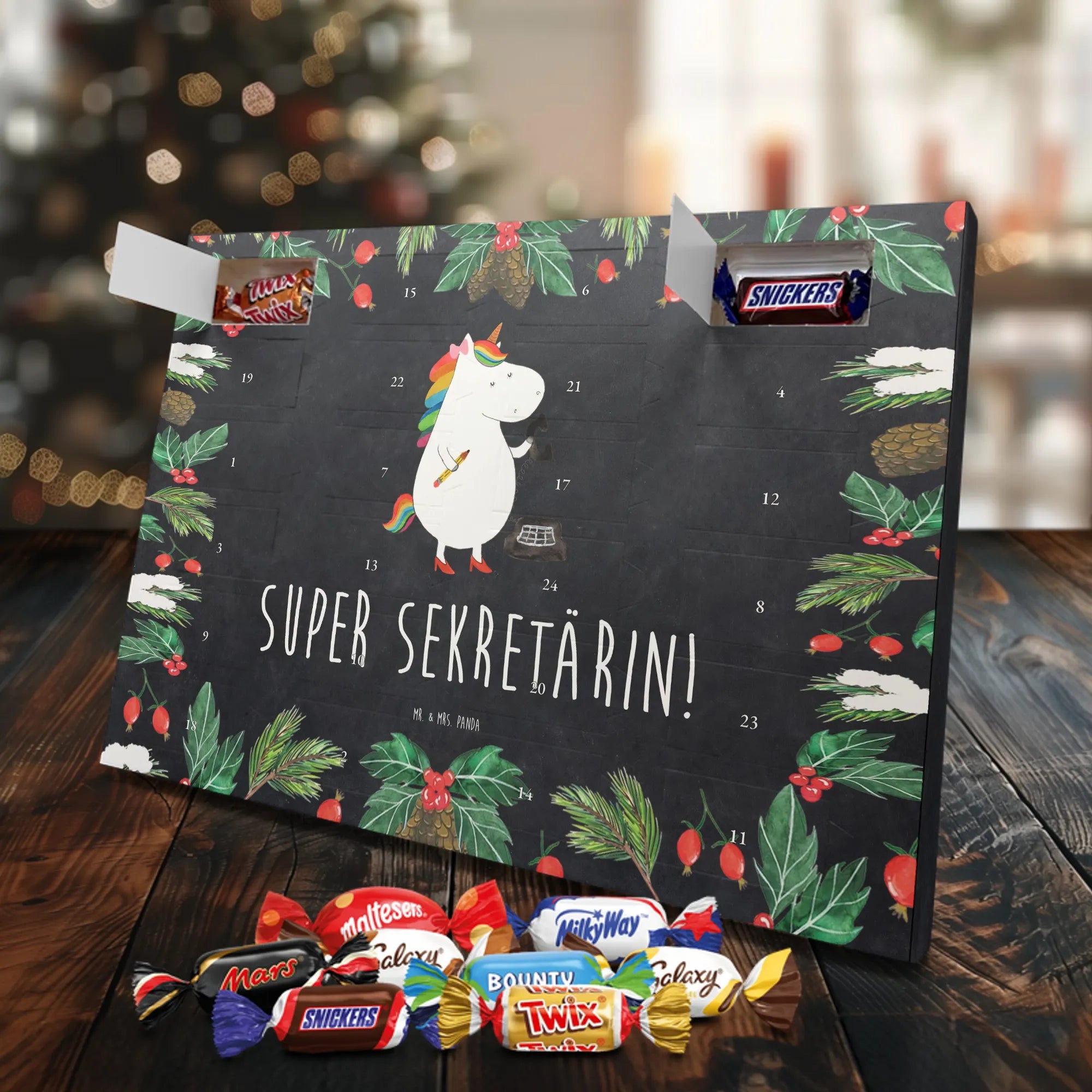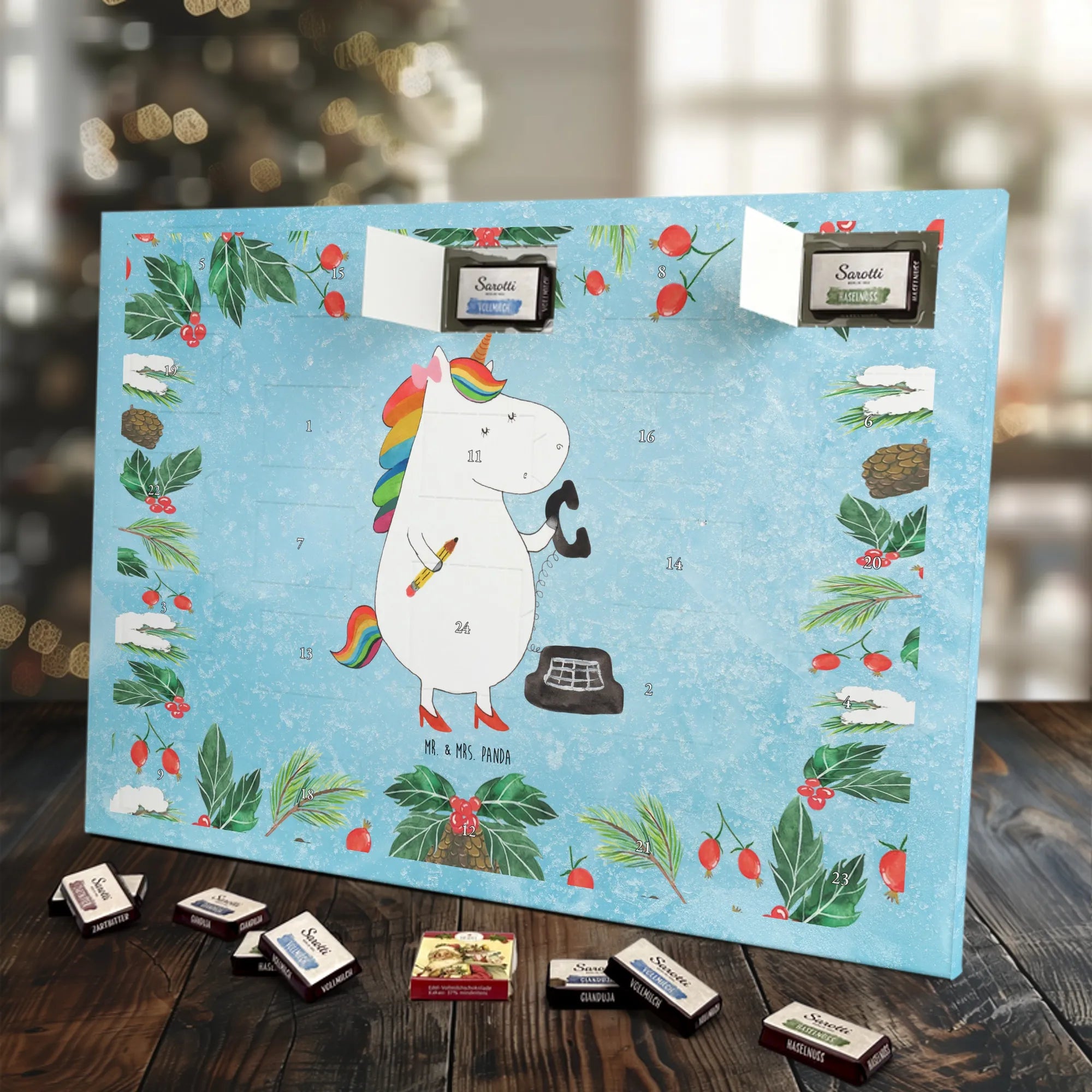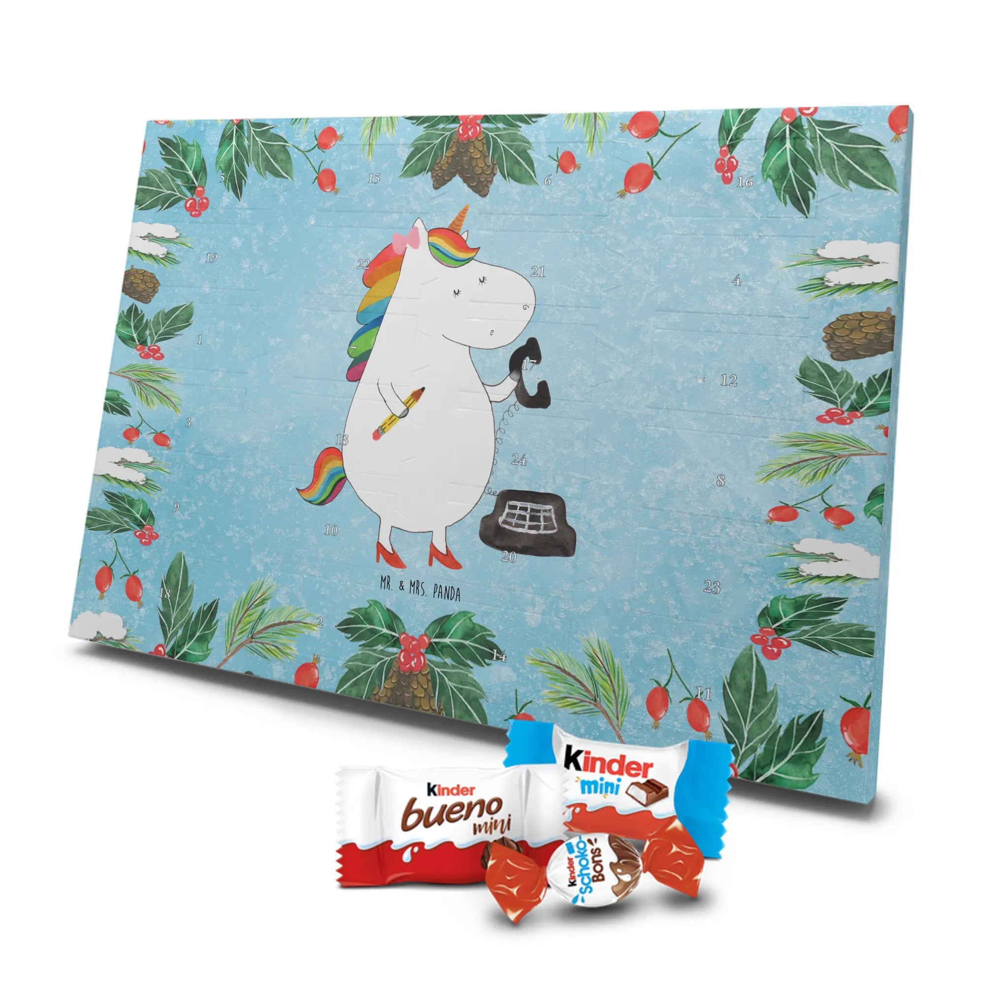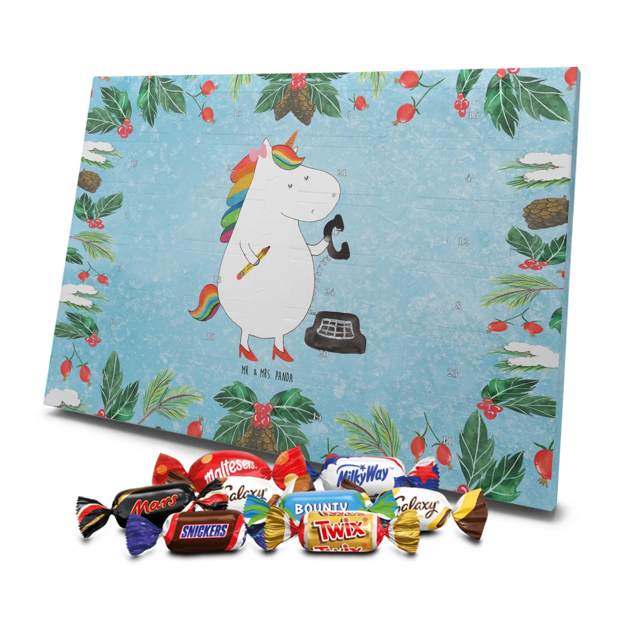 Chocolate advent calendar unicorn secretary - Classic - with saying - Ice Blue