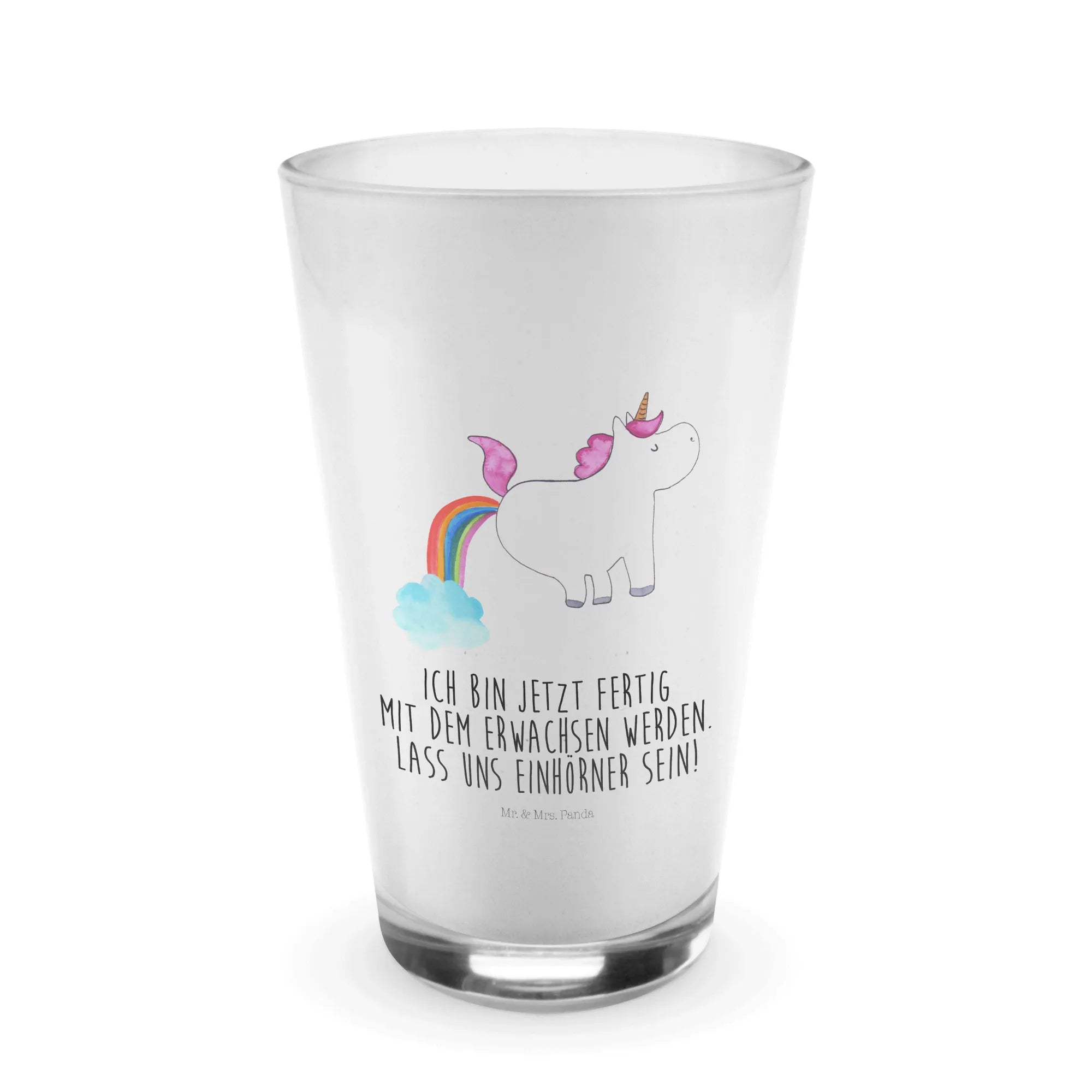 Measuring 150 mm in height and boasting a stunning diameter of 88 mm, this premium glass is designed to be the ultimate companion for your favorite beverages – be it a frothy cappuccino, a creamy latte macchiato, or even a refreshing cocktail on a sunny day. The elegant, matte finish of the glass is complemented by a playful unicorn motif that features our beloved farting unicorn merrily frolicking over a rainbow.