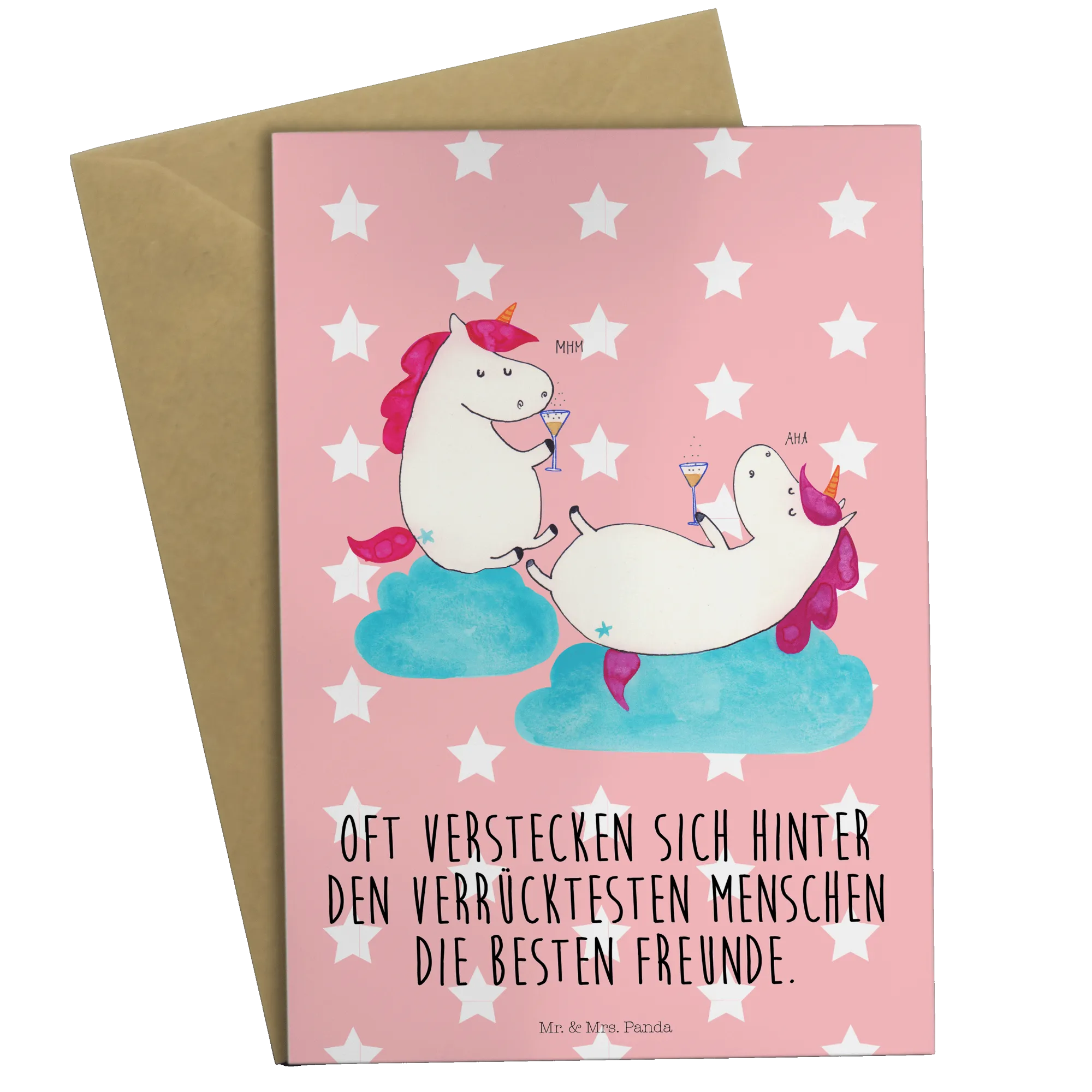 Greetings card unicorn sparkling wine - with saying - Pastel Red