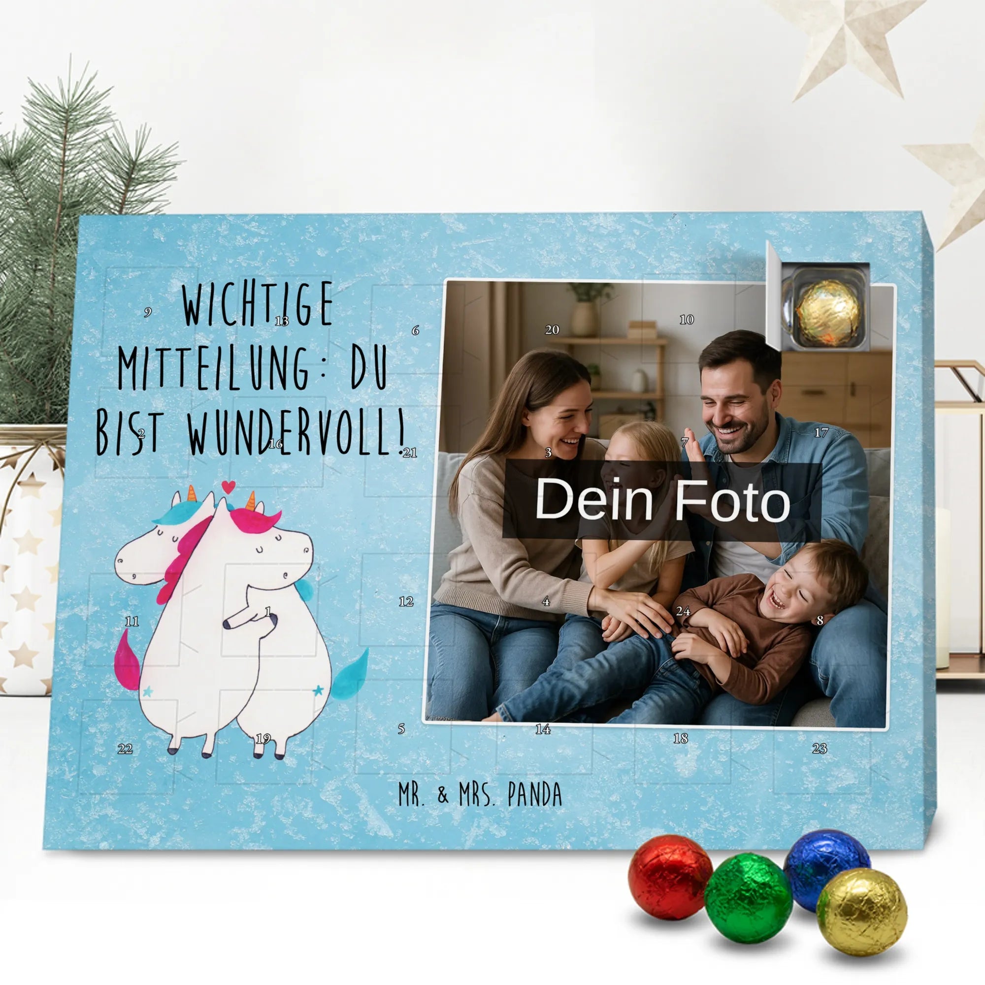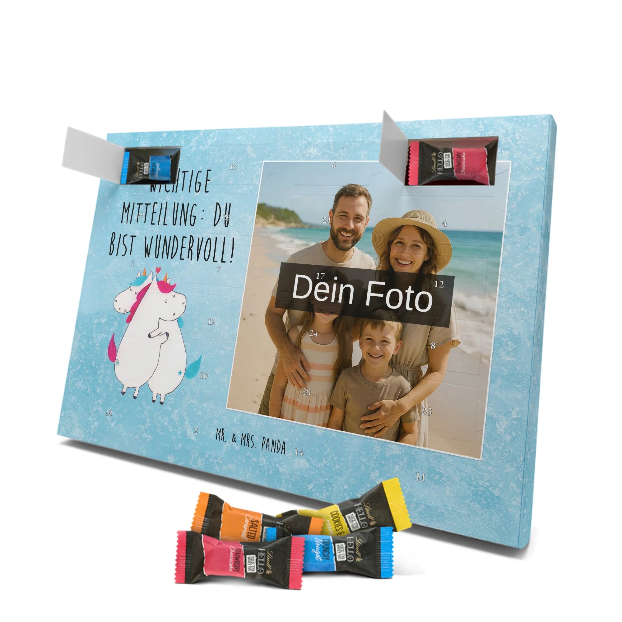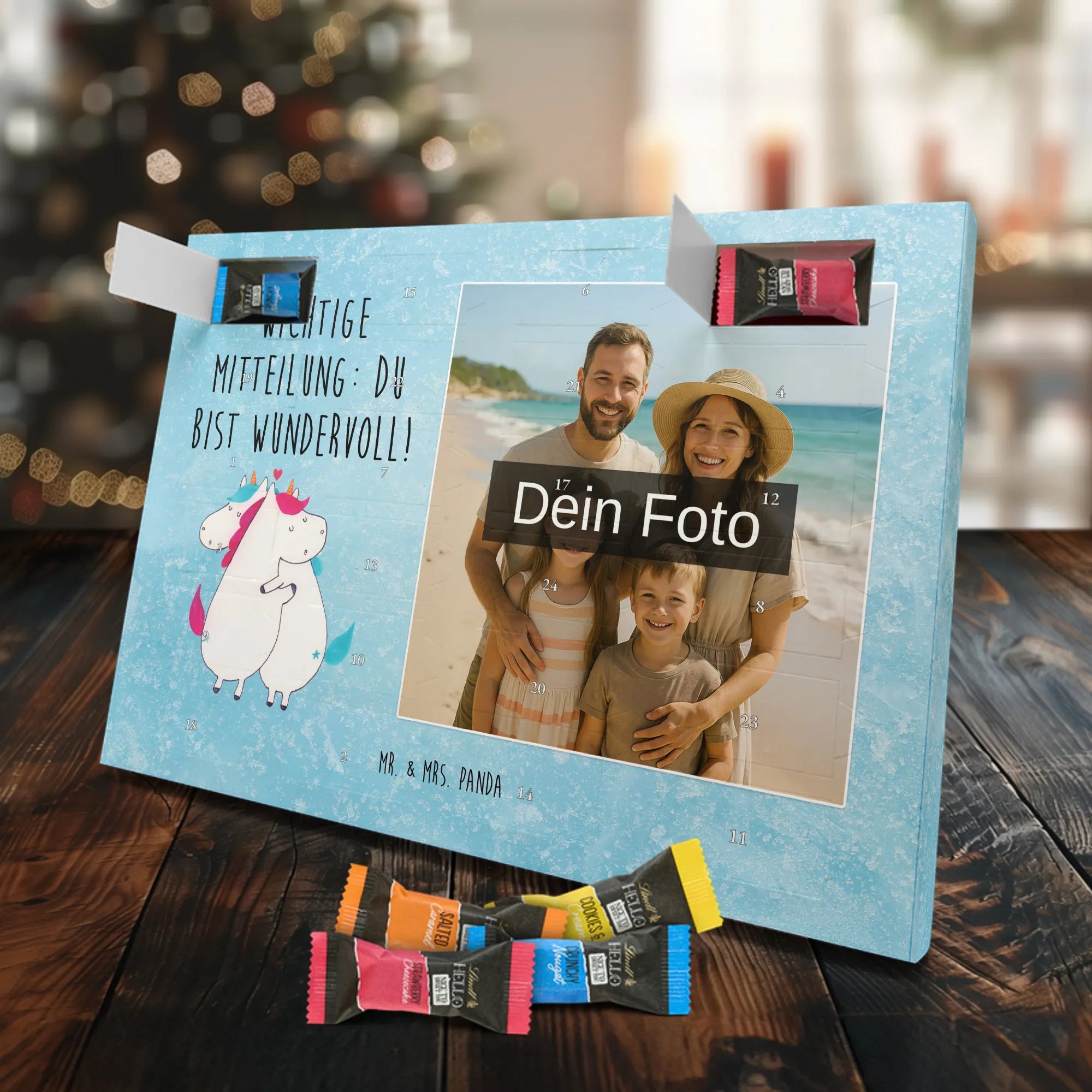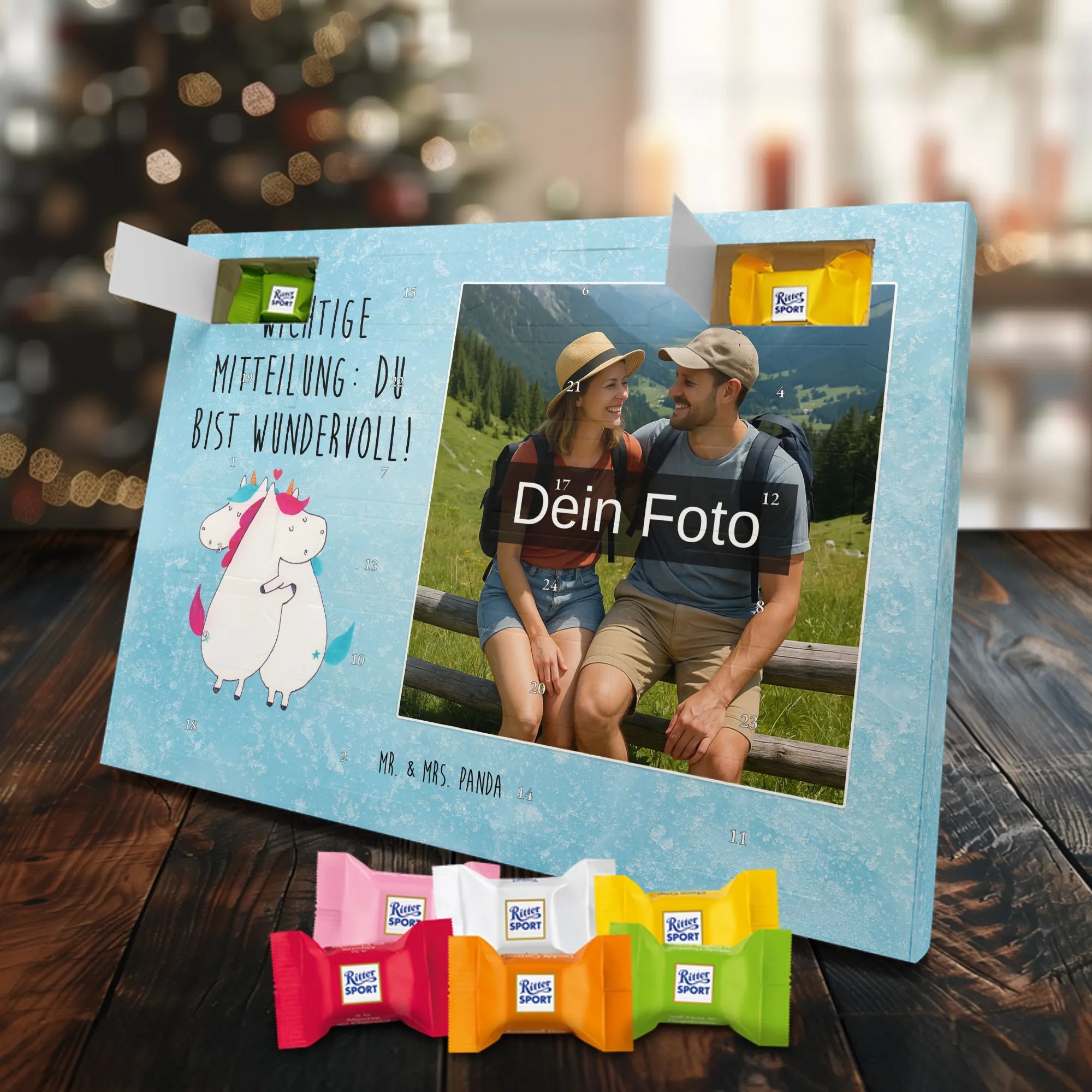 Personalisierter Schoko Foto Adventskalender Einhorn Mitteilung - Ritter Sport - Eisblau