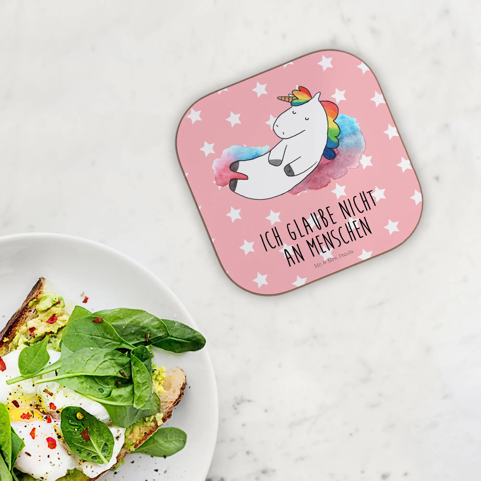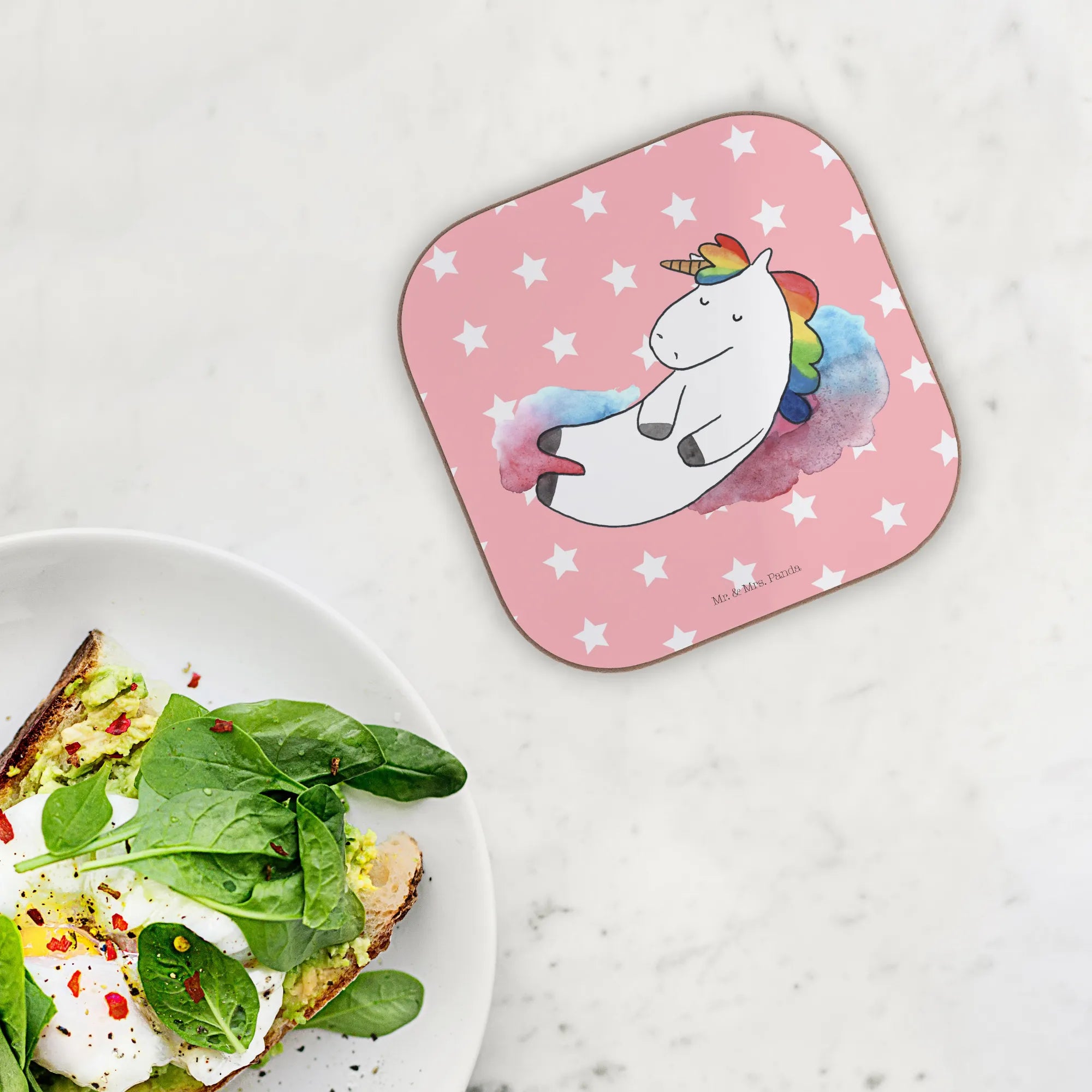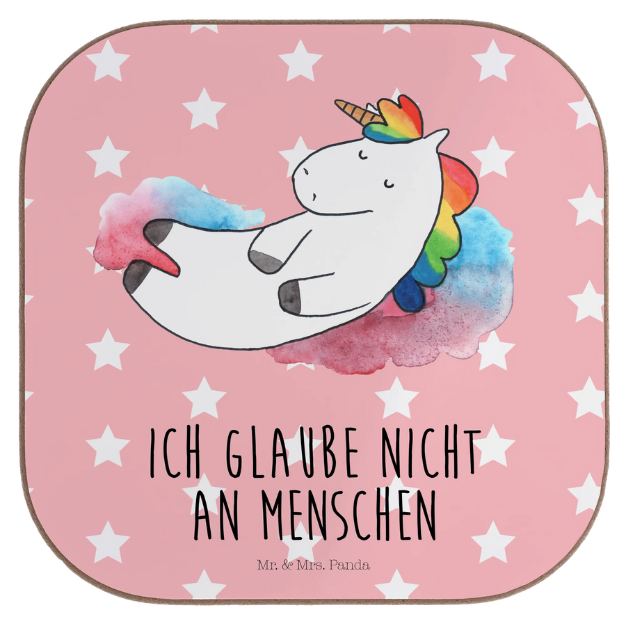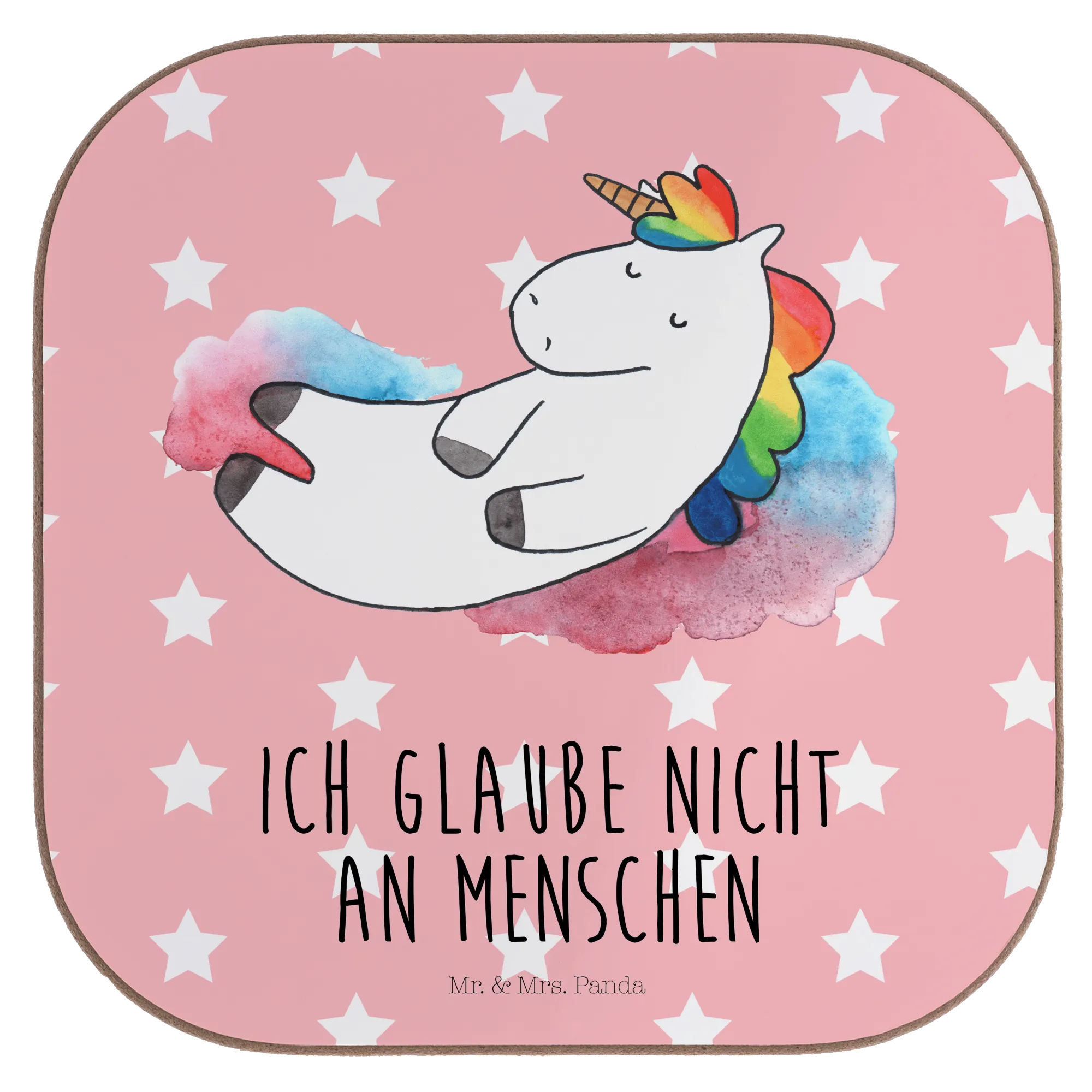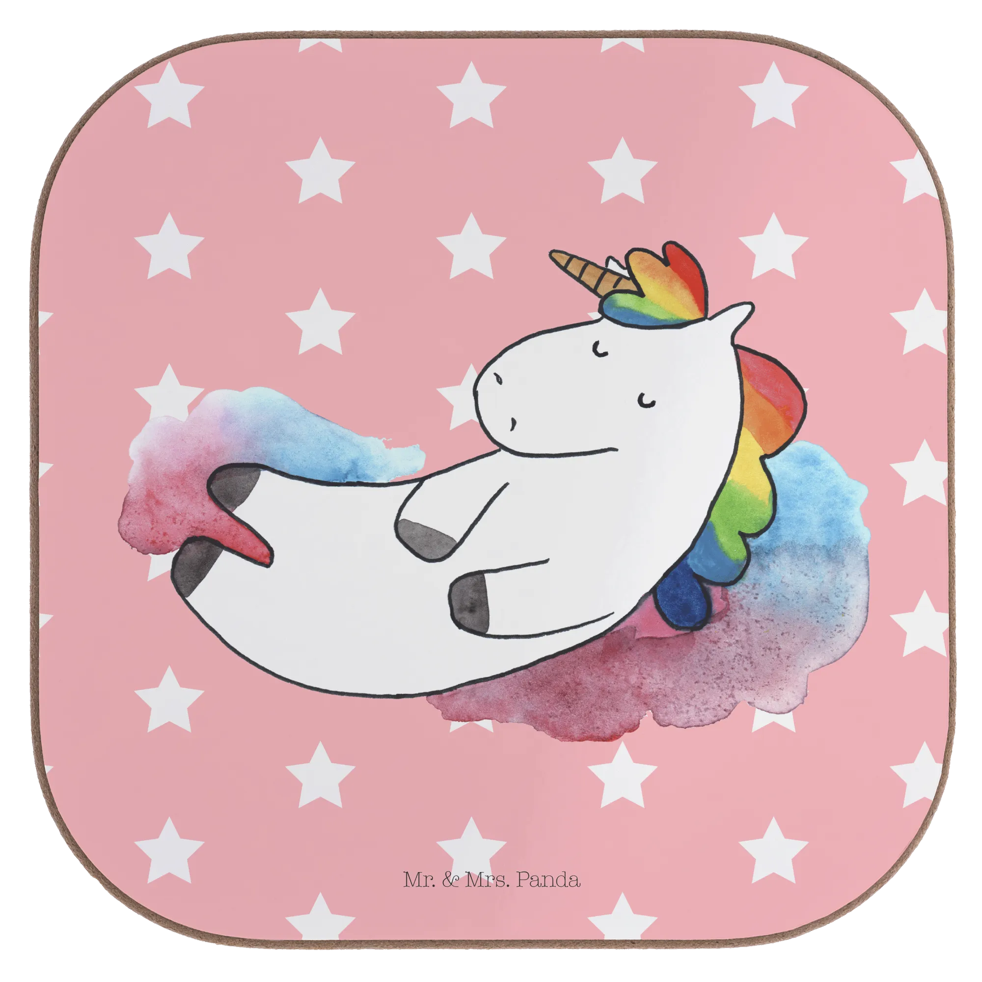 Square coaster unicorn cloud 7 - with a saying - Pastel Red