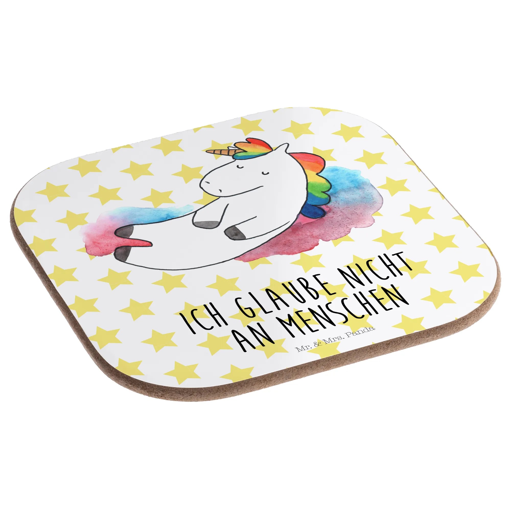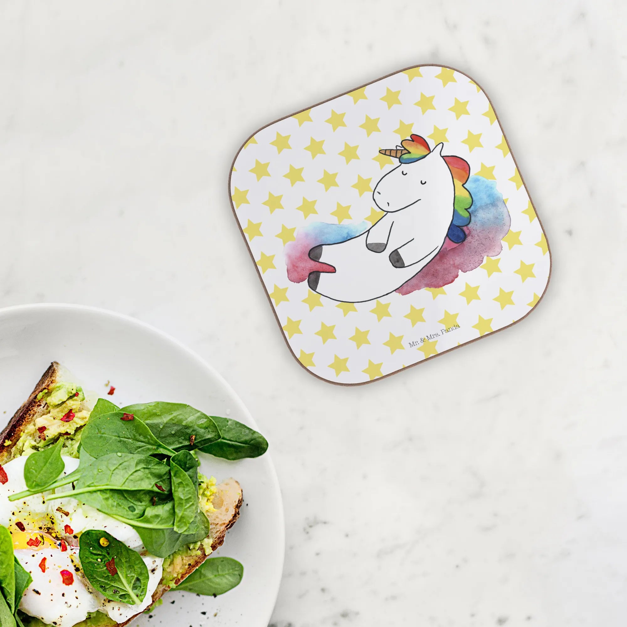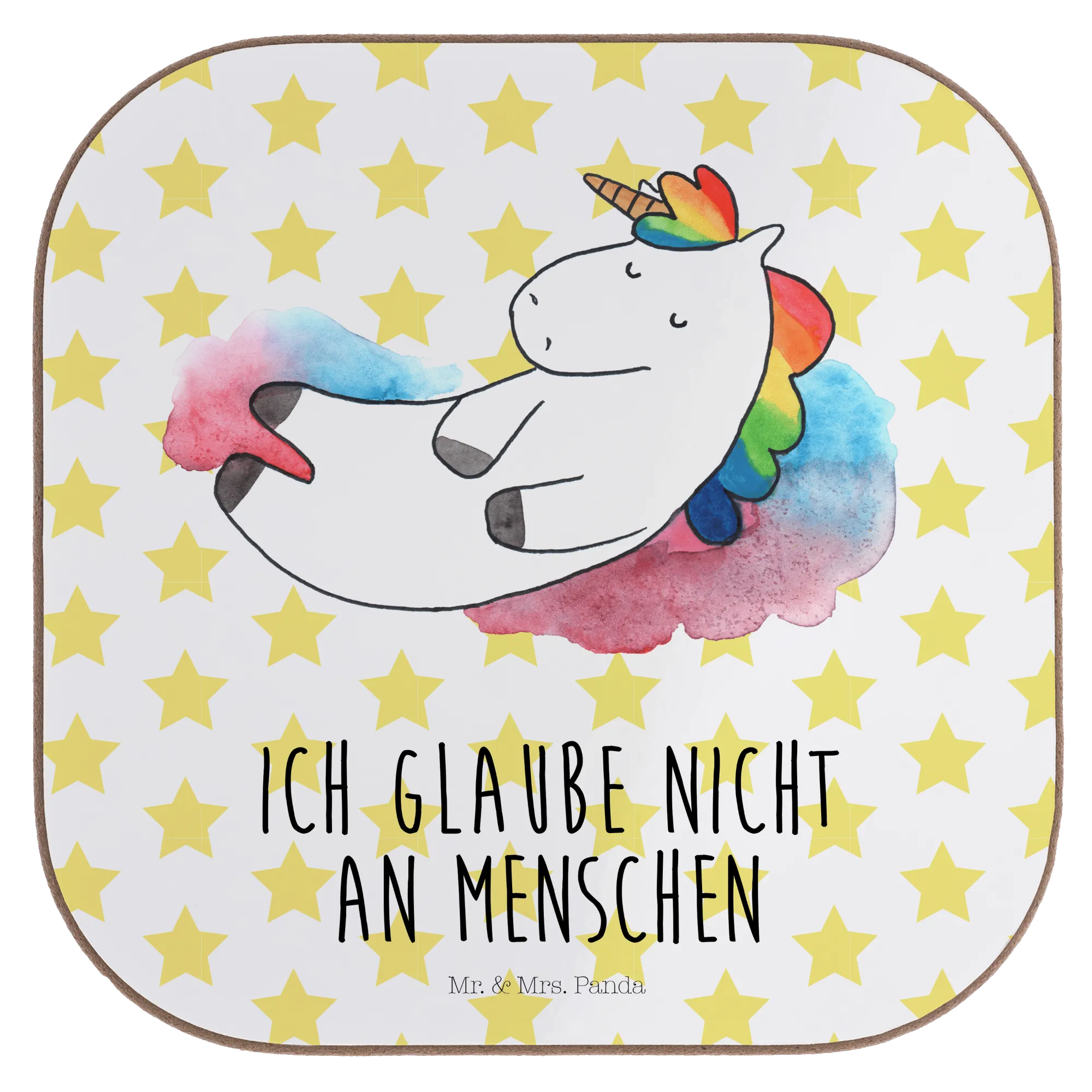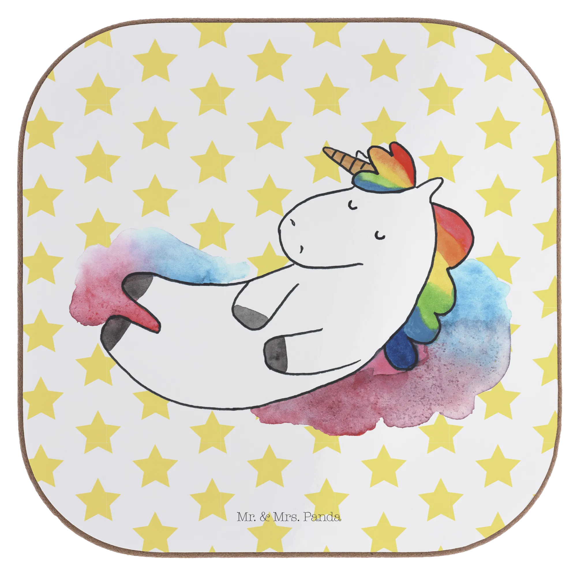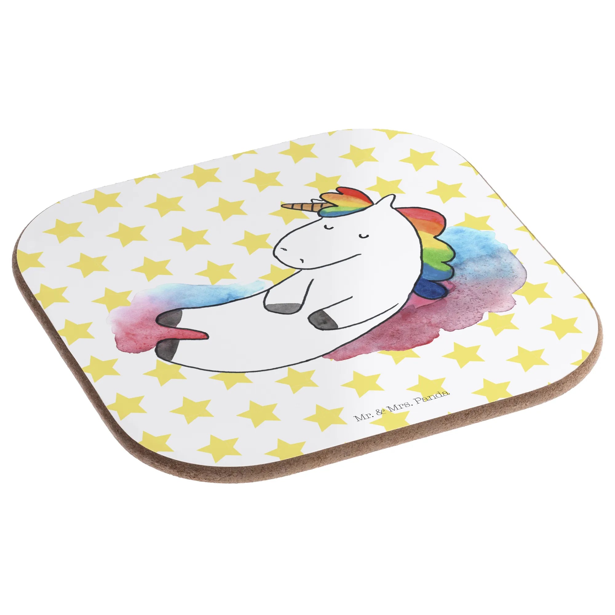 Square coaster unicorn cloud 7 - with a saying - Pastel Red