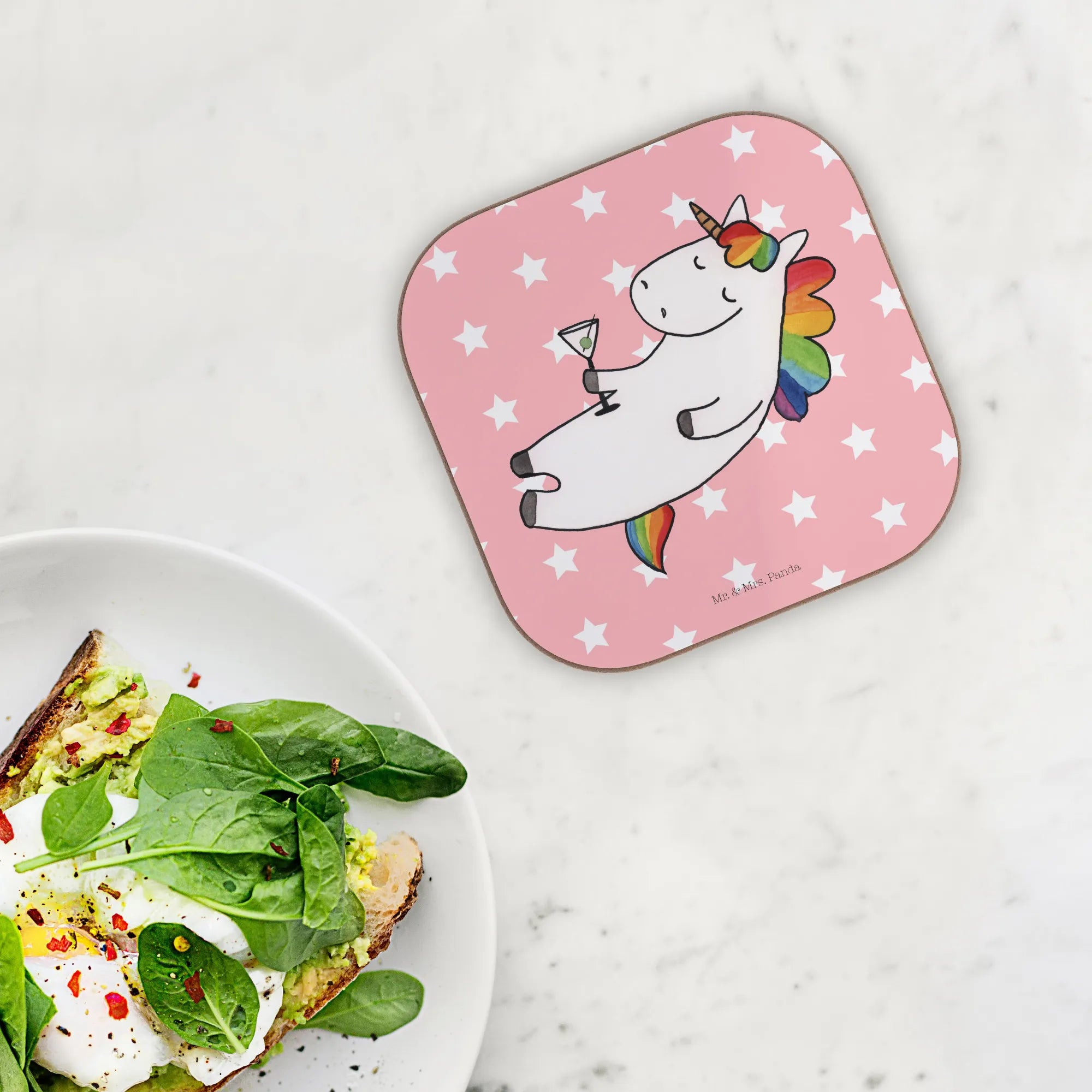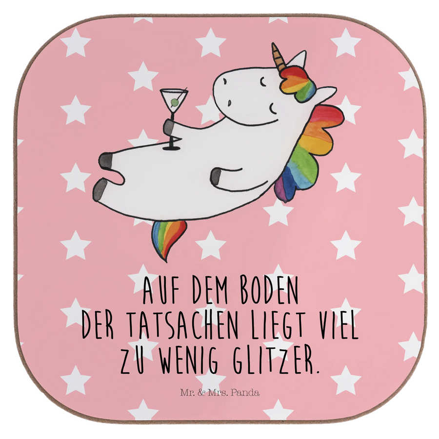 Square coaster unicorn cocktail - with saying - Pastel Red