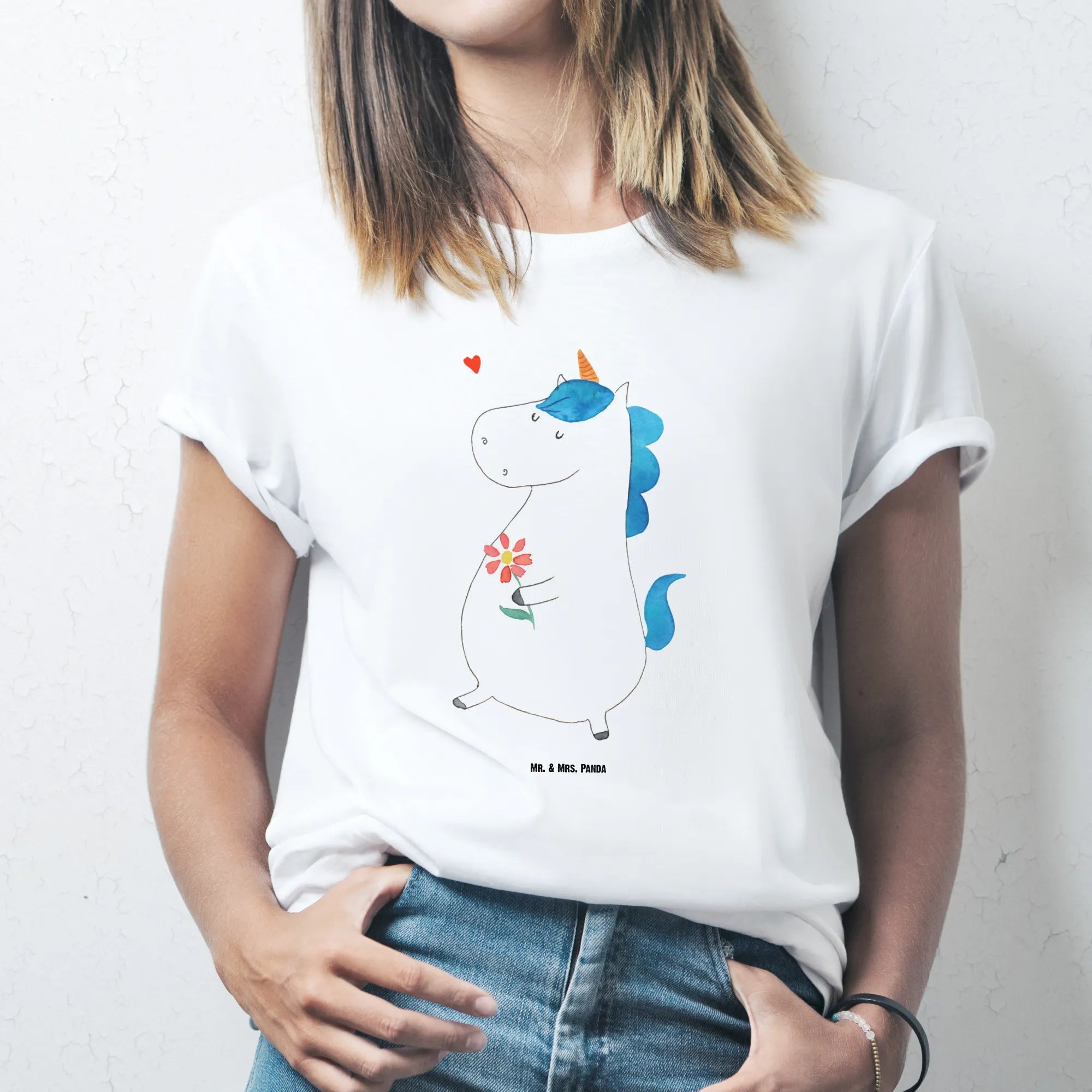 Ob du es für dich selbst kaufst oder als liebevolles Geschenk für deine Freundin, deine Schwester oder deine Mutter planst – dieses Shirt verbreitet sofort gute Laune. Das Design stammt aus unserer exklusiven Einhorn-Kollektion, in der jedes Motiv von Mrs. Panda persönlich mit Aquarellfarben handgezeichnet wurde. Man sieht jedem Pinselstrich die Liebe und Sorgfalt an, die in unsere Produkte fließt. 🌸