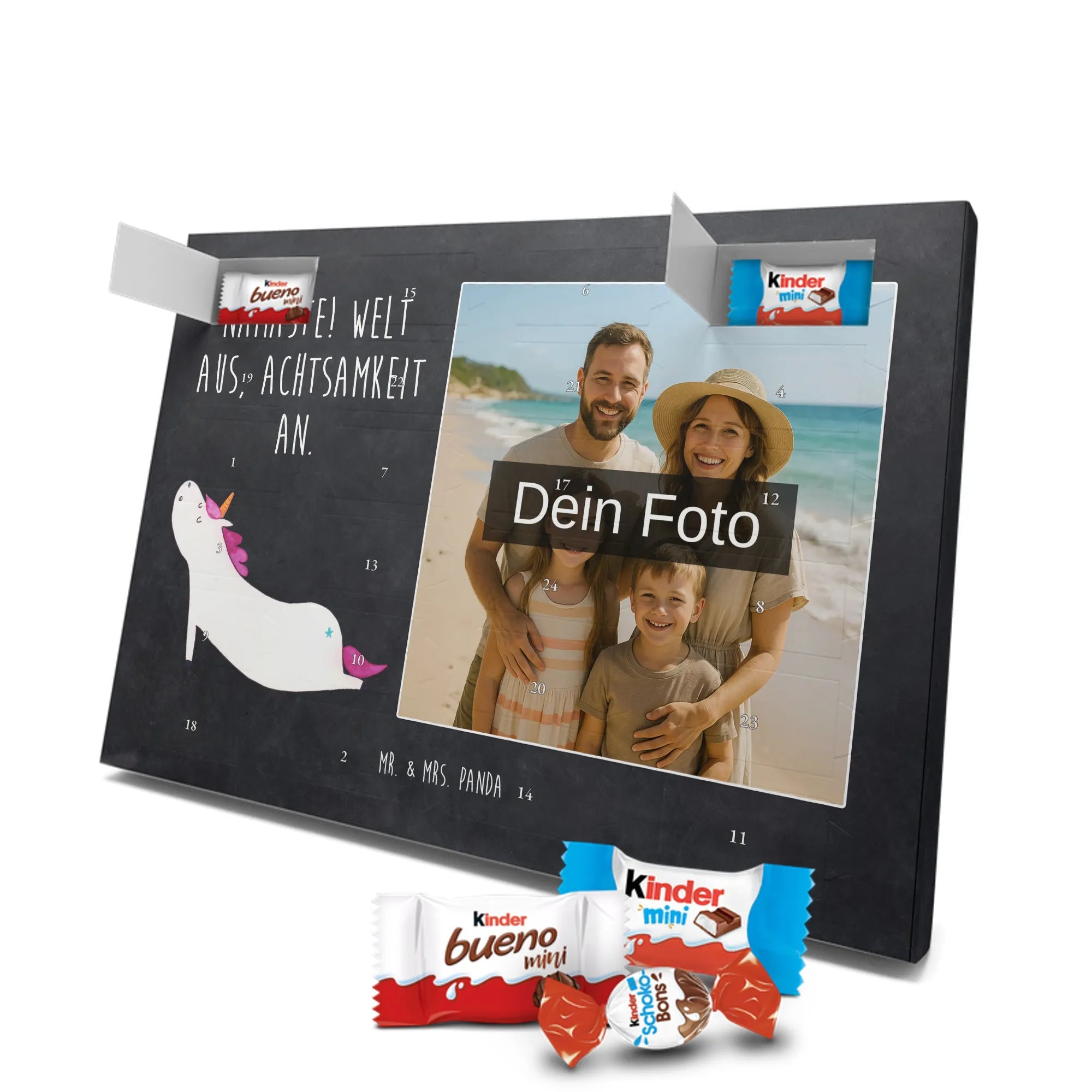 🐼 Personalisierter Foto Adventskalender mit Mr. & Mrs. Panda Motiven und 24 Schoko-Überraschungen von kinder®.