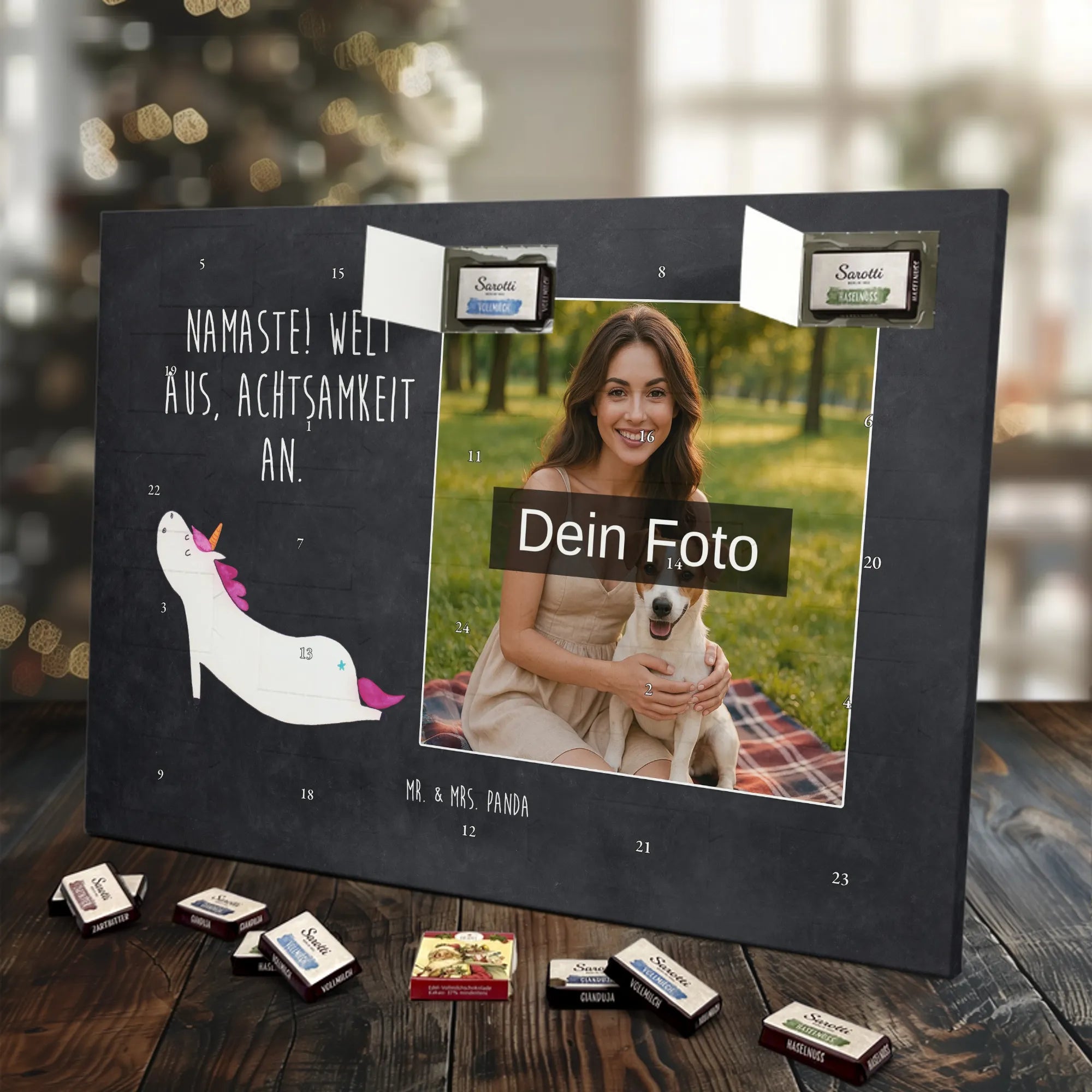 Mach Weihnachten persönlich: Gestalte jetzt deinen personalisierten Schoko Foto Adventskalender von Mr. & Mrs. Panda und verschenke süße Vorfreude mit Stil!