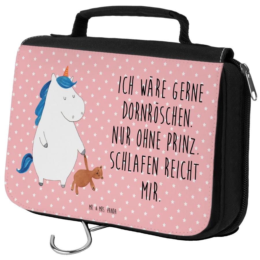 But it doesn’t stop there; it's also perfect for adults embracing the single life or those just looking to add a bit of whimsy to their bathroom essentials. The slogan "Ich wäre gerne Dornröschen. Nur ohne Prinz. Schlafen reicht mir." speaks to anyone dreaming of enchanting nights filled with peaceful sleep. This wash bag highlights the notion that you can enjoy a luxury experience without needing anyone else.