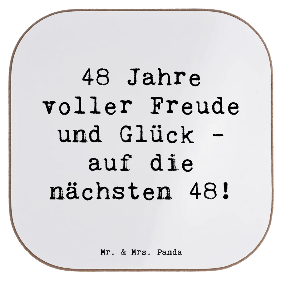 Square coaster Saying 48 Jahre voller Freude und Glück - auf die nächsten 48! - White