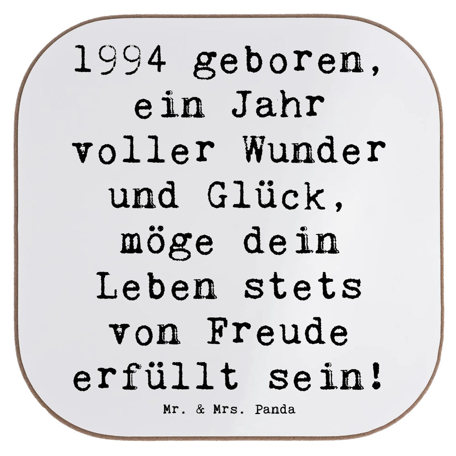 Square coaster Saying 1994 geboren, ein Jahr voller Wunder und Glück, möge dein Leben stets von Freude erfüllt sein! - White