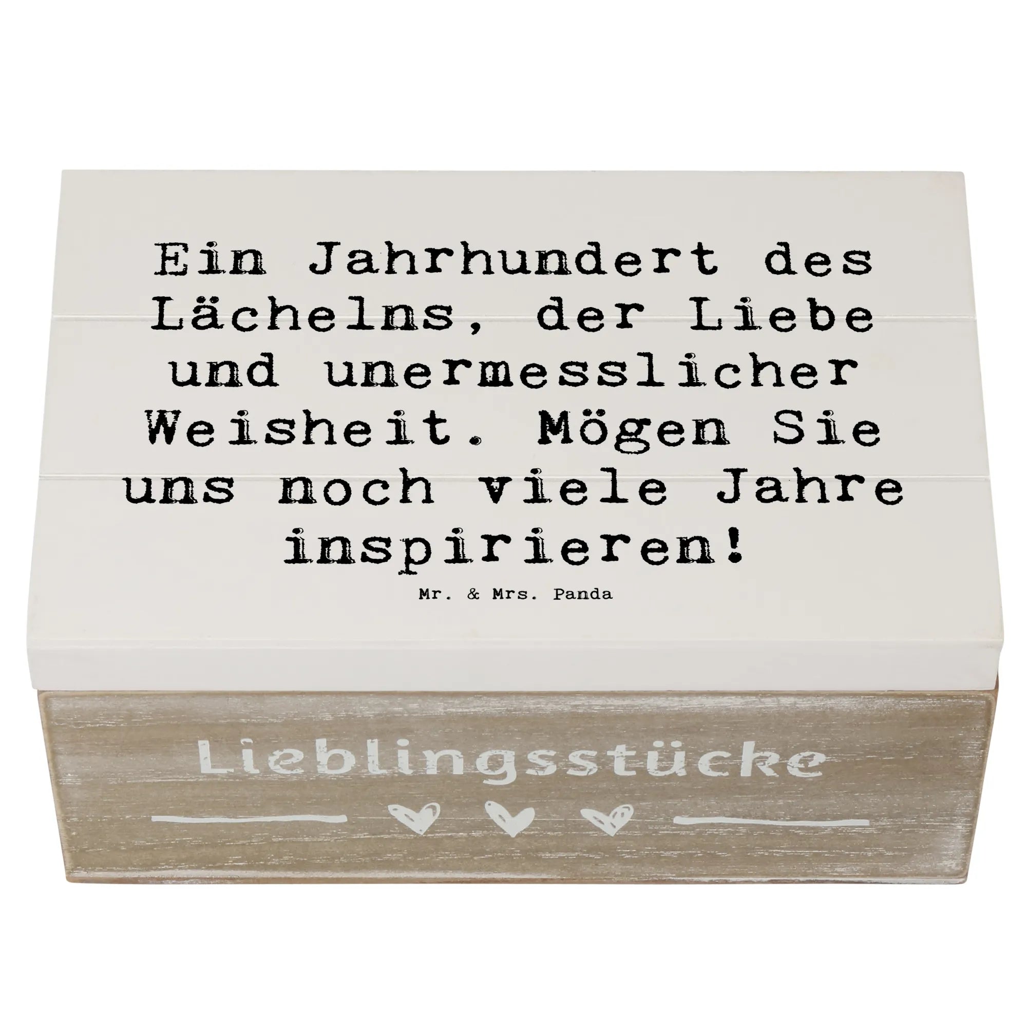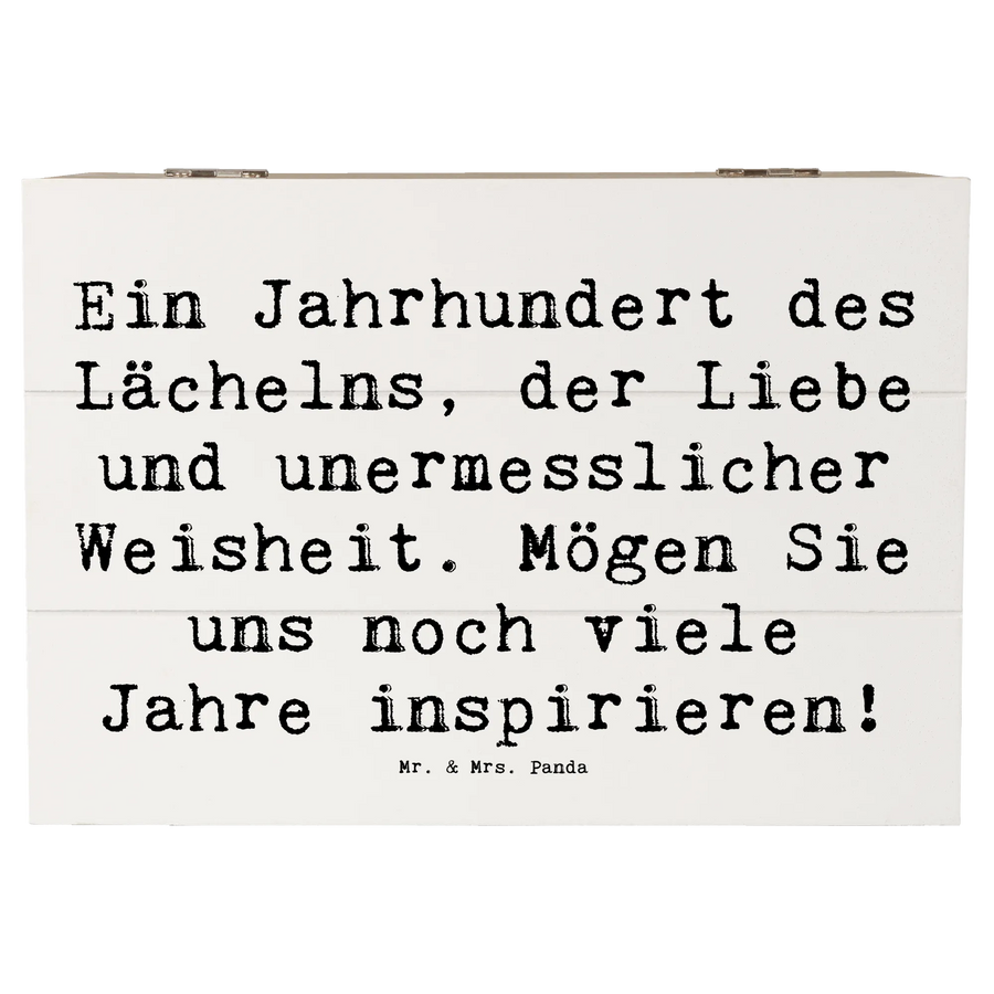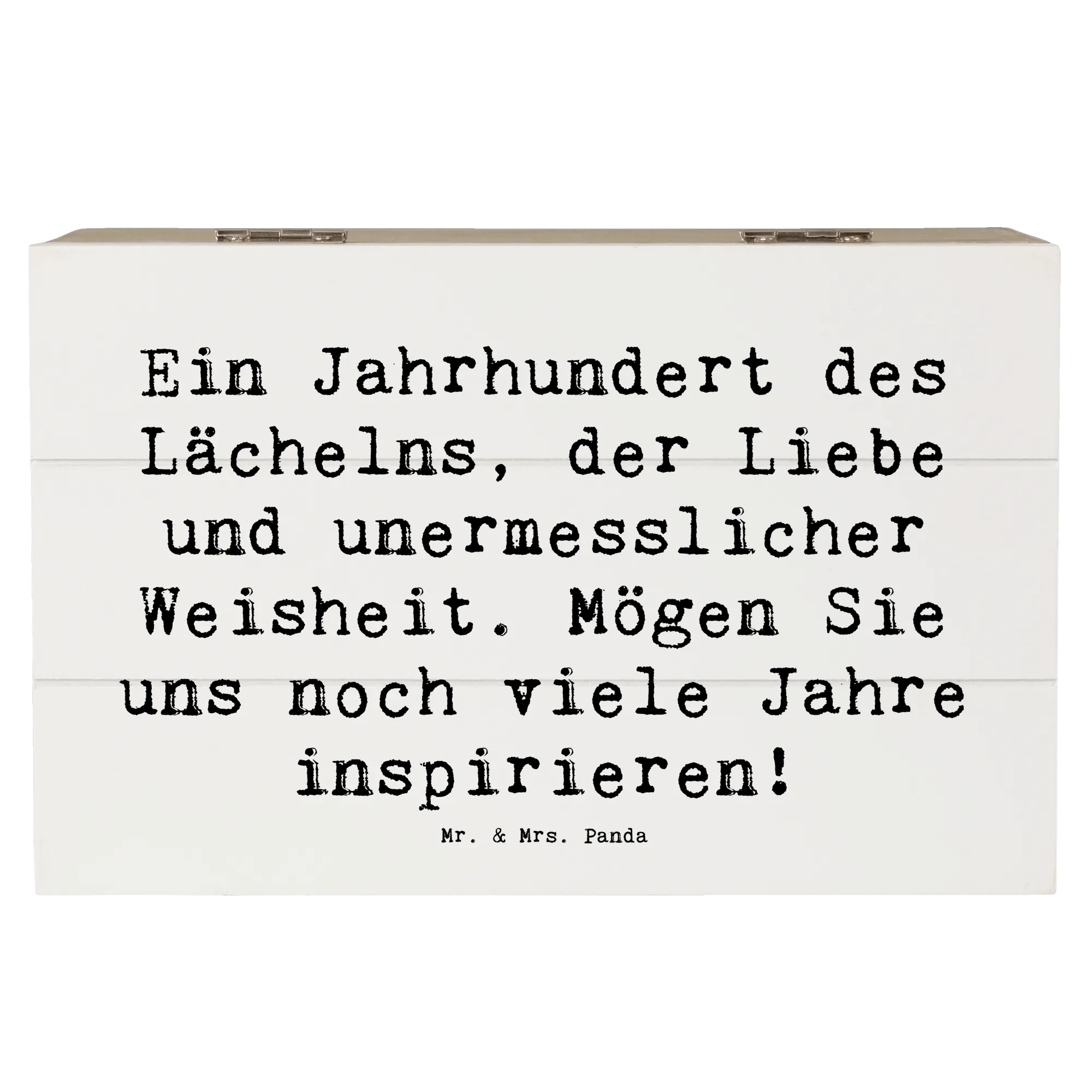 Wooden chest Saying Ein Jahrhundert des Lächelns, der Liebe und unermesslicher Weisheit. Mögen Sie uns noch viele Jahre inspirieren! - 22 x 15 cm - White