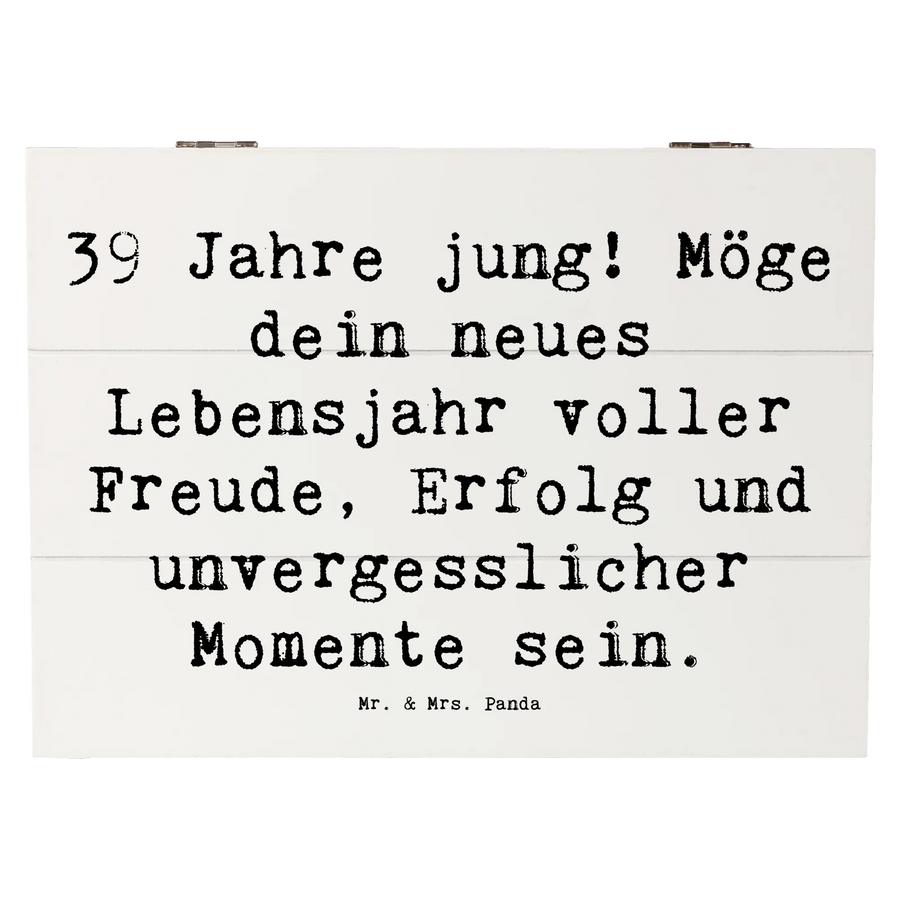 Wooden chest Saying 39 Jahre jung! Möge dein neues Lebensjahr voller Freude, Erfolg und unvergesslicher Momente sein. - 25 x 18 cm - White