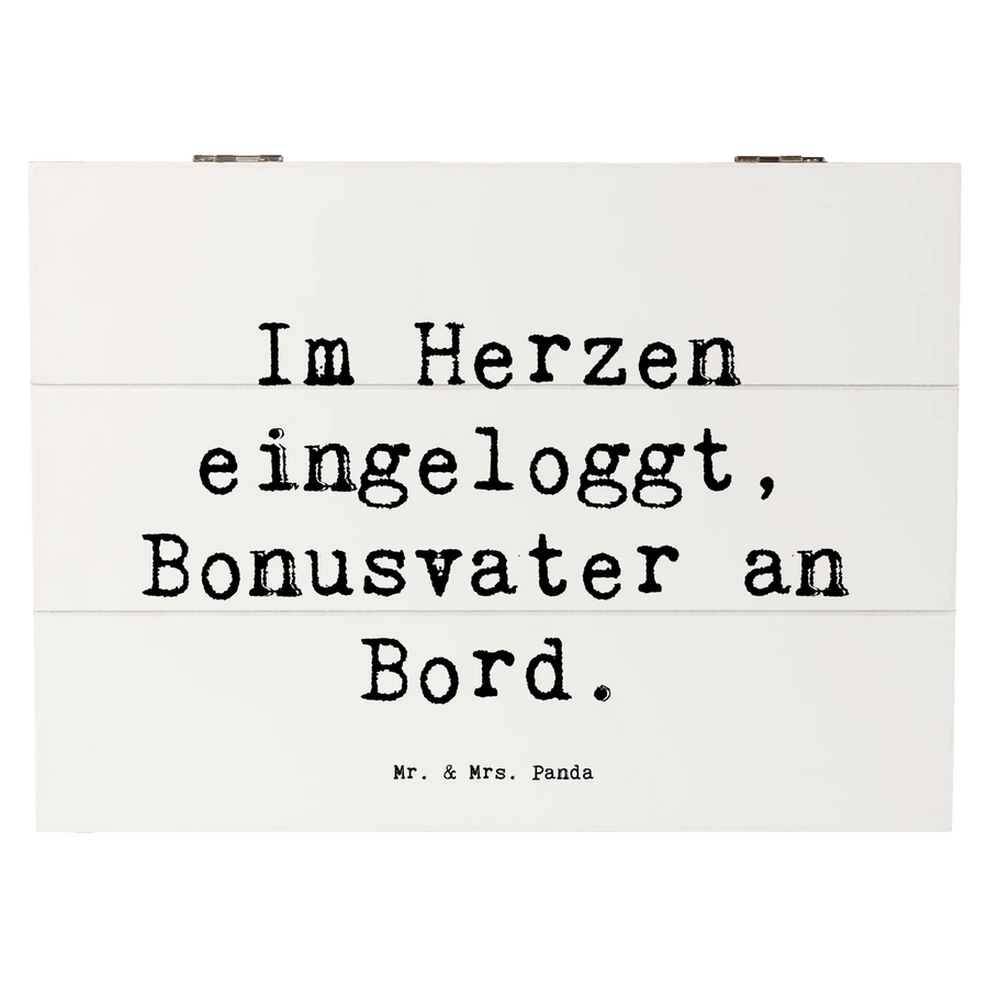 Wooden chest Saying Im Herzen eingeloggt, Bonusvater an Bord. - 25 x 18 cm - White