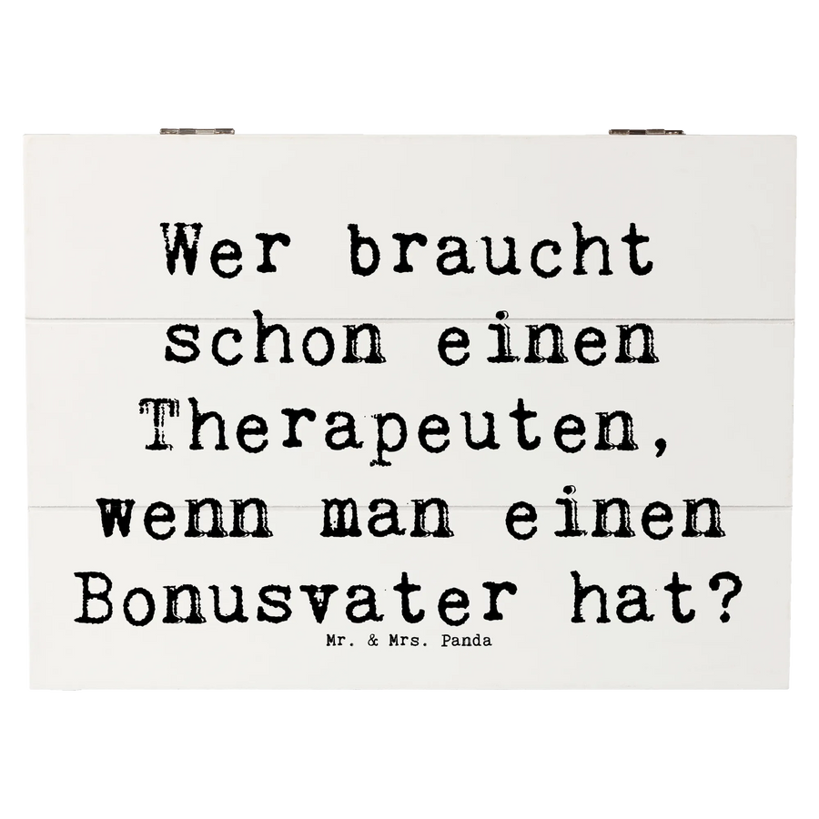 Eine wunderschöne Holzkiste von Mr. & Mrs. Panda – das perfekte Geschenk für Deinen Bonusvater! Bedruckt mit dem charmanten Spruch „Wer braucht schon einen Therapeuten, wenn man einen Bonusvater hat?“ ist diese Holzbox eine liebevolle Art, Danke zu sagen und besondere Erinnerungen stilvoll aufzubewahren. 😊