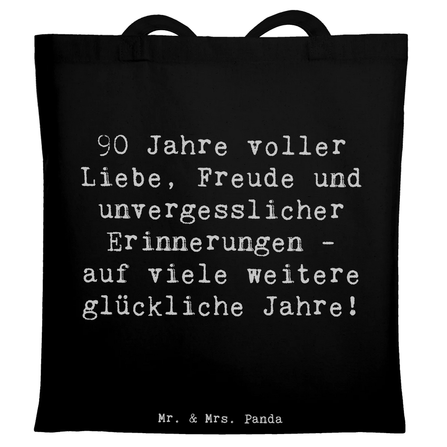 Tote bag Saying 90 Jahre voller Liebe, Freude und unvergesslicher Erinnerungen - auf viele weitere glückliche Jahre! - Black