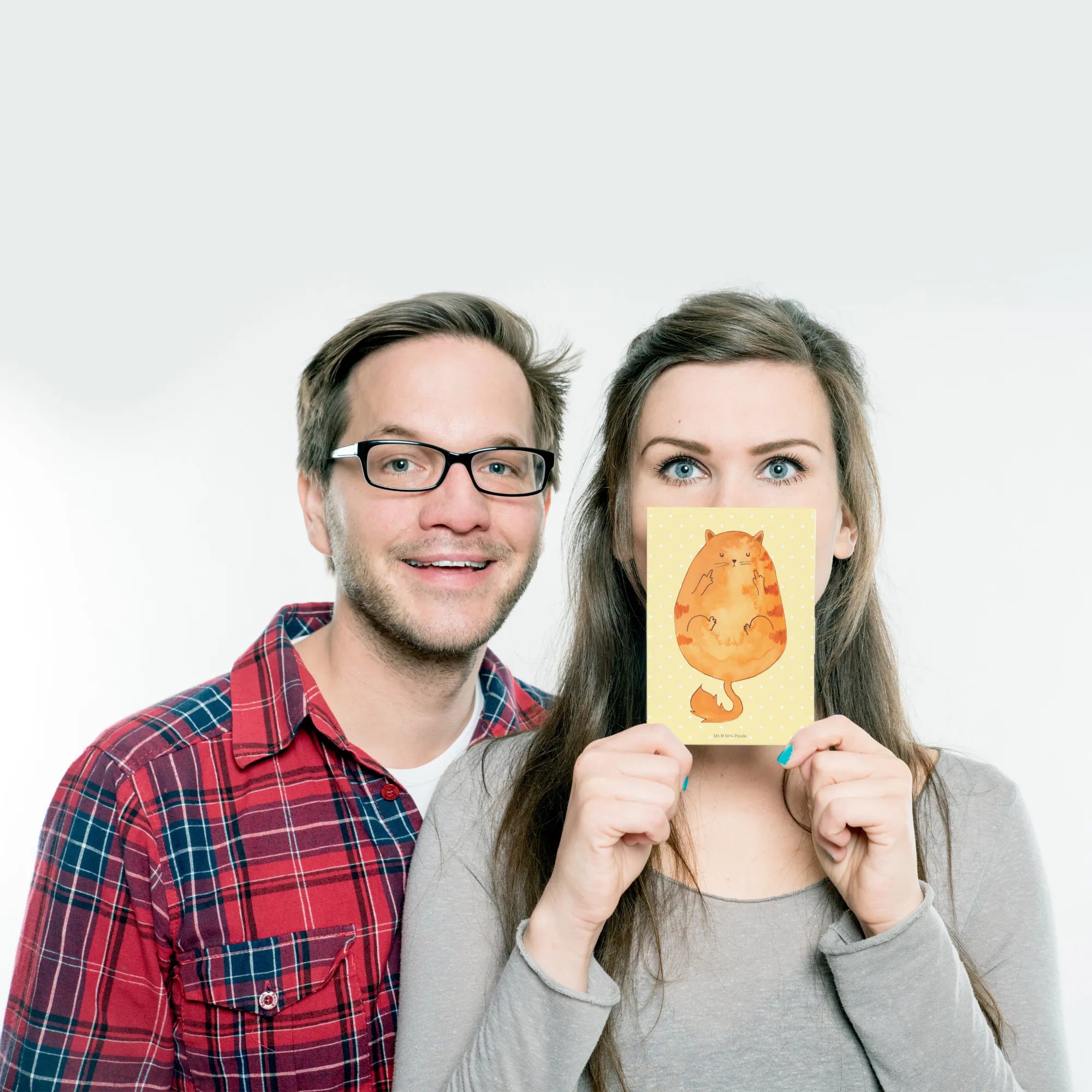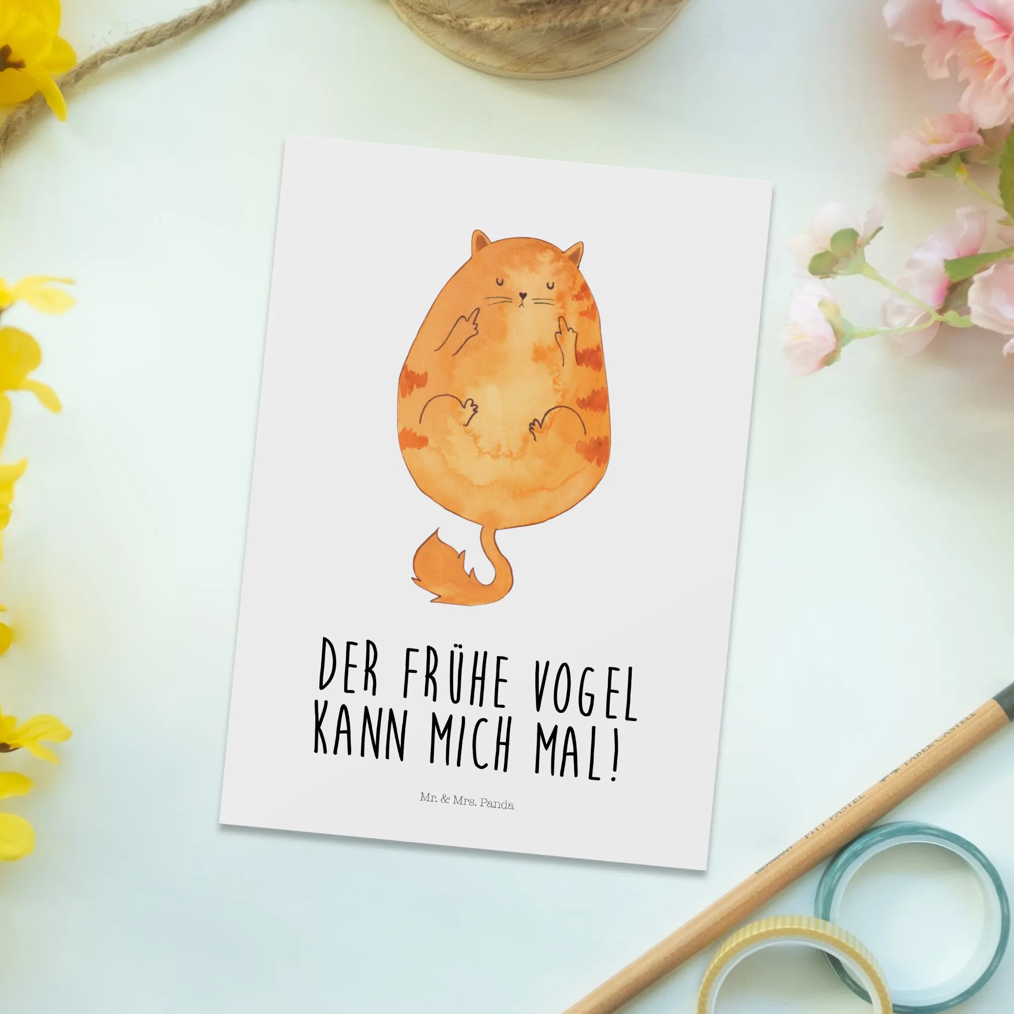 Introducing the delightful 'Cat Rise and Shine' postcard from the whimsical Mr. & Mrs. Panda collection! This adorable postcard is a perfect fusion of charm and humor, tailored specifically for all those cat lovers out there who enjoy a good laugh. Isn't it just purr-fect? Crafted with high-quality 300 grams cardstock, this unique postcard features a glossy front that catches the eye, while the matte back allows for easy personal notes. Whether you're sending a sweet message to a friend or displaying it as cat-themed decoration, this card is wonderfully versatile.