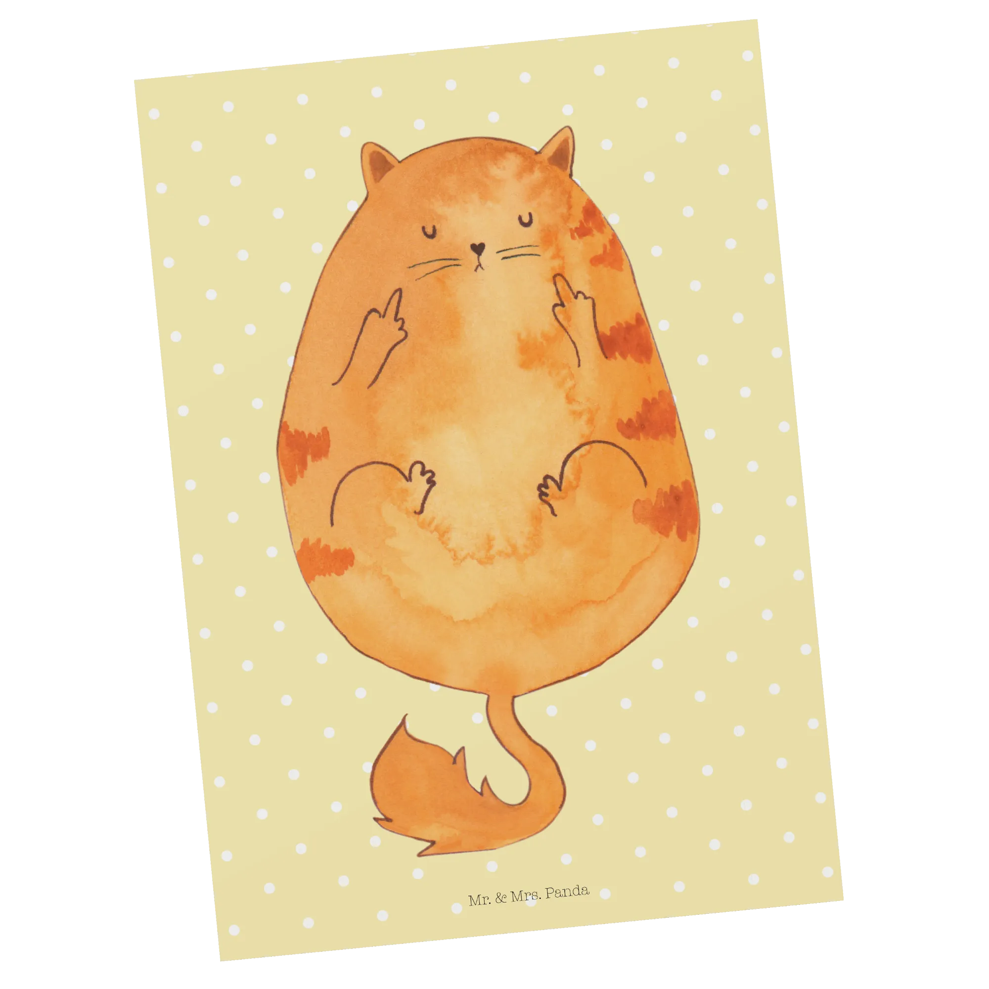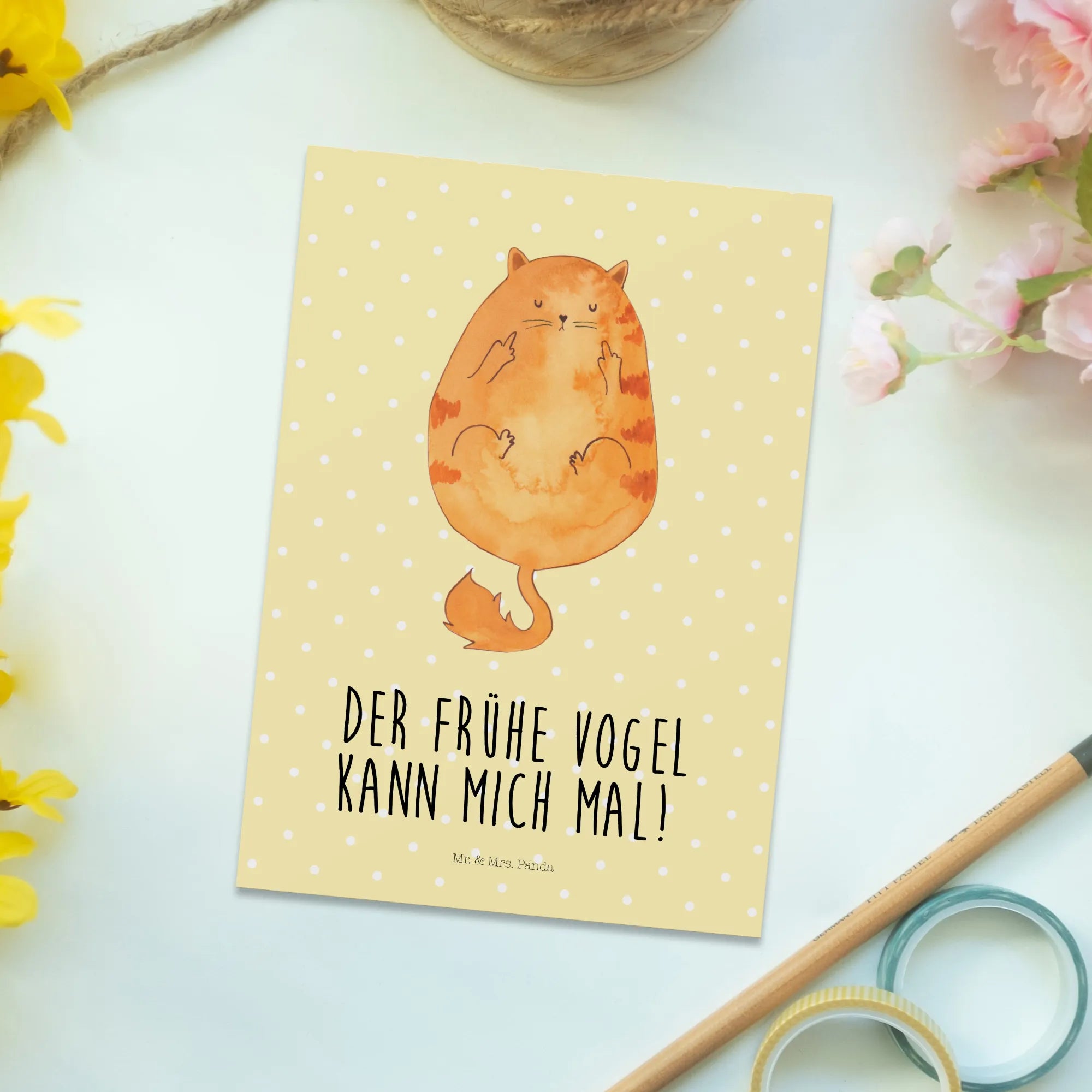 Postcard Cat Early riser - with a saying - Yellow Pastel