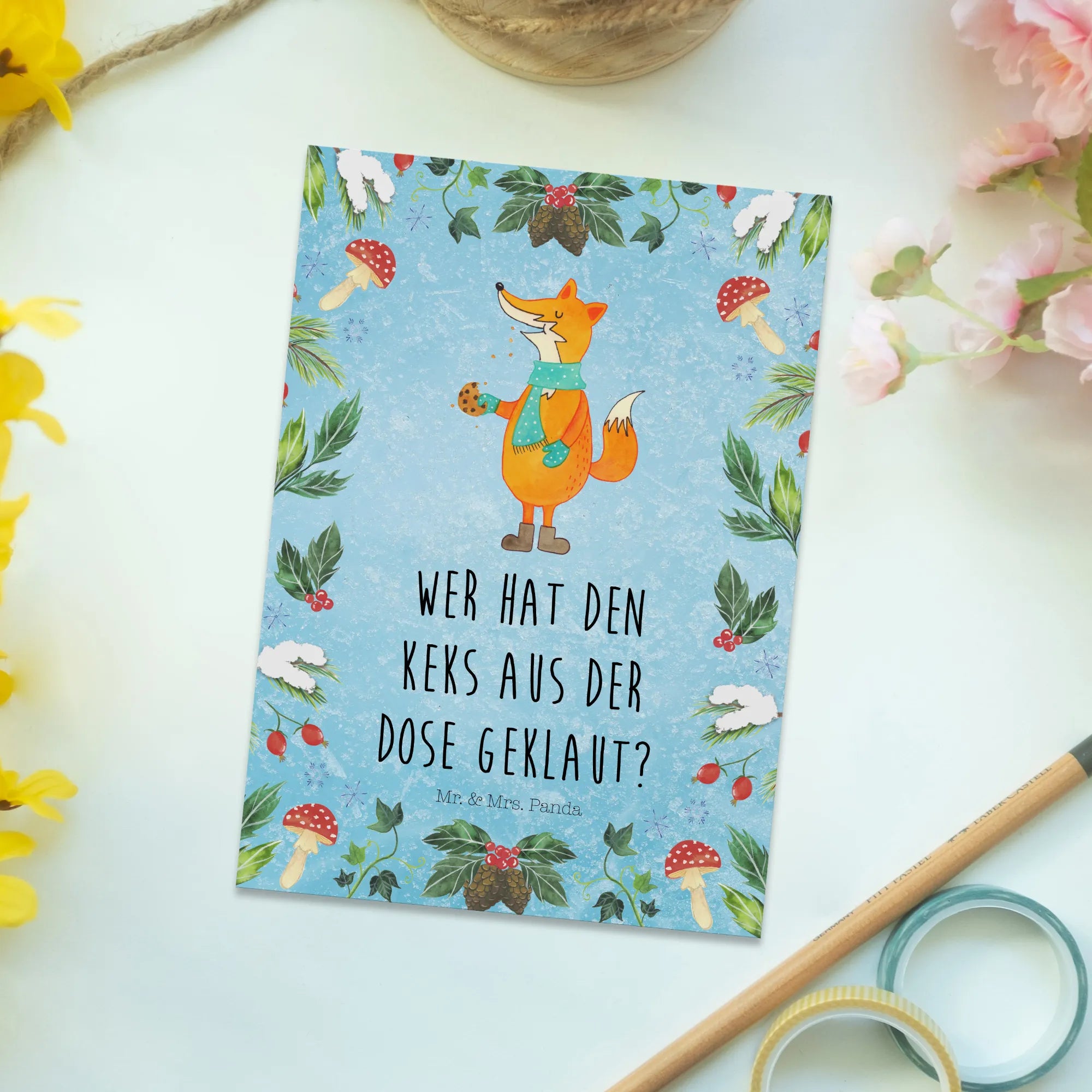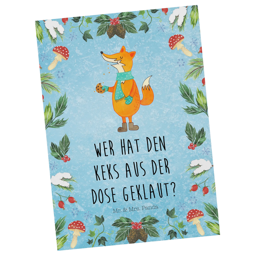 Postcard Fox cookie jar paper, card, gift card, letter, postcards, invitation, Postcard, gift, invitation card, Winter, Christmas, Christmas time, snow