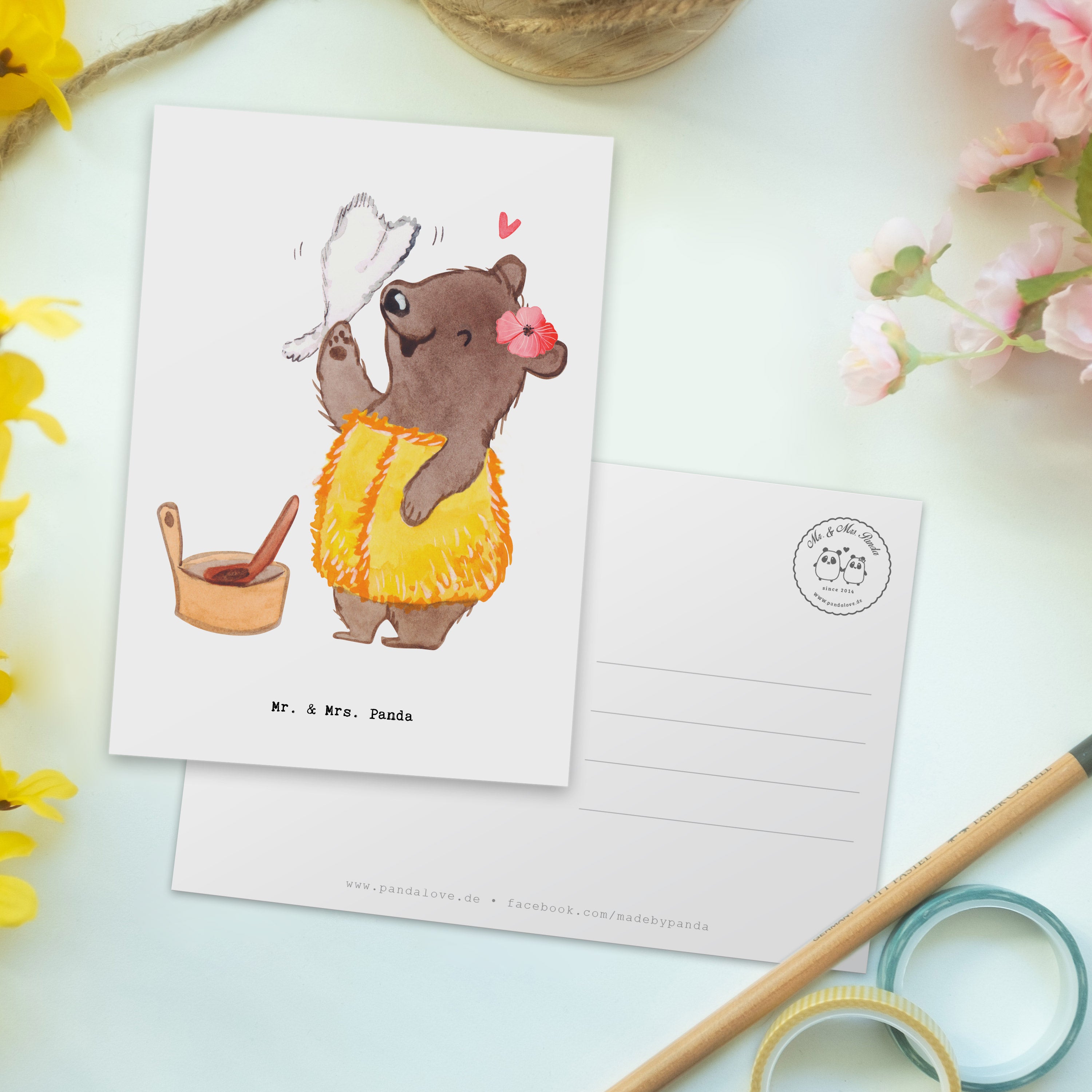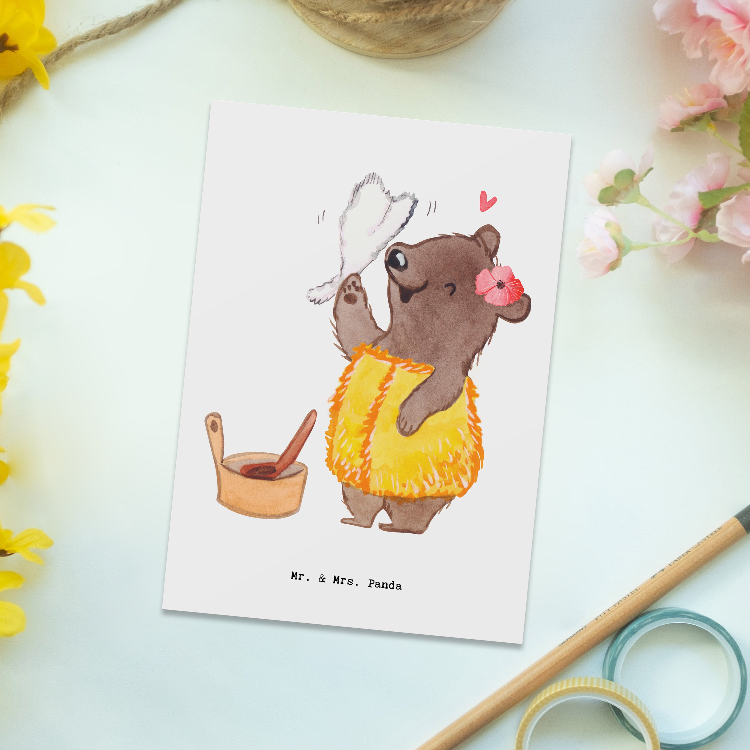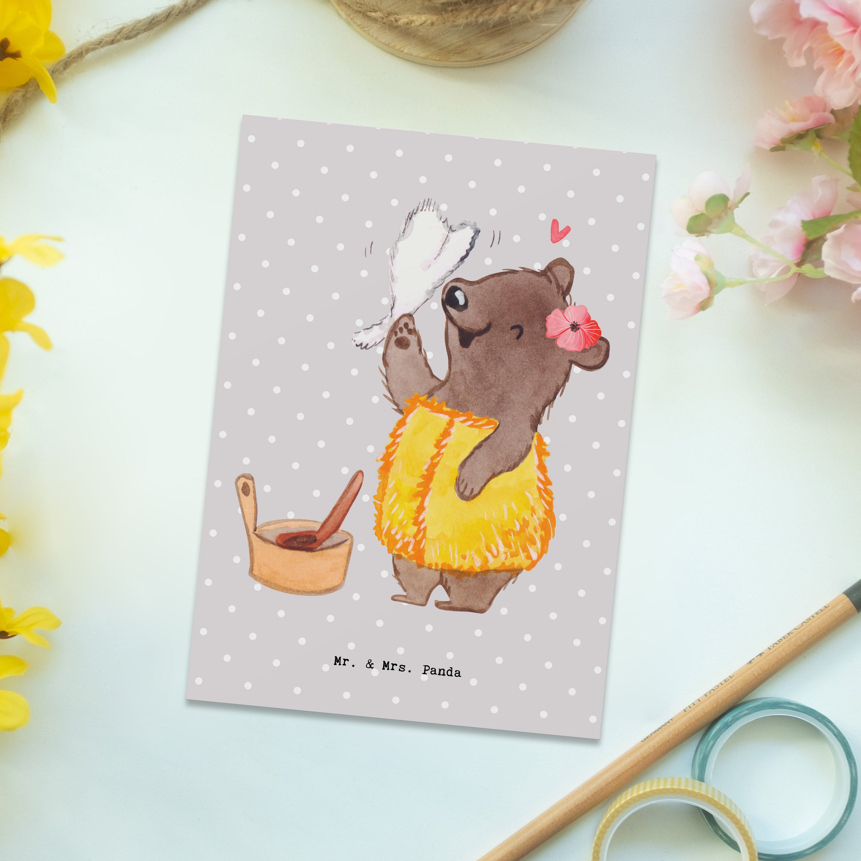 Introducing the perfect gift for all the sauna lovers out there! Our Mr. & Mrs. Panda Postcard featuring the adorable sauna master design is the ideal way to celebrate your friends, colleagues, or loved ones as they embark on new journeys, be it starting a new job, getting promoted, or even retiring. With a playful and charming bear, sporting a towel and masterfully waving it in the air, this postcard beautifully captures the essence of what it means to be a sauna master. It’s not just a card; it’s a loving gesture that shows you care!