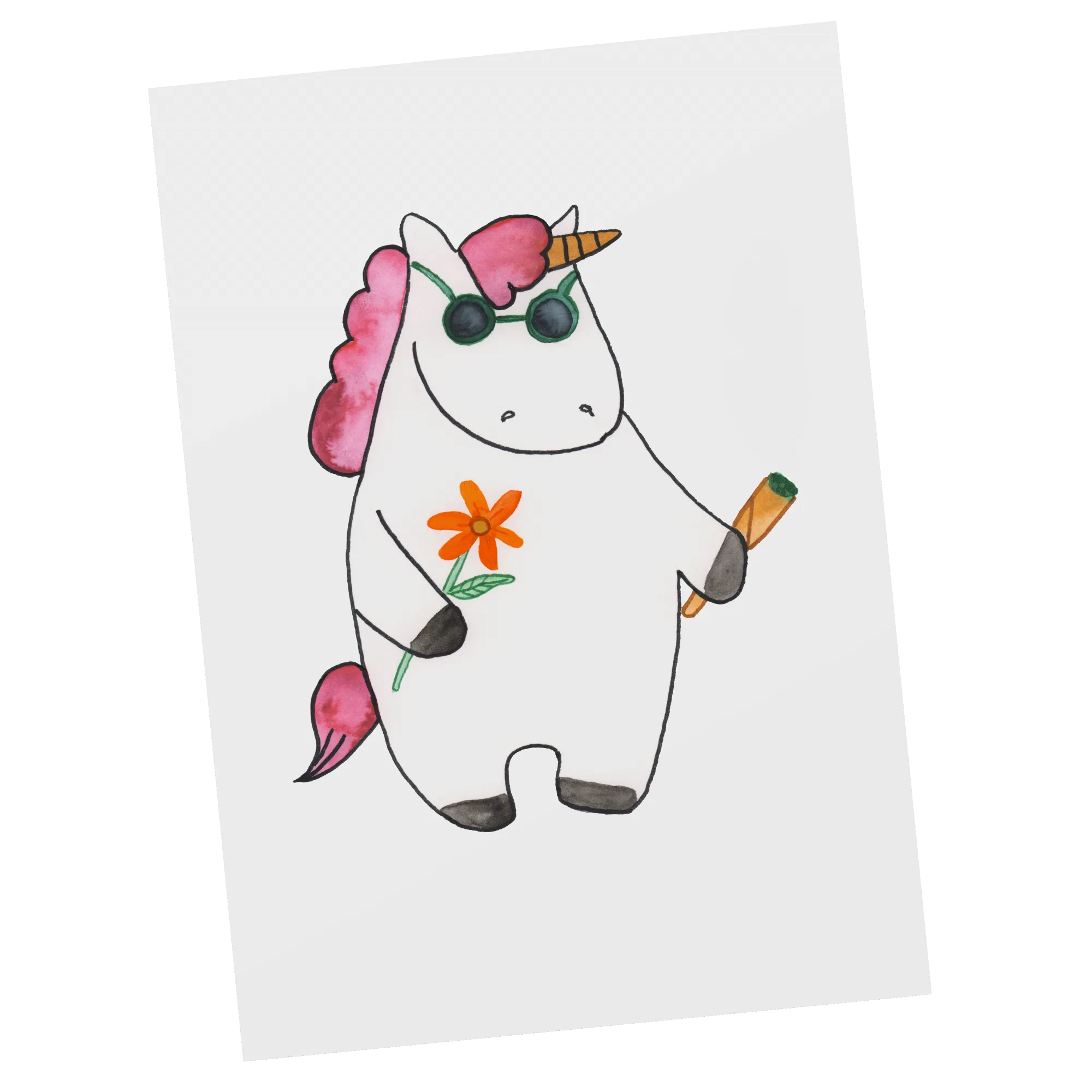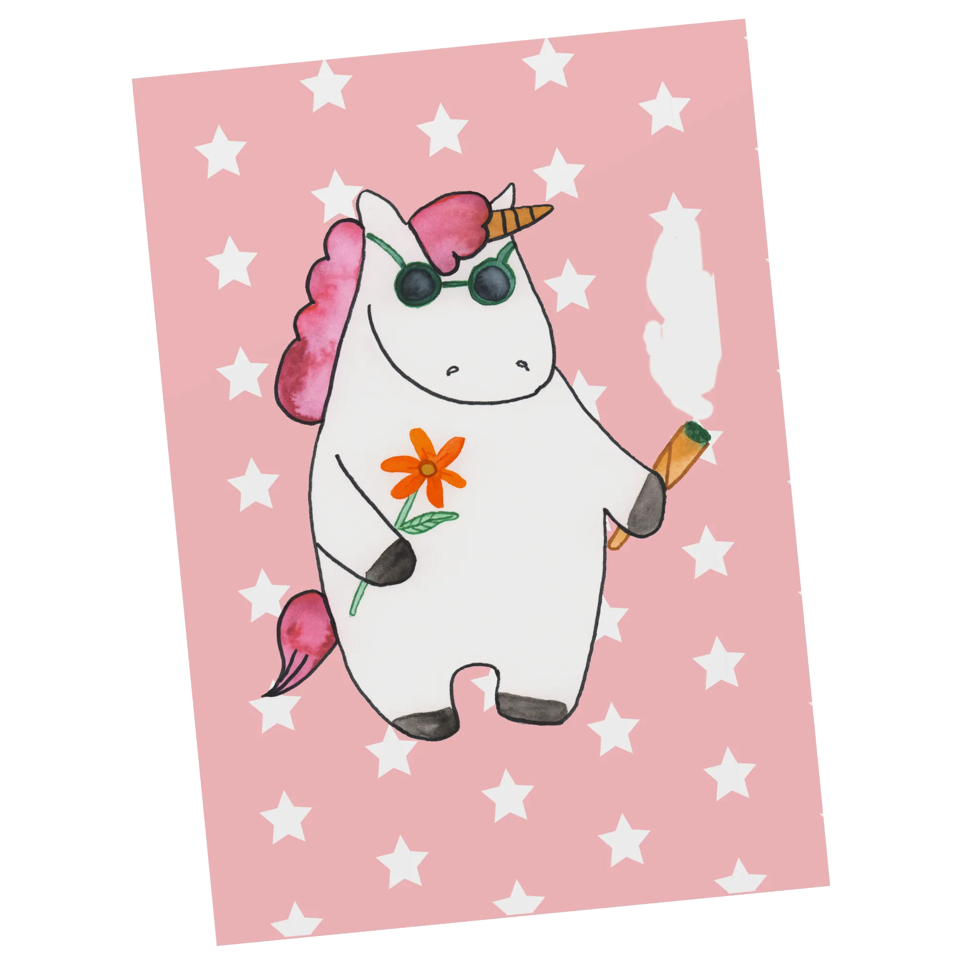 Postcard unicorn Woodstock - with saying - Pastel Red