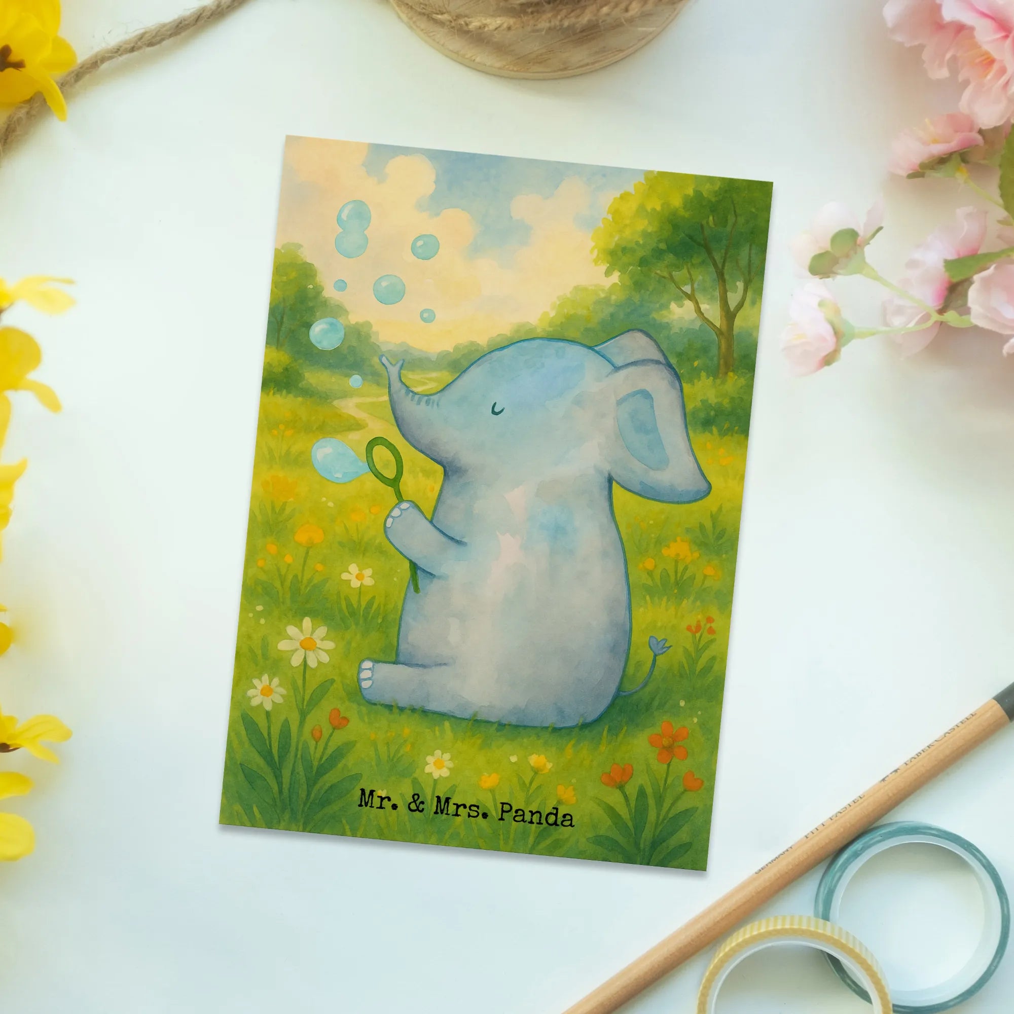 Postkarte Elefant Seifenblasen Design – Mr. & Mrs. Panda