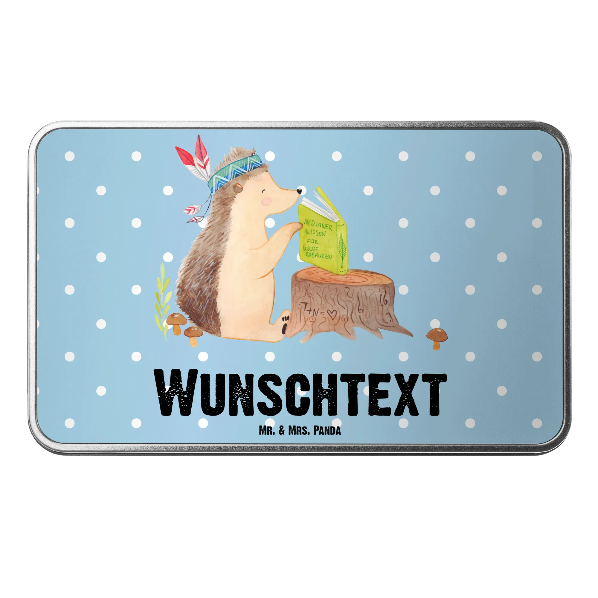 Personalised metal tin Hedgehog feather headdress - Pastel Blue