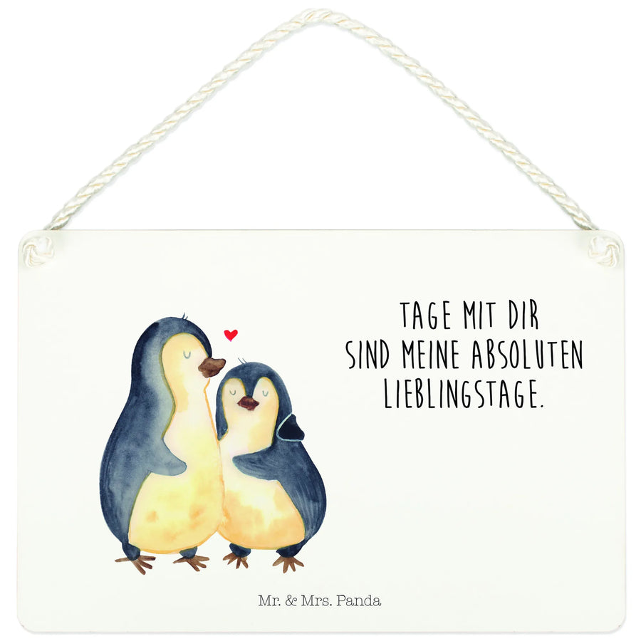 Decorative sign Penguin embrace - DIN A4 - with saying - White