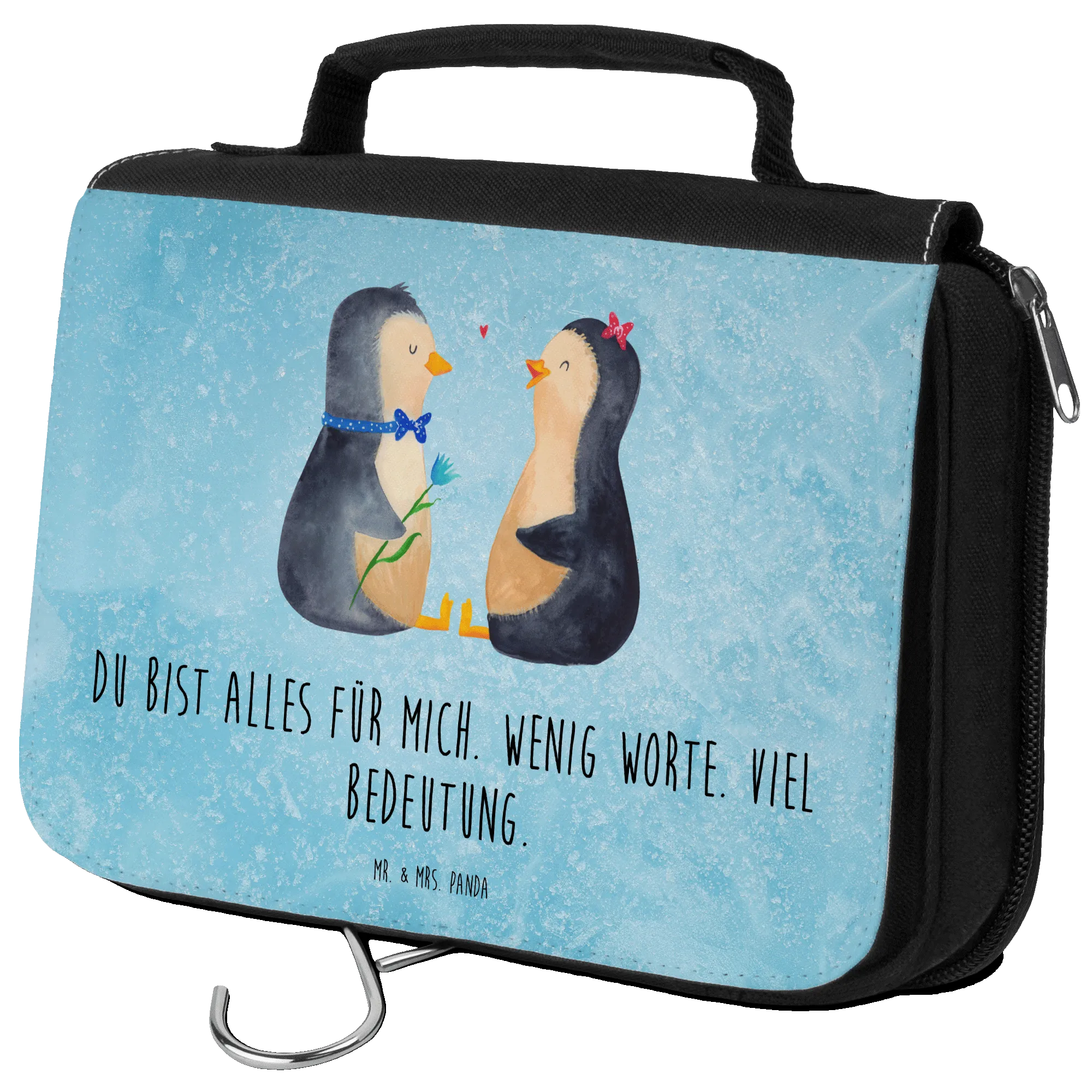 Imagine a cozy winter scene, with two sweet penguins gazing fondly at each other – that’s what you get with this delightful motif. The Penguin Couple are not only cute; they symbolize love and affection, making it a perfect gift for lovers, couples, or anyone who enjoys a bit of whimsy in their daily routine. Whether you’re searching for a unique wedding gift, an engagement present, or a special anniversary surprise, this penguin-themed wash bag ticks all the boxes.