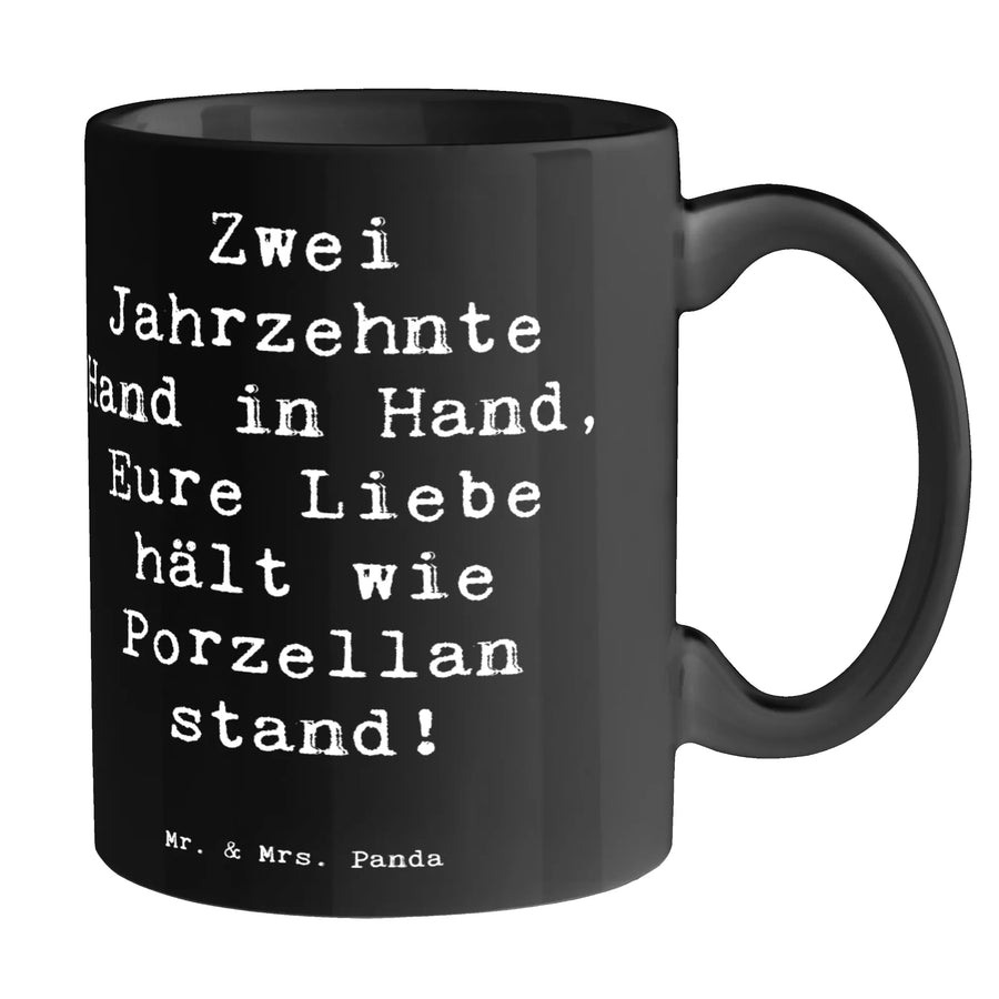 Mug Saying Zwei Jahrzehnte Hand in Hand, Eure Liebe hält wie Porzellan stand! - Black
