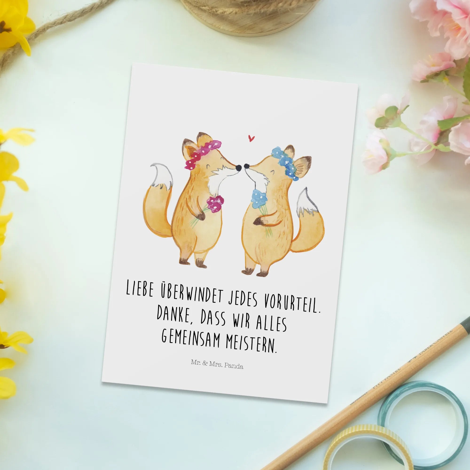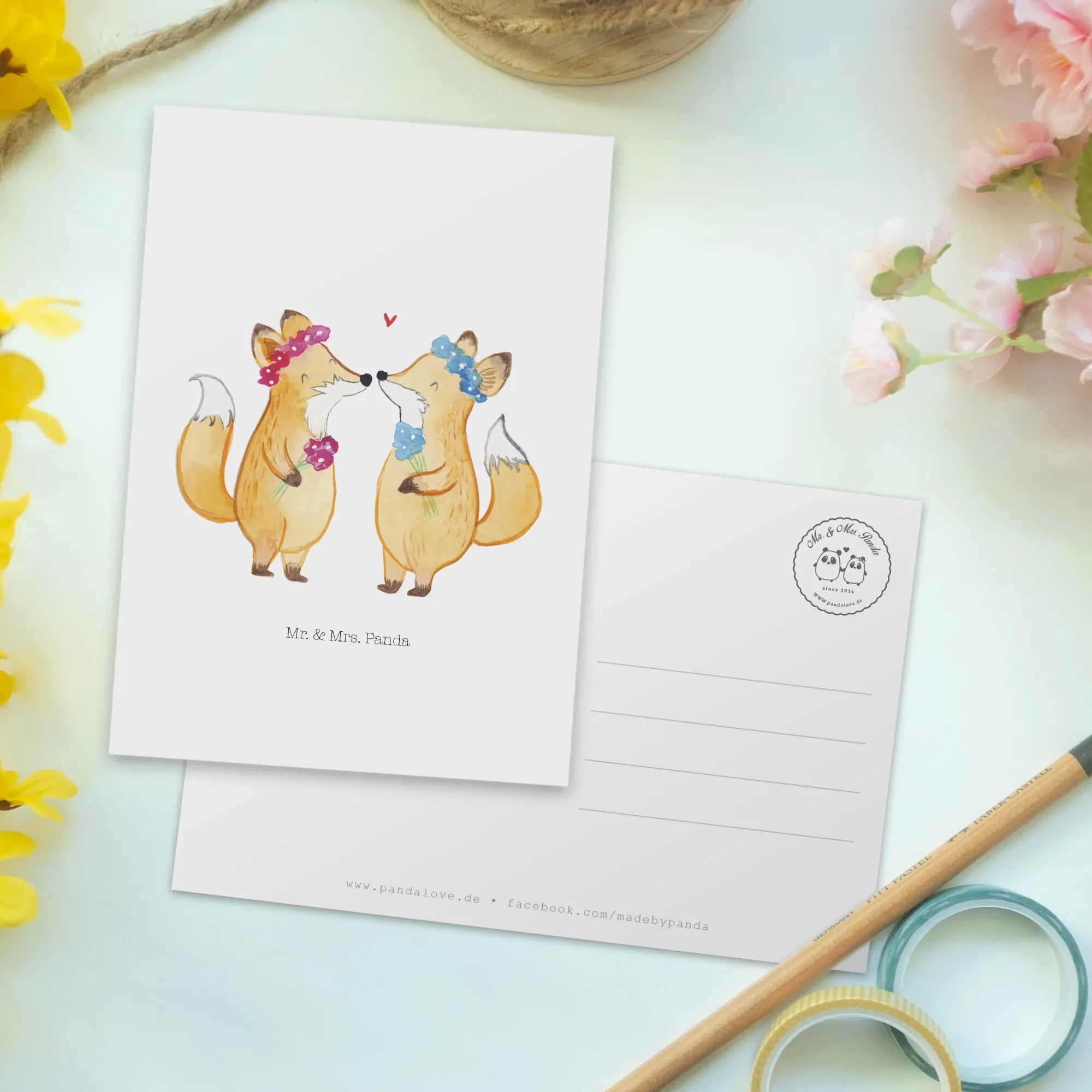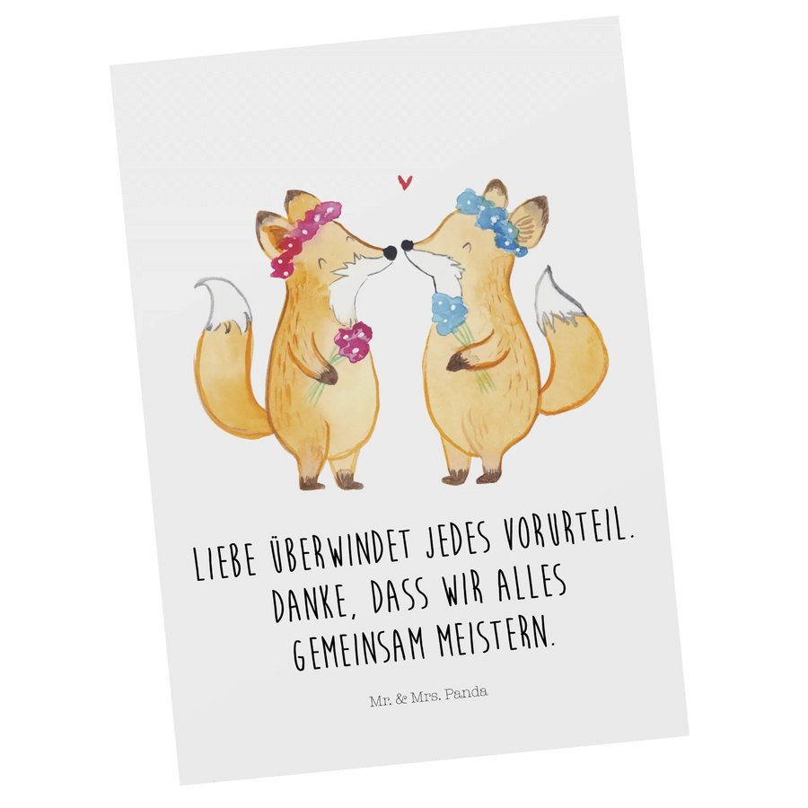 Looking for the perfect way to express your love and support for the LGBTQ+ community? Look no further than our charming Postcard featuring the Foxes Couples Lesbian Pride motif from Mr. & Mrs. Panda's Wedding collection! This delightful postcard showcases two adorable female foxes holding hands, adorned with lovely floral crowns and bridal veils, perfectly celebrating love in all its forms.