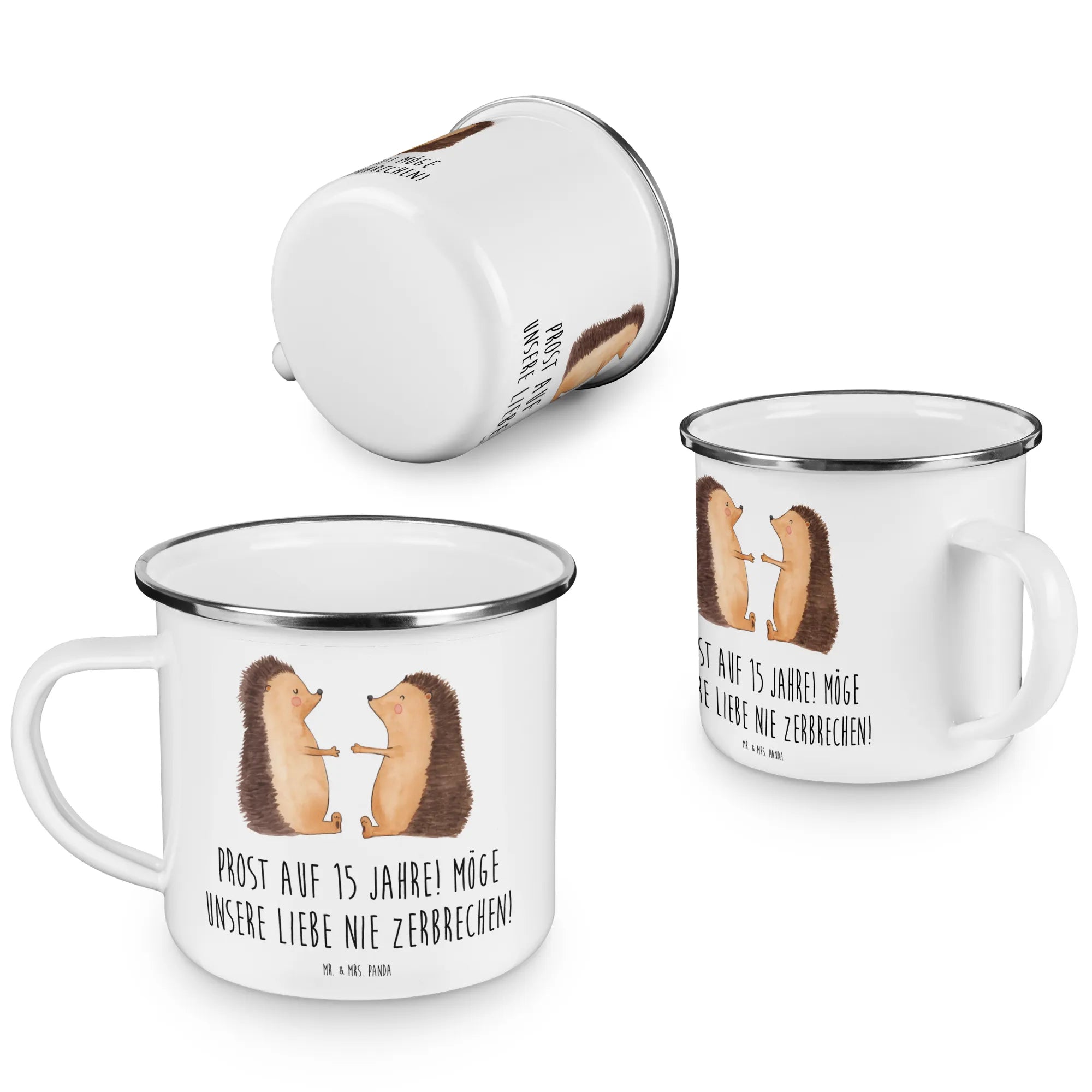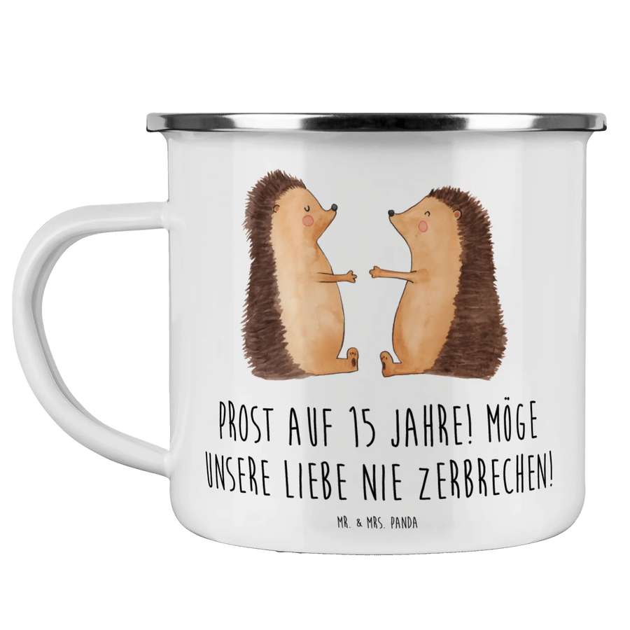 Enamel camping mug Prost auf 15 Jahre! Möge unsere Liebe nie zerbreche – Mr. & Mrs. Panda