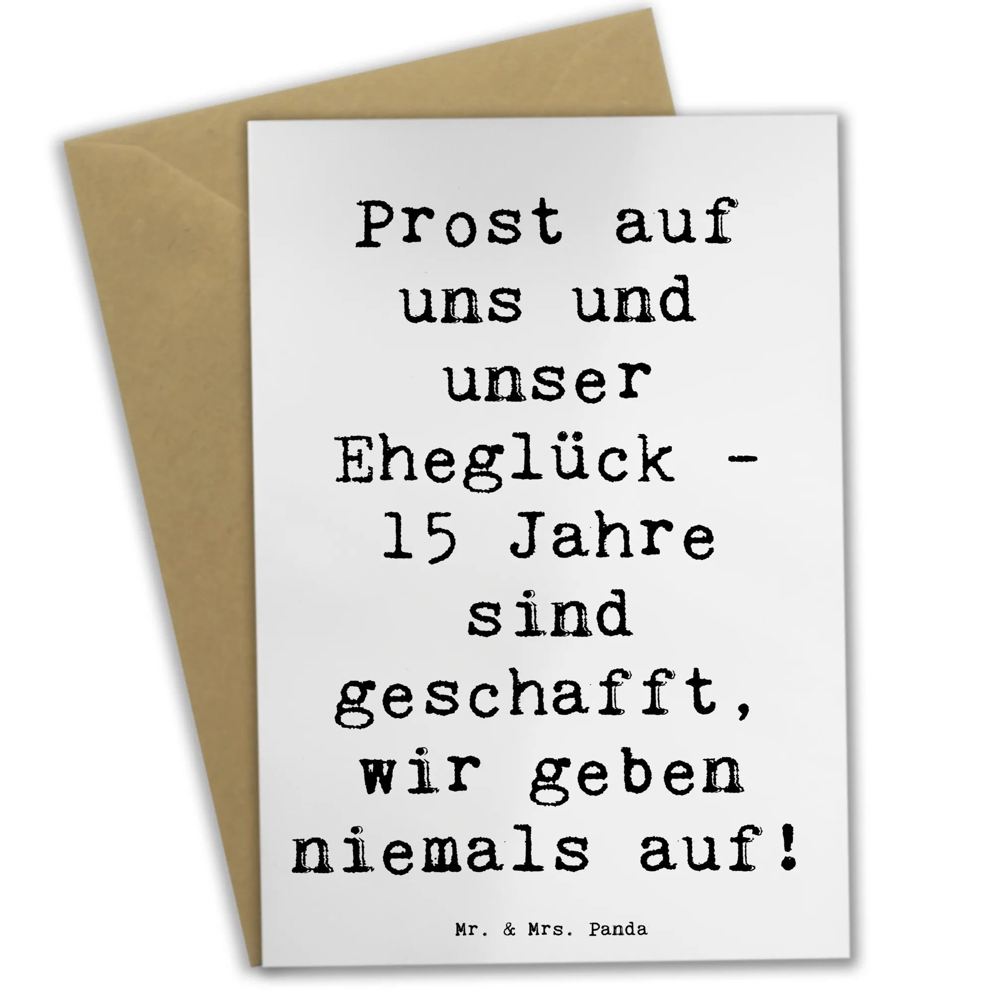 Greetings card Saying Prost auf uns und unser Eheglück - 15 Jahre sind geschafft, wir geben niemals auf!
