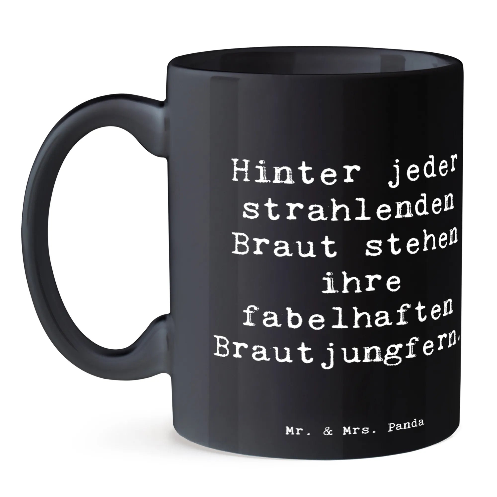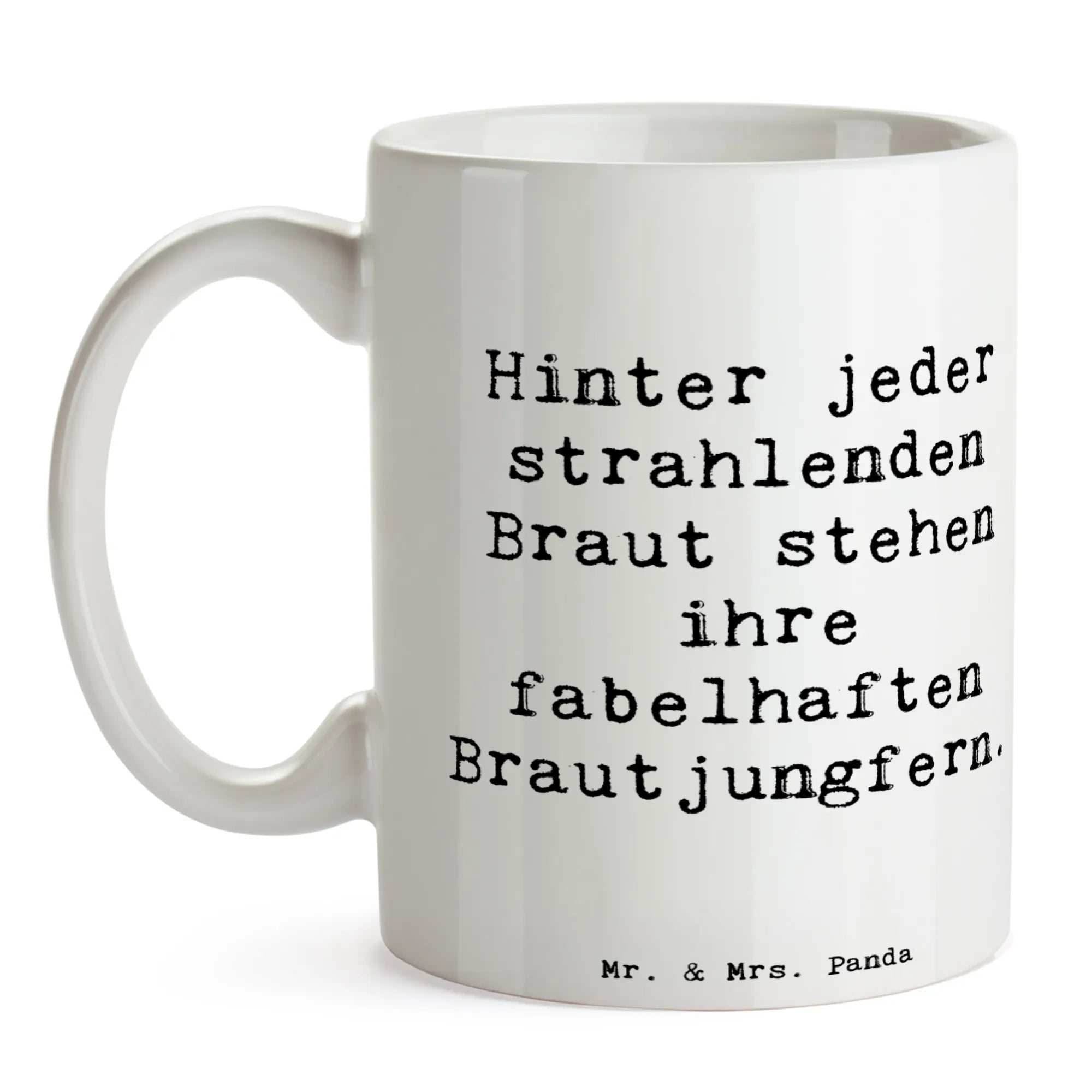 Mug Saying Hinter jeder strahlenden Braut stehen ihre fabelhaften Brautjungfern. - White