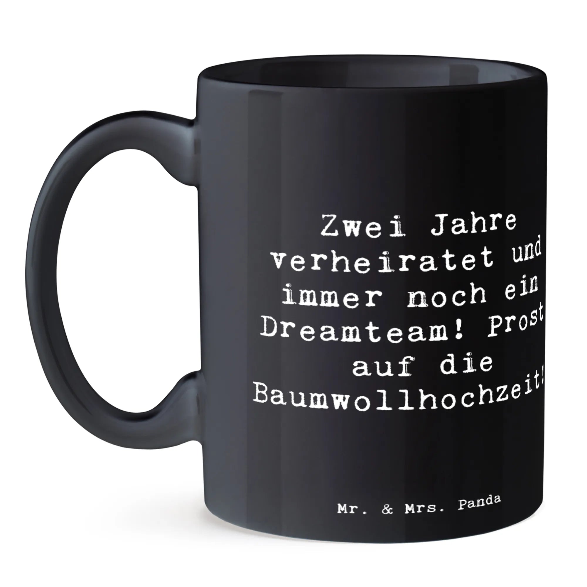 Mug Saying Zwei Jahre verheiratet und immer noch ein Dreamteam! Prost auf die Baumwollhochzeit! - Black