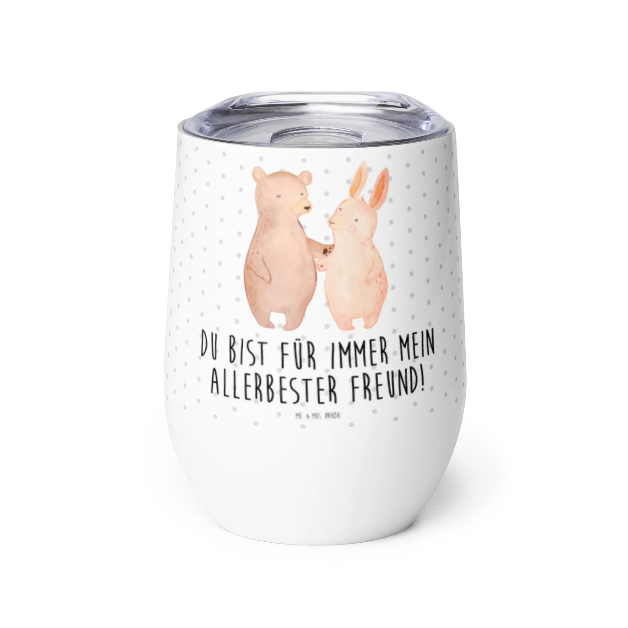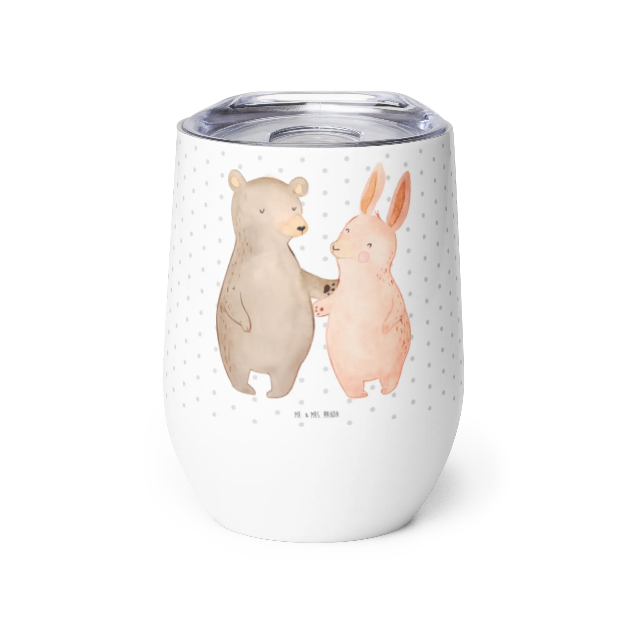 Der stilvolle Weinbecher von Mr. & Mrs. Panda ist die perfekte Wahl für alle, die Genuss und Eleganz lieben! Mit einer Kapazität von 375 ml und einer doppelwandigen Vakuumdichtung sorgt er dafür, dass dein Getränk bis zu 5 Stunden lang warm oder kalt bleibt. Der besondere Charm des Bechers wird durch die süßen Motive und Sprüche von Mr. & Mrs. Panda unterstrichen – ideal für gesellige Abende oder entspannte Momente. Die geschwungene Form des Bechers liegt angenehm in der Hand und macht jede Trinkerfahrung zu einem Vergnügen. Qualitätsstahl garantiert Langlebigkeit und macht ihn zu einem hervorragenden Geschenk für jeden Anlass. Ob für sich selbst oder als Aufmerksamkeit für einen geliebten Menschen - dieser Weinbecher wird zarte Gemüter und Genießer gleichermaßen erfreuen! Er wird an jedem Tisch zum Gesprächsstück und zieht alle Blicke auf sich. Reinige ihn bestenfalls mit der Hand, um lange Freude daran zu haben.