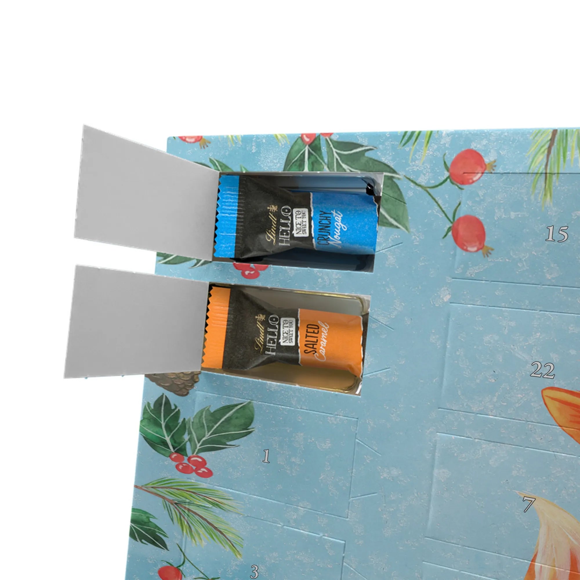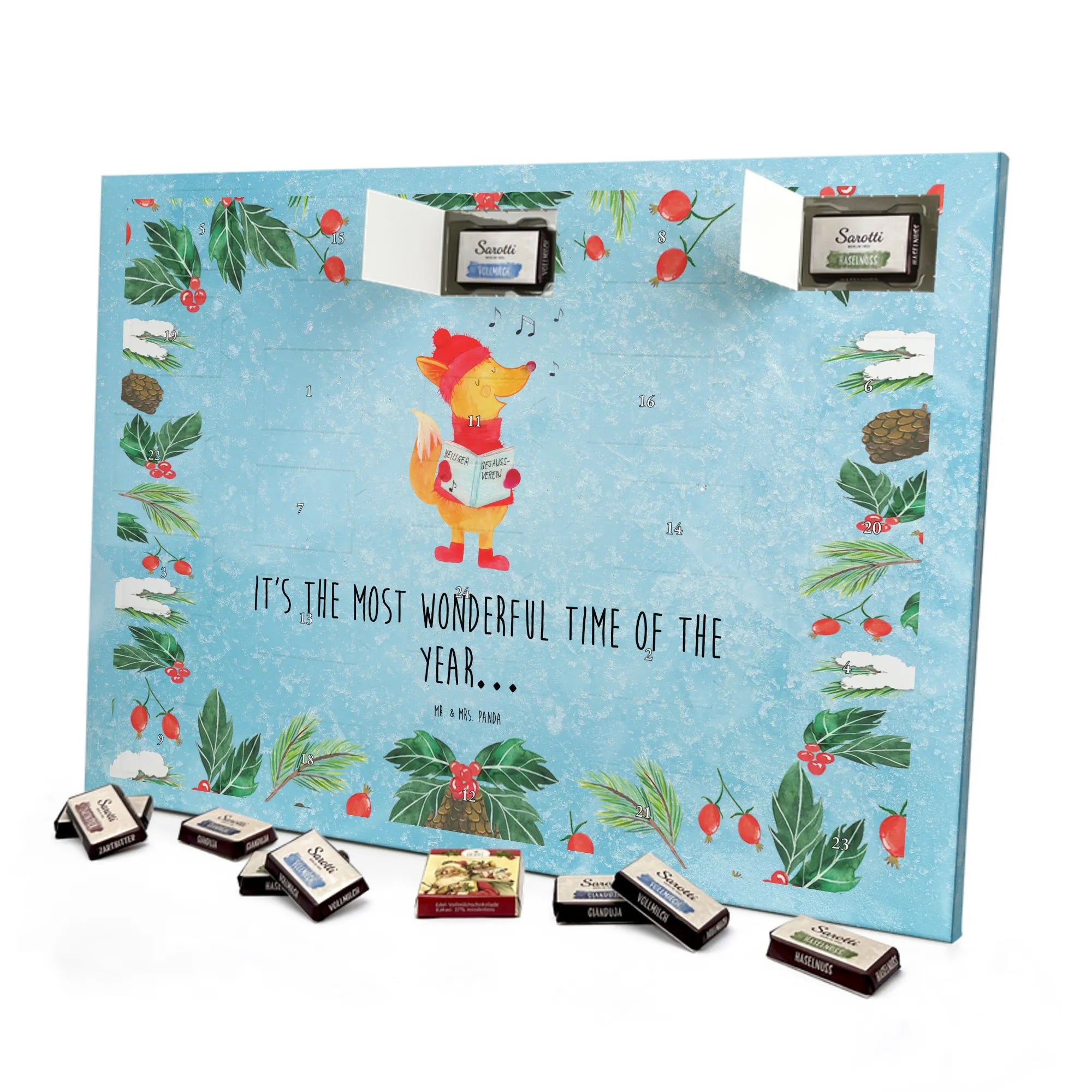 Chocolate advent calendar Fox Singer - Classic - with saying - Ice Blue