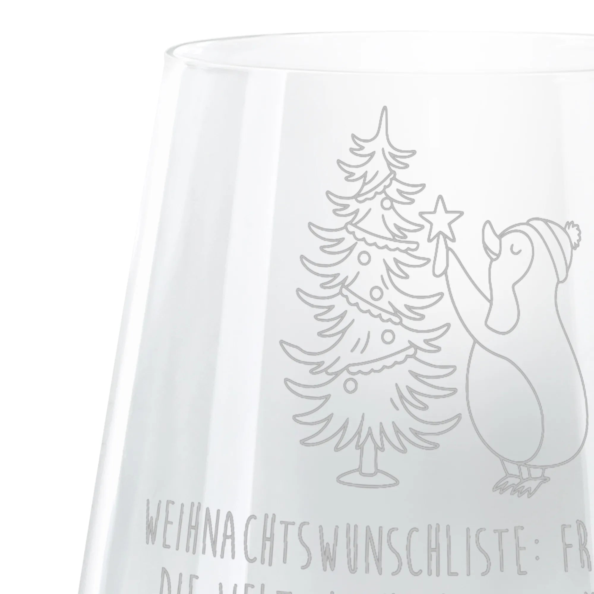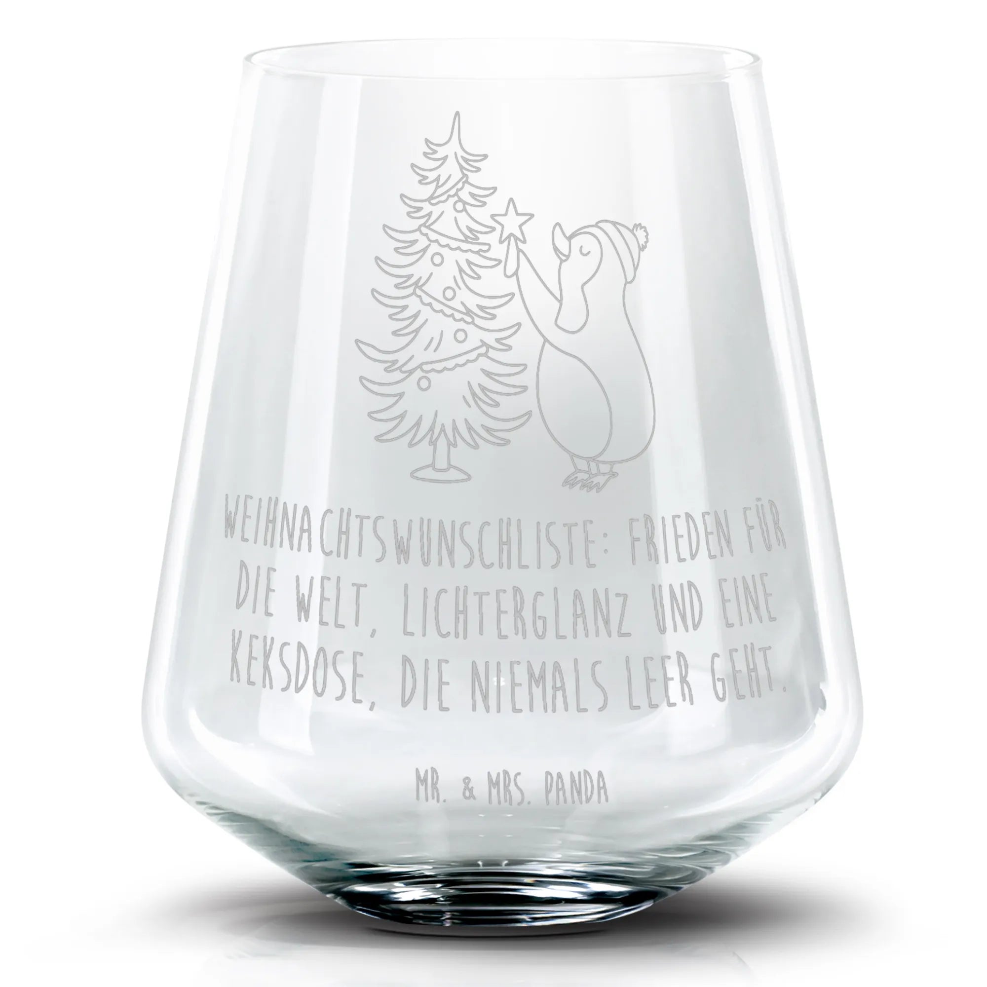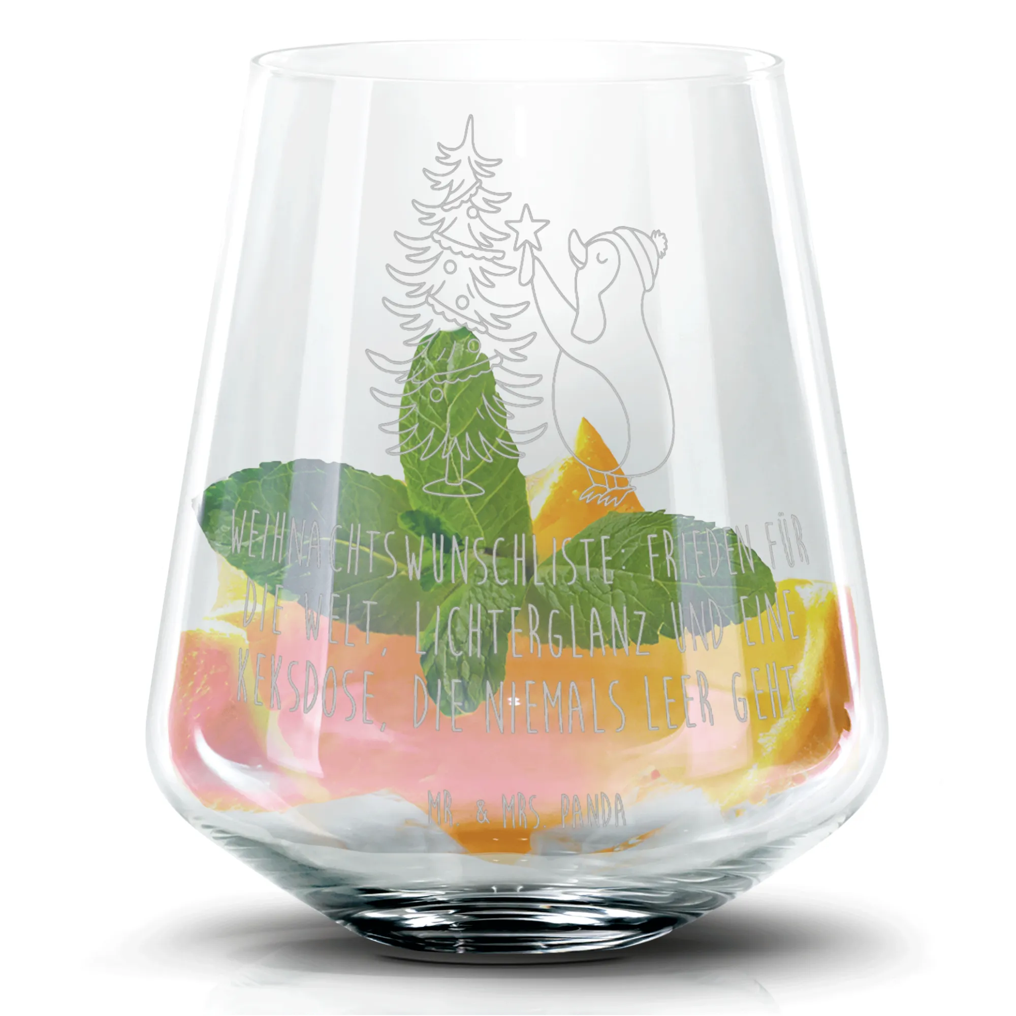 Das wunderschöne Cocktailglas mit dem niedlichen Pinguin Weihnachtsbaum-Motiv ist das perfekte Geschenk für diese festliche Jahreszeit. In unserer Winter Kollektion von Mr. & Mrs. Panda vereint sich die Zauberhaftigkeit von Weihnachten mit einem einzigartigen Design, das Herzen höher schlagen lässt. Jedes Glas ist mit einem hübschen Spruch graviert: "Weihnachtswunschliste: Frieden für die Welt, Lichterglanz und eine Keksdose, die niemals leer geht." Umgeben von Kakao, Keksen und einer warmen Decke wird jeder Schluck aus diesem Glas zu einem besonderen Erlebnis.