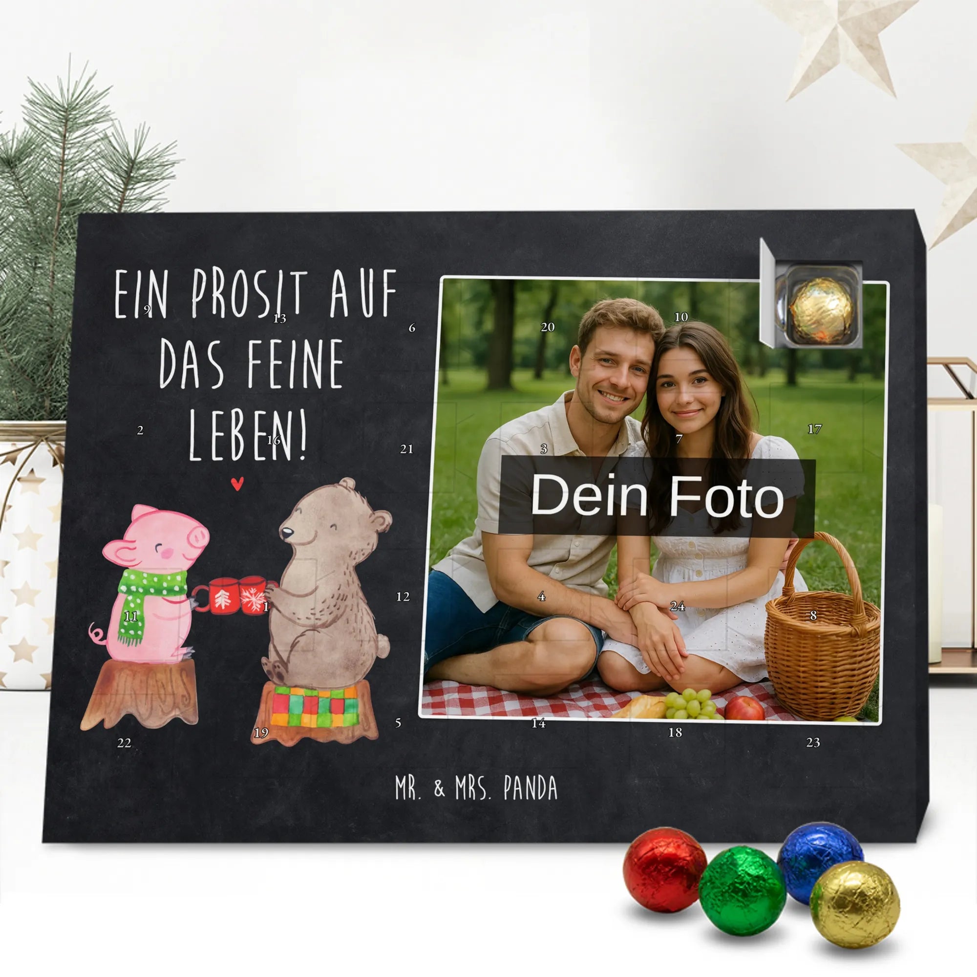 Imagine a charming scene where friendship sparkles in the air—our adorable pig is cozily wrapped in a scarf, clinking cups with a joyful bear! Seated on a sturdy tree stump, their cheerful gathering radiates warmth and laughter. The little heart between them is a gentle reminder that love is what truly makes life shine bright. 'Ein Prosit auf das feine Leben!' captures this spirit perfectly, encouraging us to embrace the festive moments, especially during the Christmas season. Each sip of cheer not only celebrates the good life but also symbolizes the beautiful bonds we share, making our hearts glow with joy. Whether it’s a casual meet-up or a holiday feast, let’s always find an excuse to toast to happiness!