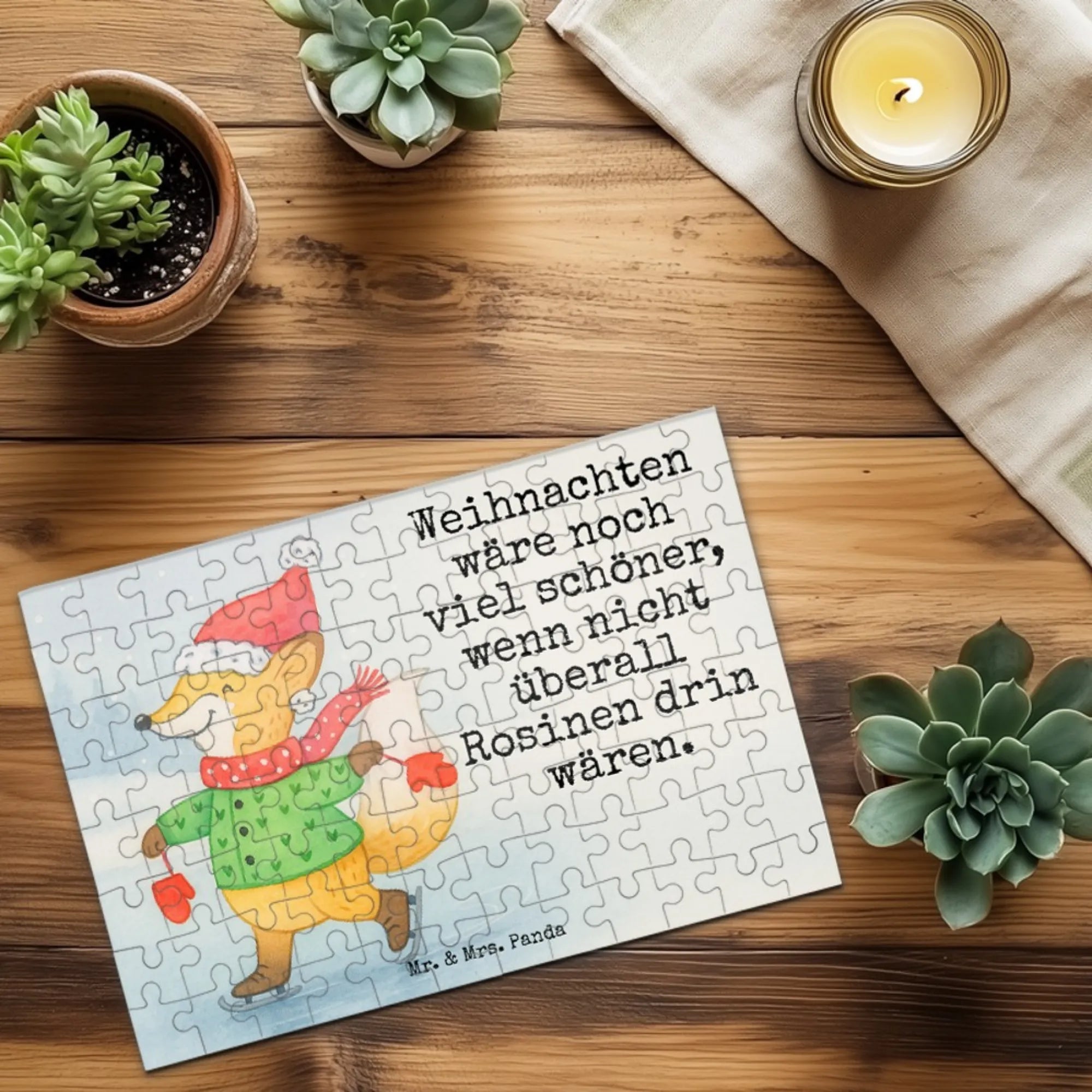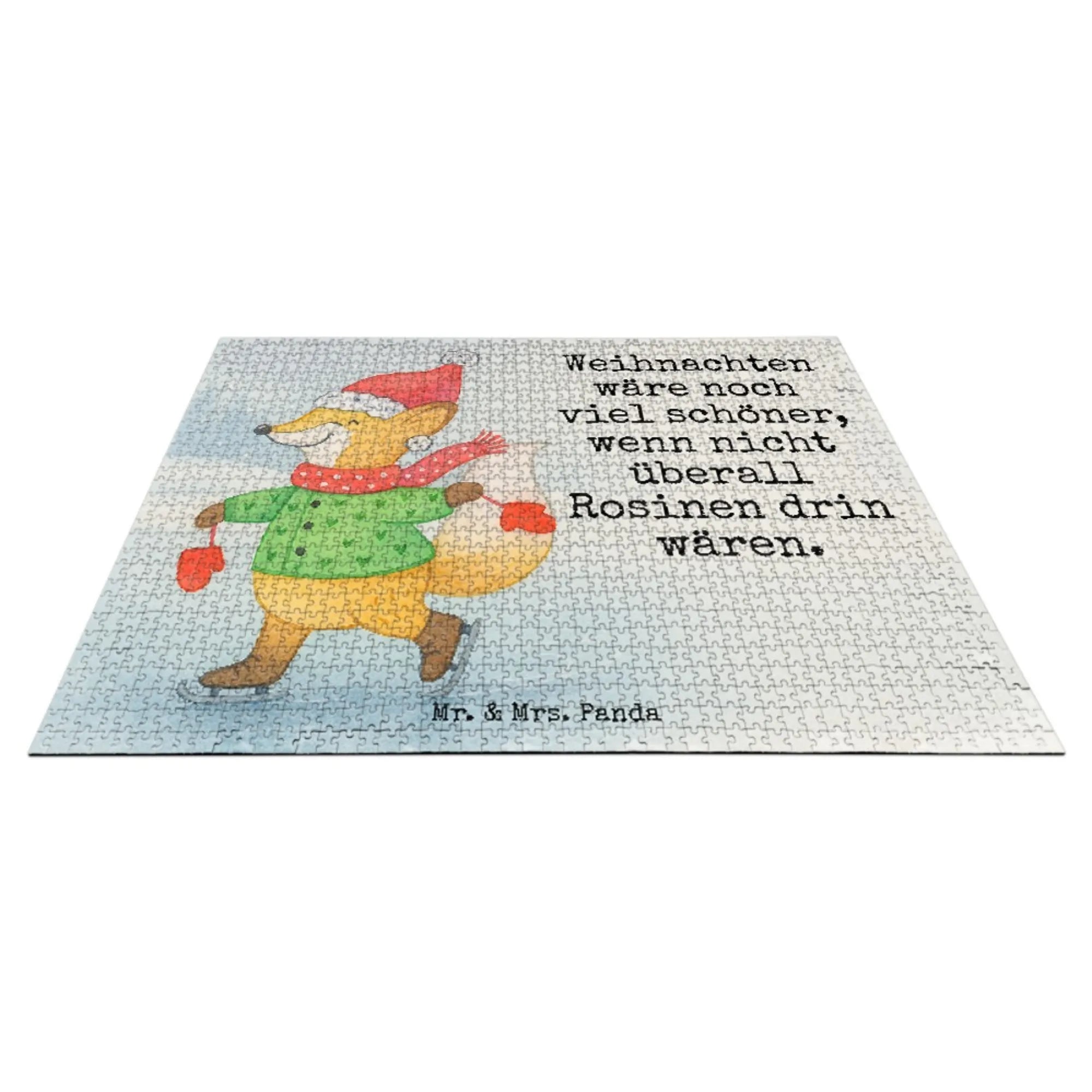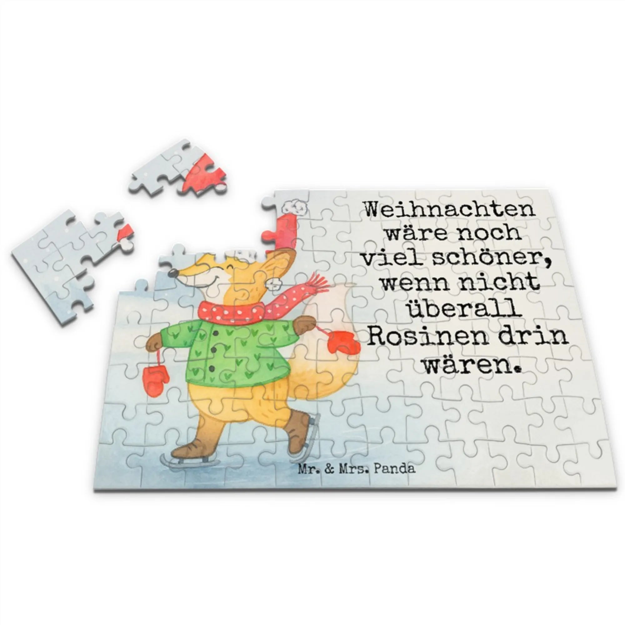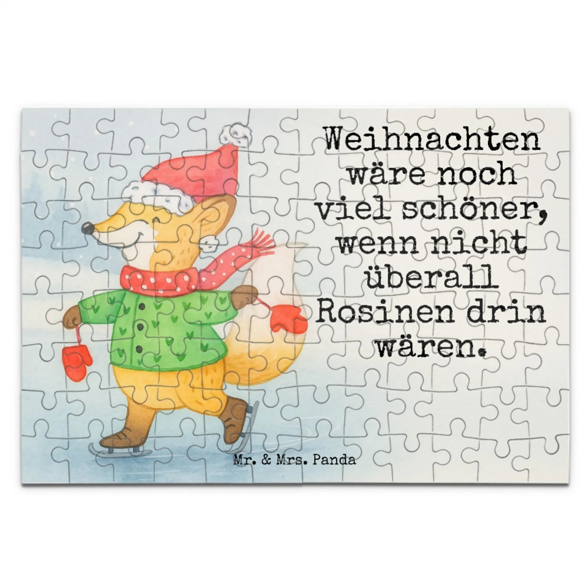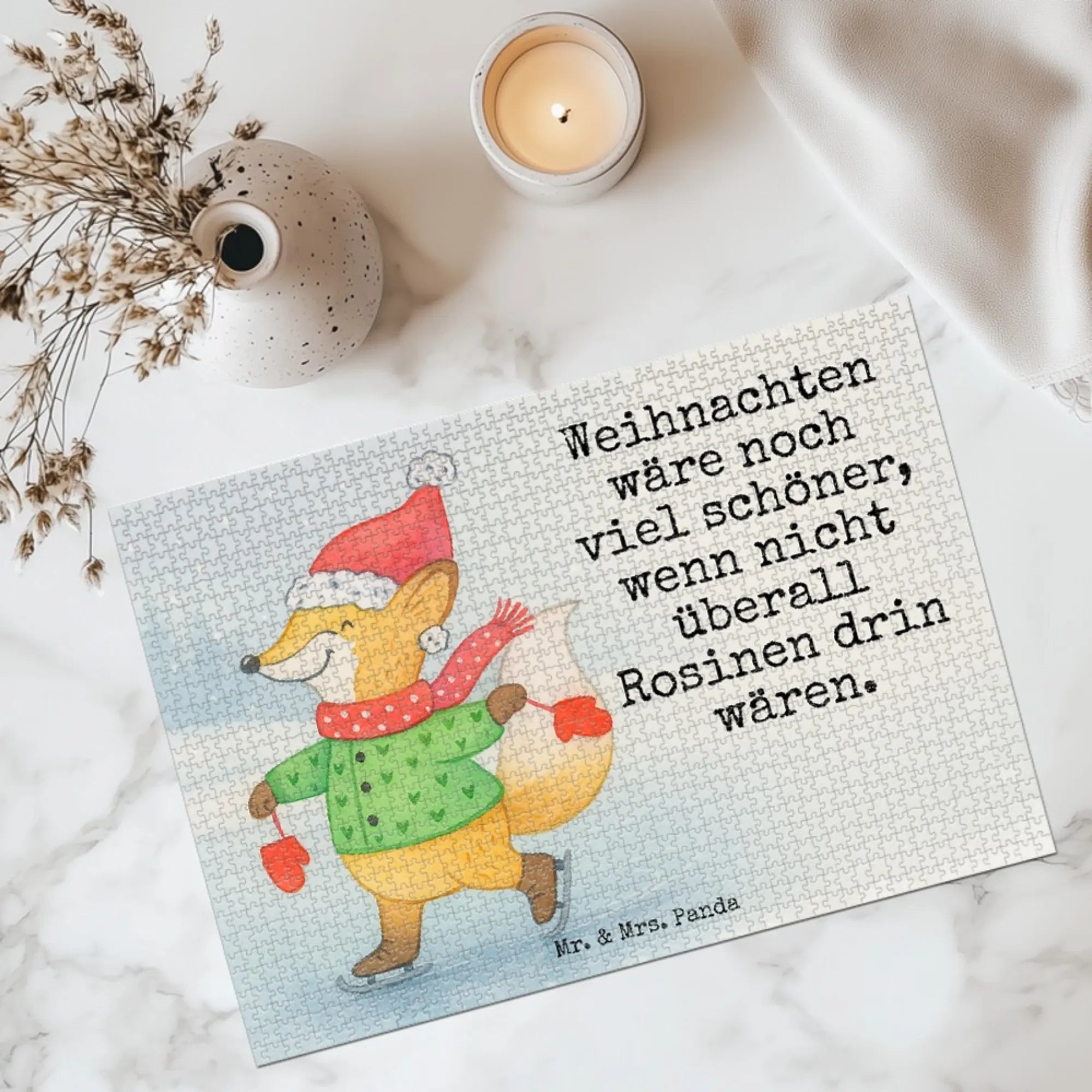 Unser Puzzle „Fuchs Schlittschuhe" aus der Winter Kollektion ist genau das Richtige für gemütliche Advents- und Weihnachtsabende. Das Motiv zeigt einen fröhlichen Fuchs in grünem Mantel mit herzförmigen Mustern, rotem Schal mit Punkten und einer passenden Weihnachtsmütze. Rote Fäustlinge baumeln an seiner Pfote, sein Blick strahlt Leichtigkeit und Freude aus. Der liebevoll platzierte Spruch „Weihnachten wäre noch viel schöner, wenn nicht überall Rosinen drin wären." sorgt für ein Schmunzeln und macht das Puzzle zum perfekten Geschenk mit Charme.