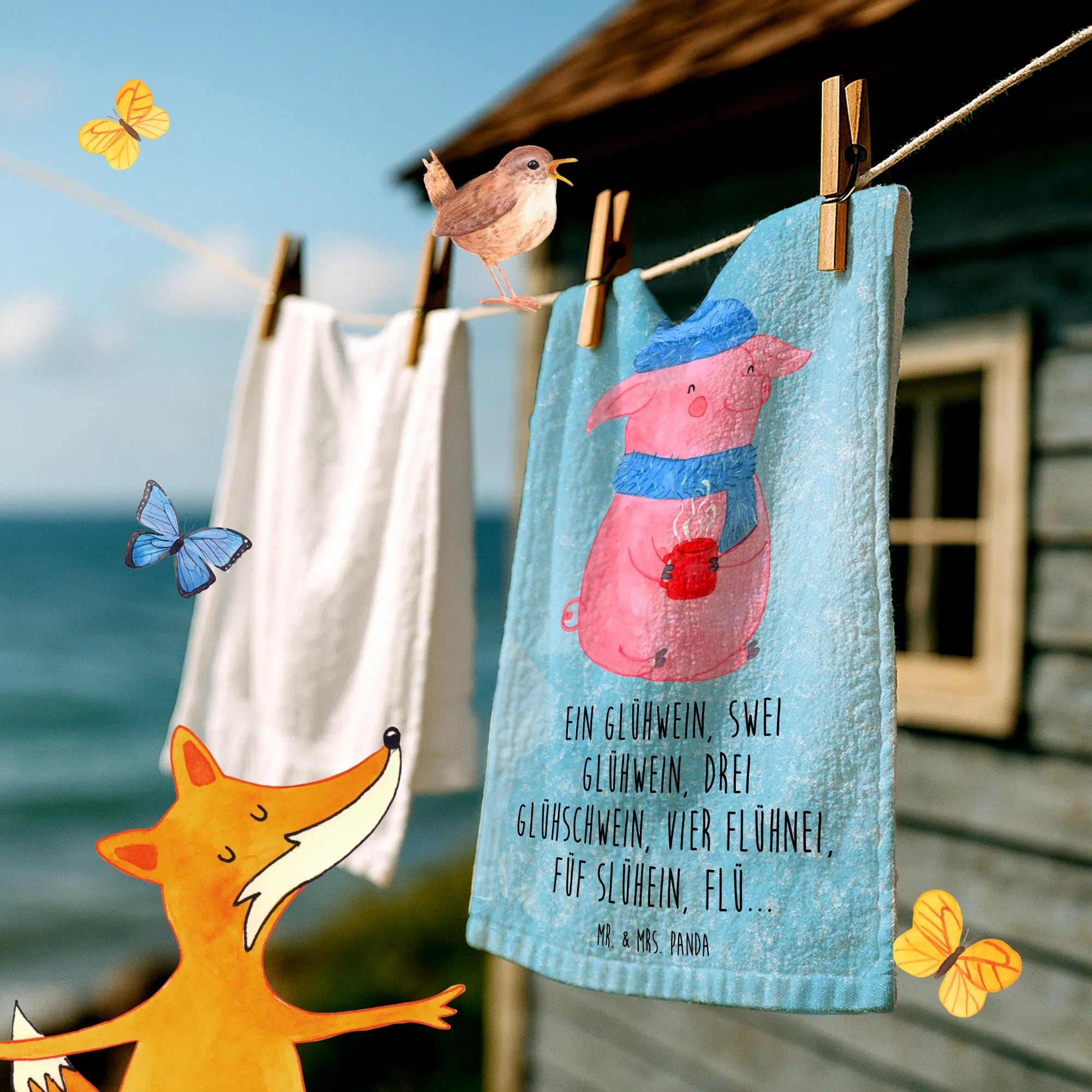 Hand towel piggy Mulled wine - with saying - Ice Blue