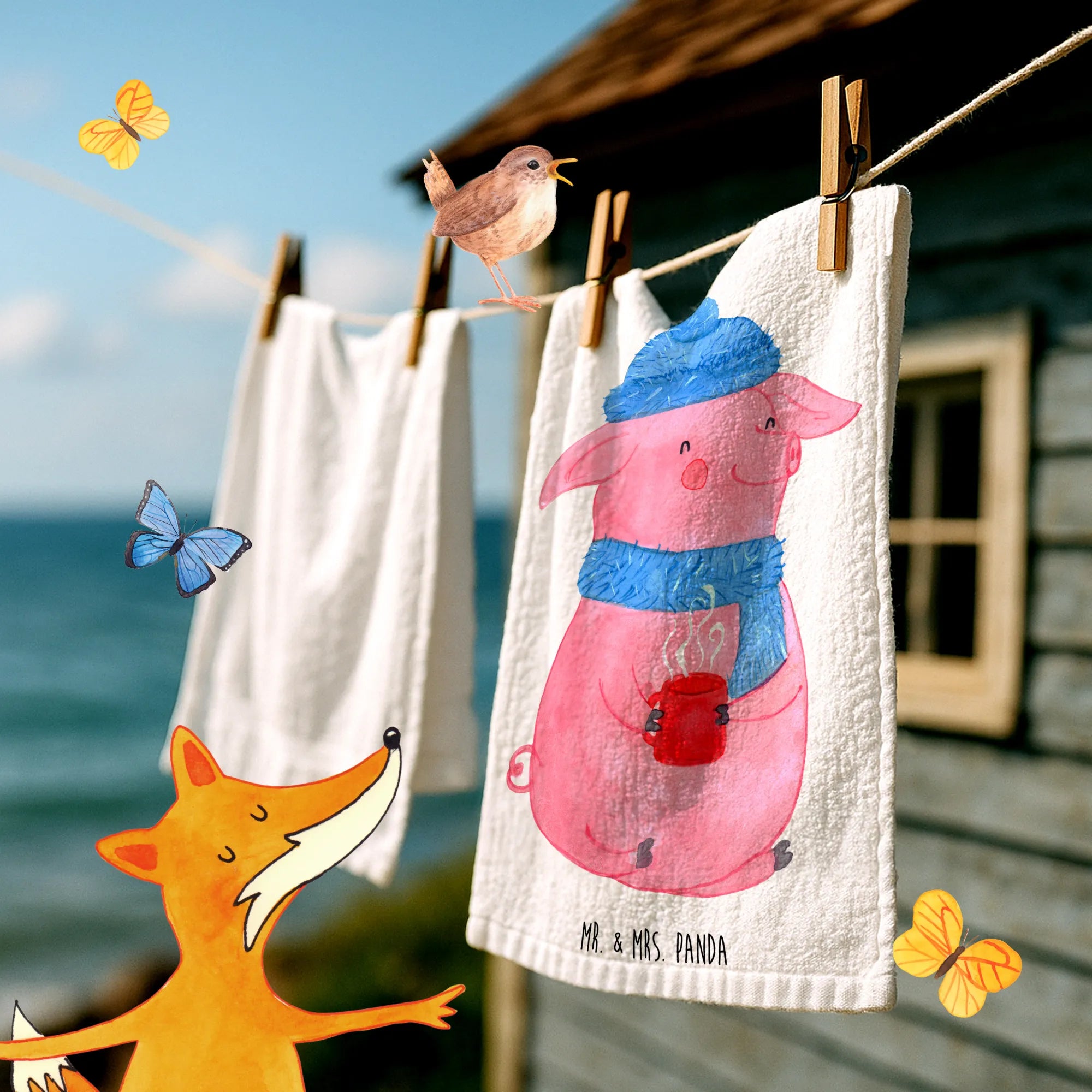 Introducing the charming Mulled Pig hand towel from the Winter Collection by Mr. & Mrs. Panda! This delightful towel is not just a practical bathroom essential but also a whimsical piece of decor that brings joy to your home, especially during the cozy winter months. Imagine wiping your hands or drying your face with a towel that features a jolly pink pig, warmly dressed in a blue hat and scarf, holding a steaming mug of mulled wine. It’s the perfect way to add a festive touch to your bathroom while embodying the spirit of Christmas and the joy of the holiday season.