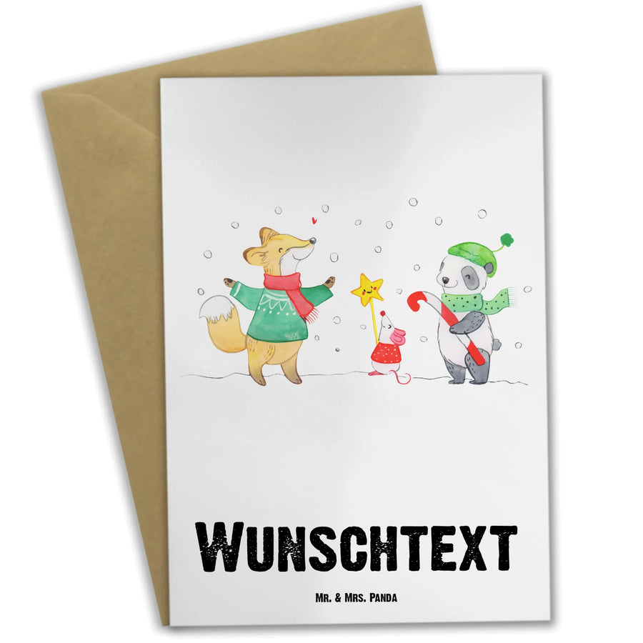 Step into the magical world of winter with our delightful motif, 'Winter Christmas Joy.' Picture a cheerful fox, a curious mouse, and our beloved panda, all bundled up in cozy scarves and hats, joyfully standing in the crisp white snow. They're eagerly anticipating the festive days to come, wrapped in the warmth of friendship and holiday spirit. As Christmas Eve draws near, excitement fills the air with the aroma of pine from nearby fir trees and the promise of merriment that celebrates the essence of Christmas. 'Juhuuu, es ist Weihnachten! Ich wünsche dir und deiner Familie ein wundervolles Fest und eine Keksdose, die nie leer geht' perfectly captures this joy. Embrace the season and let your heart be light, because this is a time for laughter, love, and an endless supply of holiday treats, making memories that will warm your heart through the chilly winter days.
