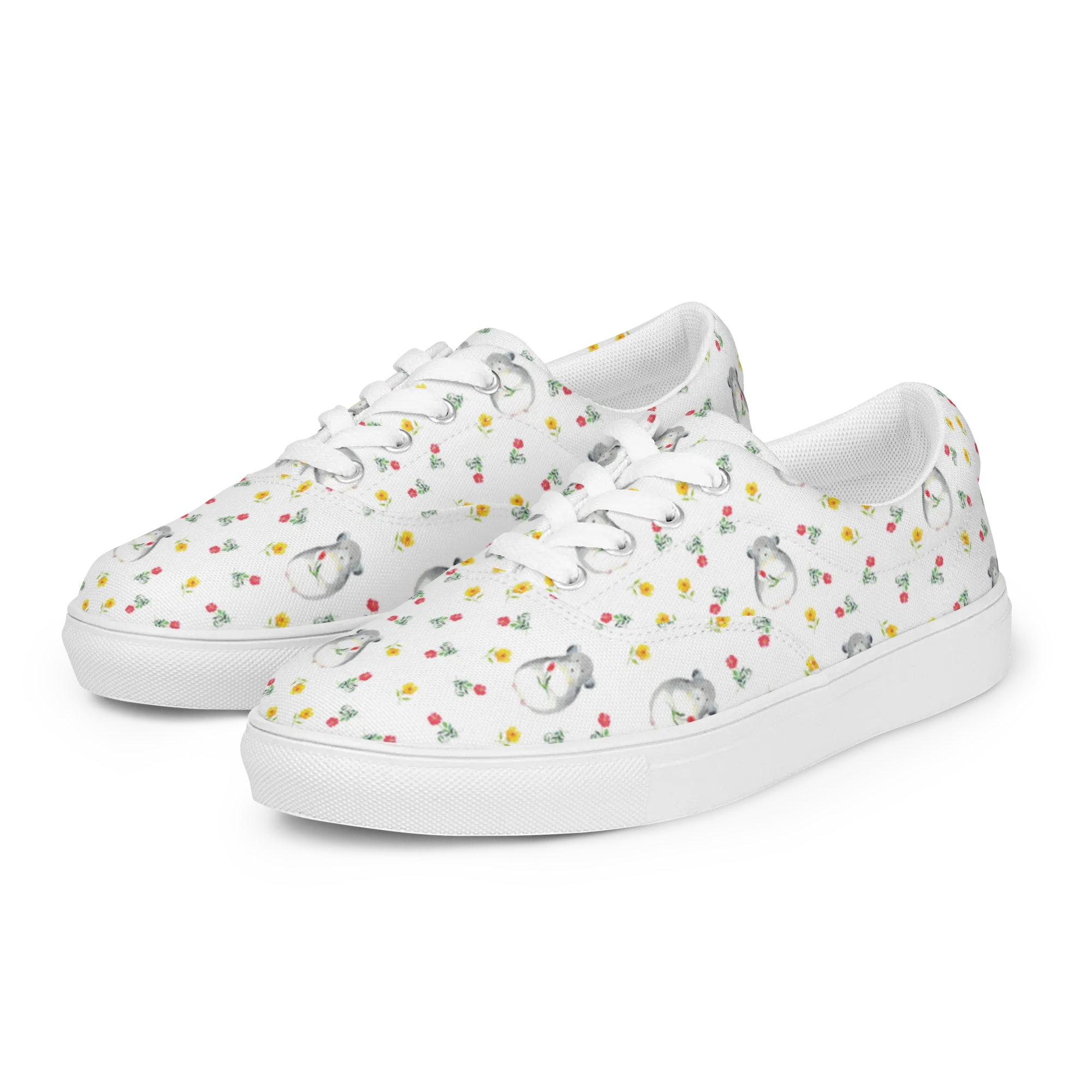 Discover your new favorite pair of Women's Fabric Shoes with Mr. & Mrs. Panda! These stylish sneakers are designed to make every step a joy. Crafted from durable materials, they are lightweight, allowing your feet to breathe and stay comfortable. The elastic outsole offers flexibility, making them ideal for any casual activity. The interior is lined with breathable fabric, while the padded collar and tongue ensure a cozy fit. You'll love the removable insole feature, too—perfect for customizing your comfort! Complete with trendy white laces, these shoes blend practicality with a stylish touch. Easy to clean, just a quick wipe does the trick! Trendsetting and functional, they're essential for your collection. These shoes will quickly become a beloved companion for your daily adventures!