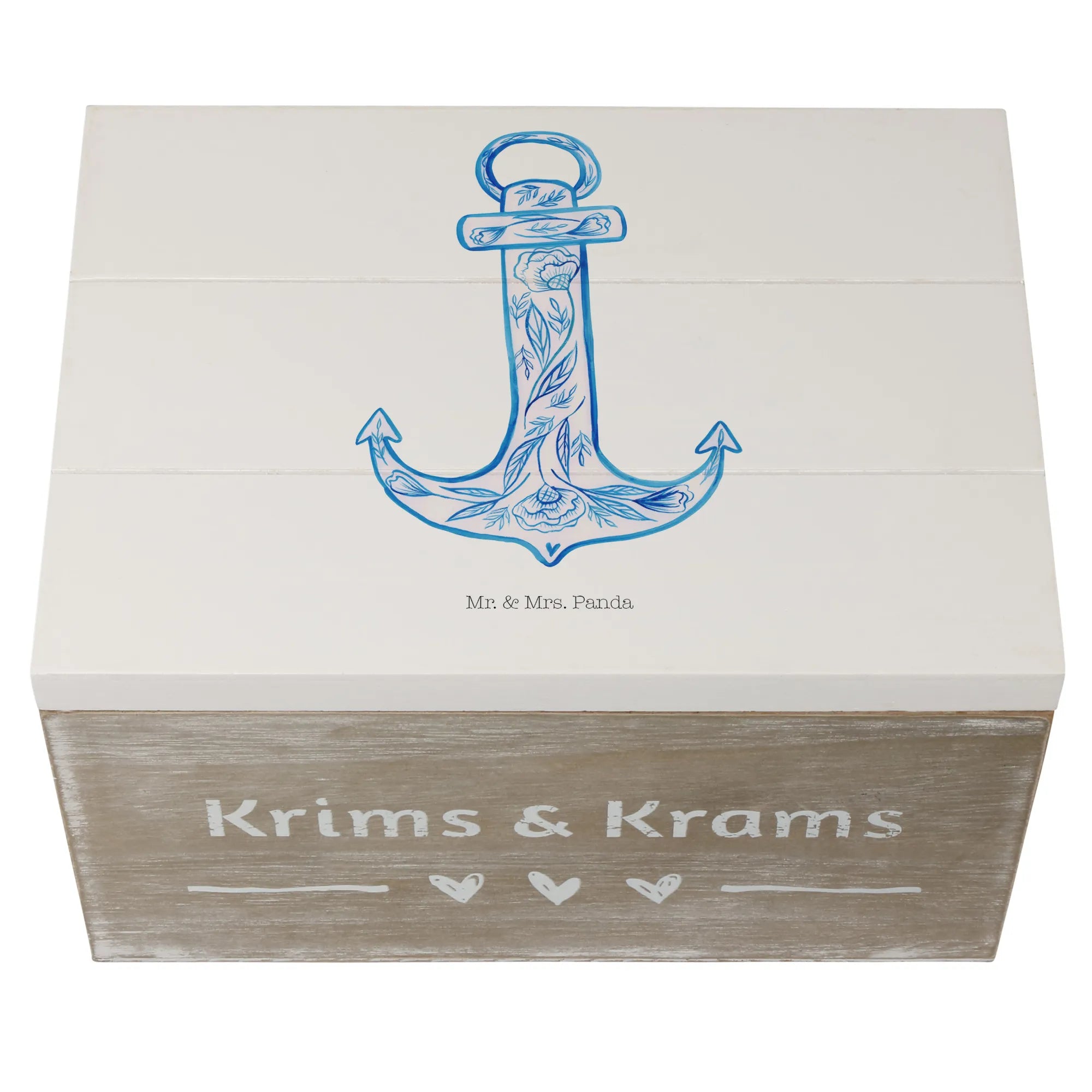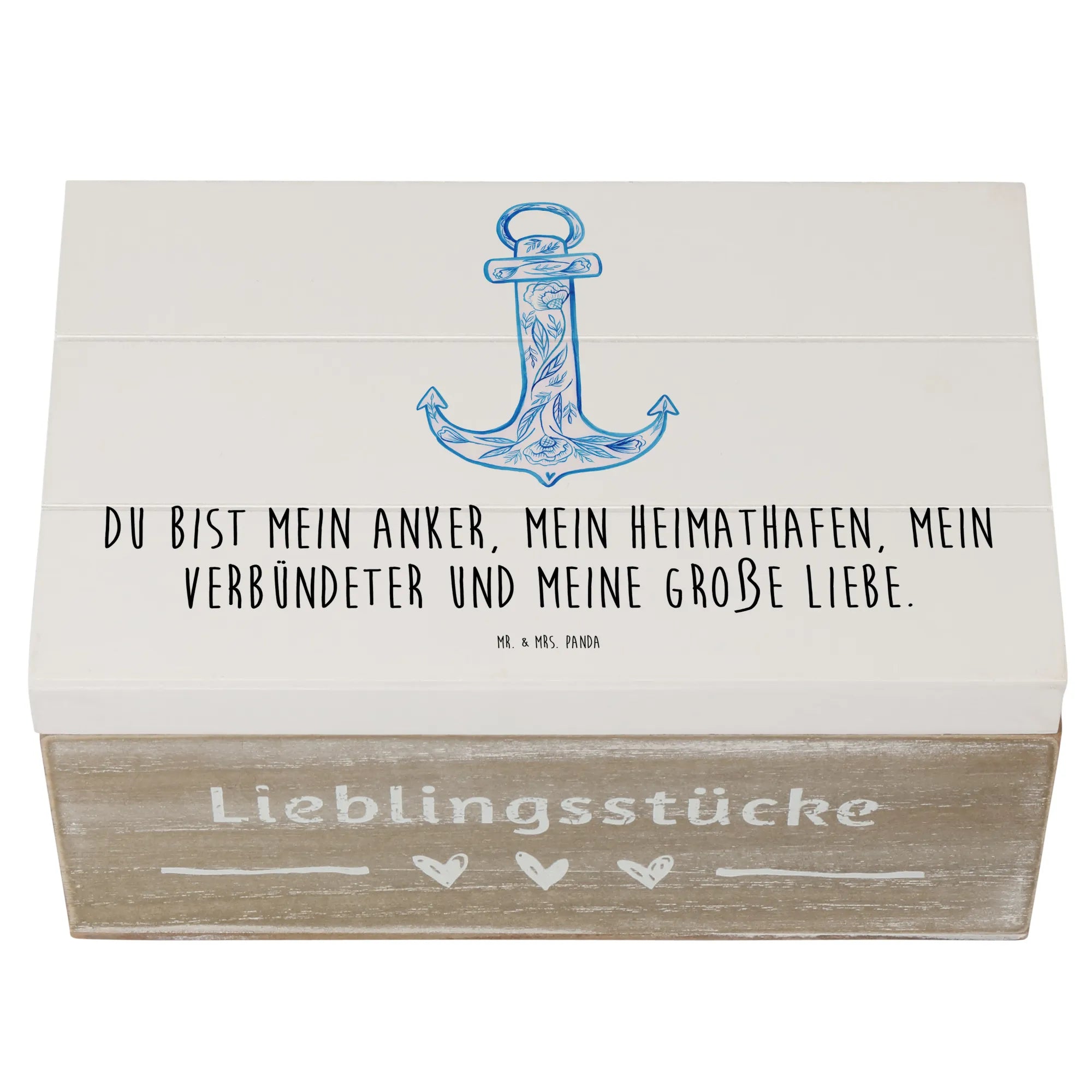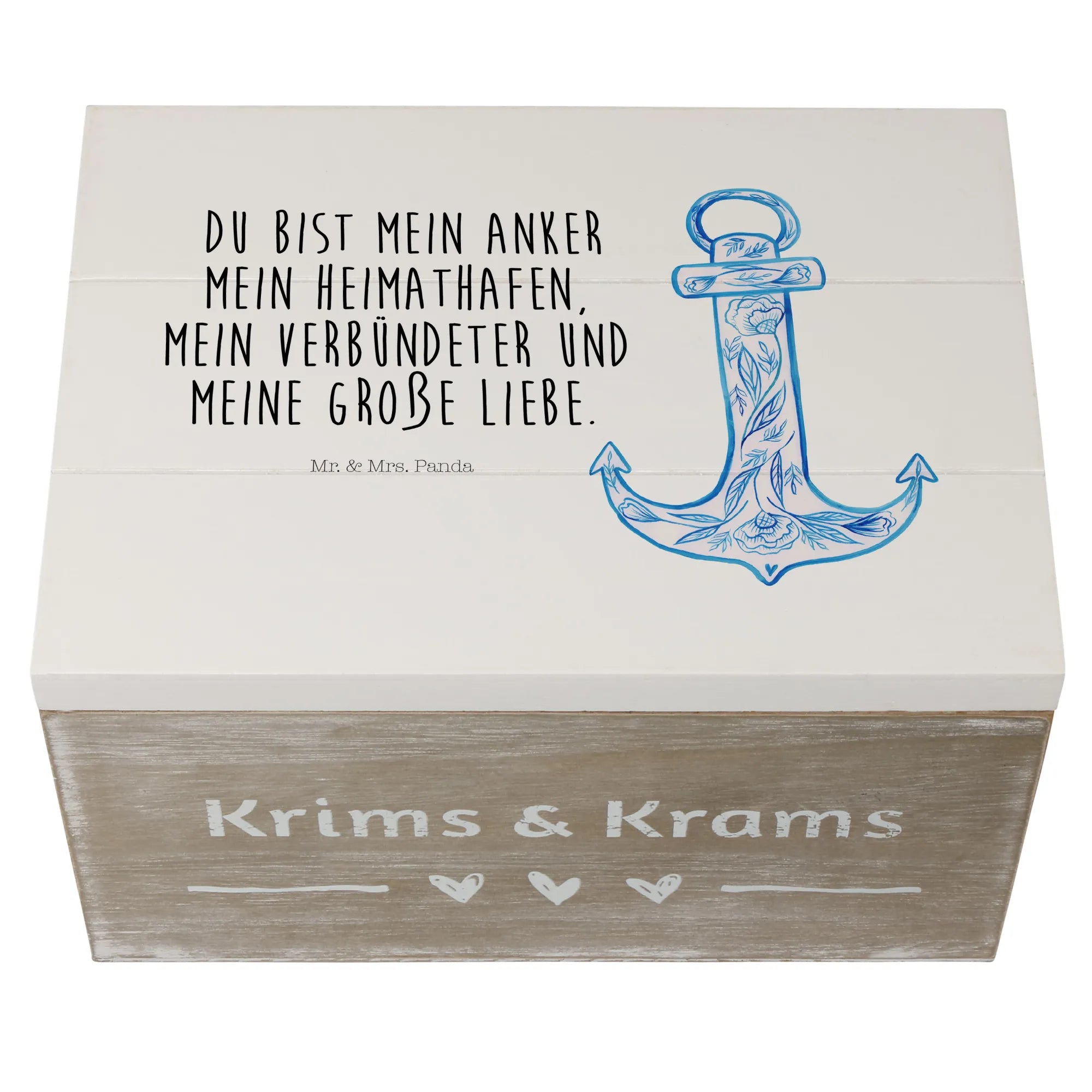 Wooden chest anchor Blue - 19 x 12 cm - with saying - White