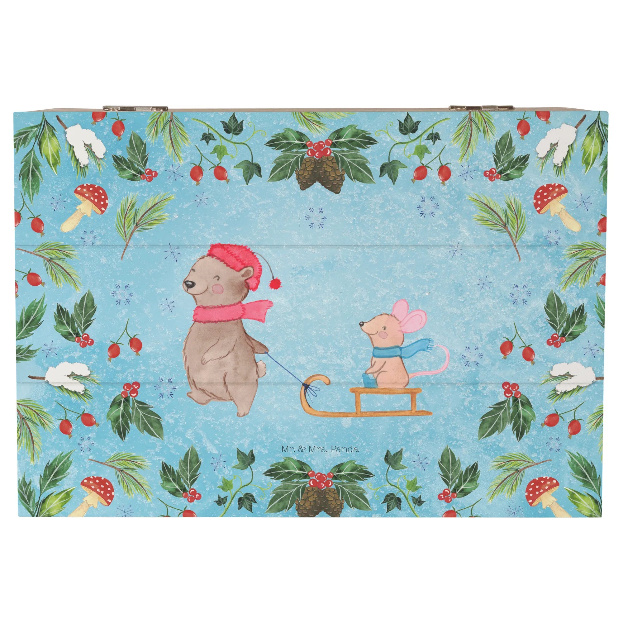 If you're searching for the ultimate gift that captures the spirit of winter and the warmth of the holiday season, look no further than our stunning Wooden Chest featuring the delightful motif of a Bear Mouse Sleigh from Mr. & Mrs. Panda's exclusive Winter Collection. This charming treasure chest is not just a storage solution; it's a beautiful decorative box that adds a touch of whimsy to any home decor.