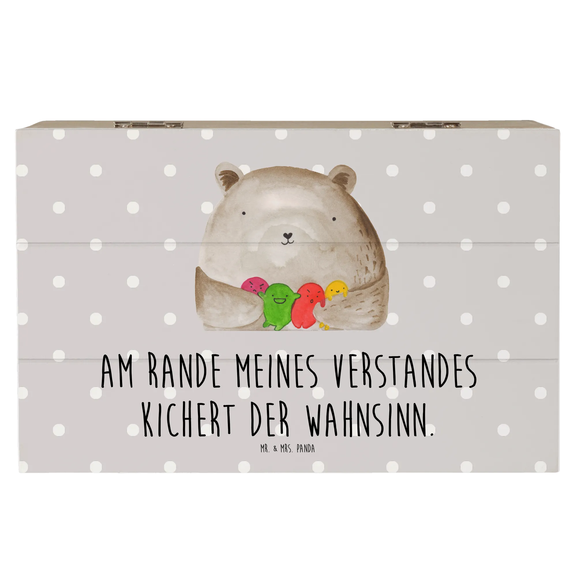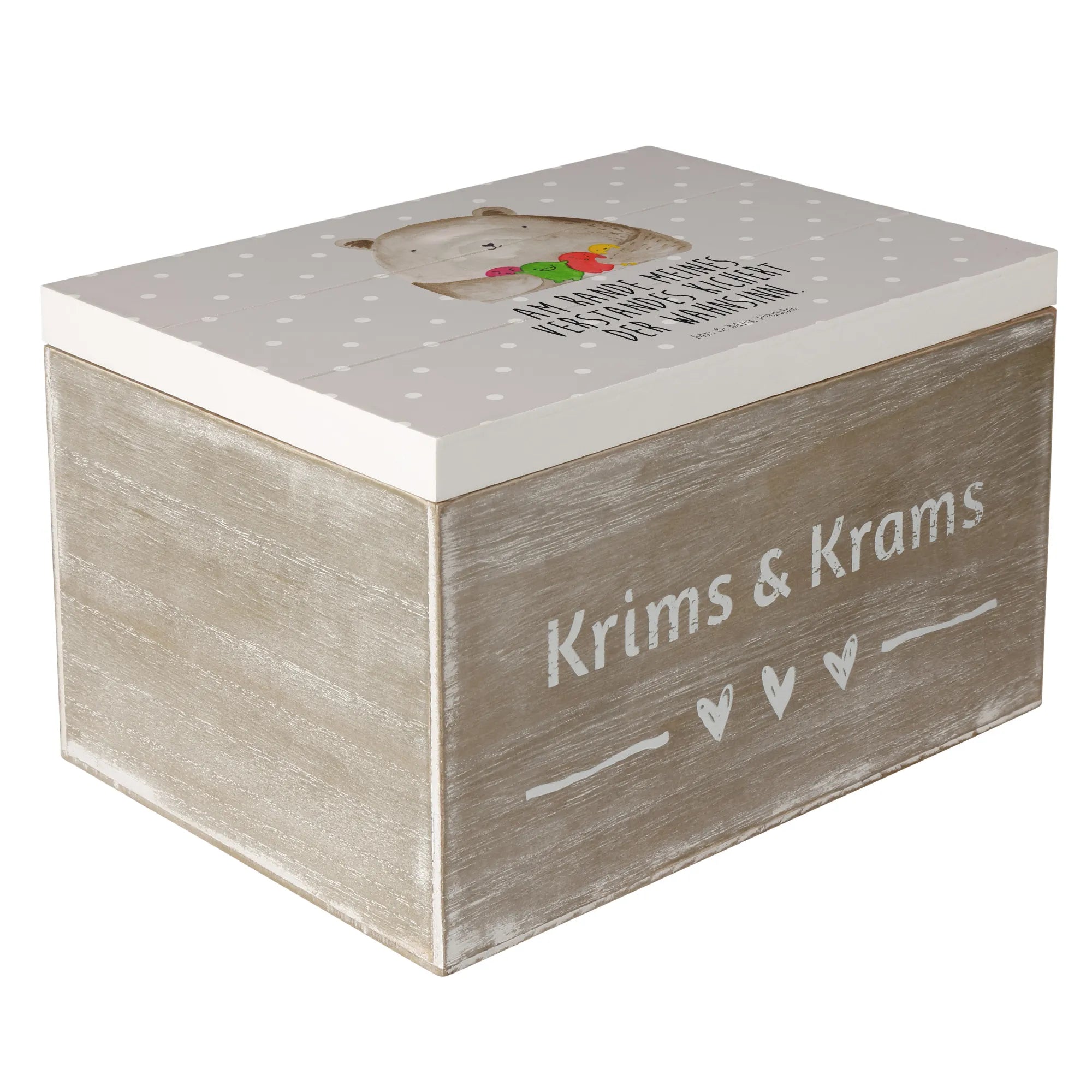 Wooden chest bear Feeling - 22 x 15 cm - with saying - Pastel Gray